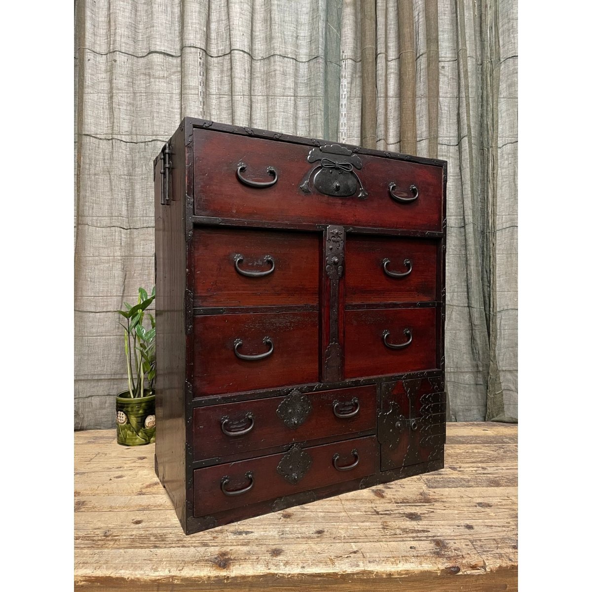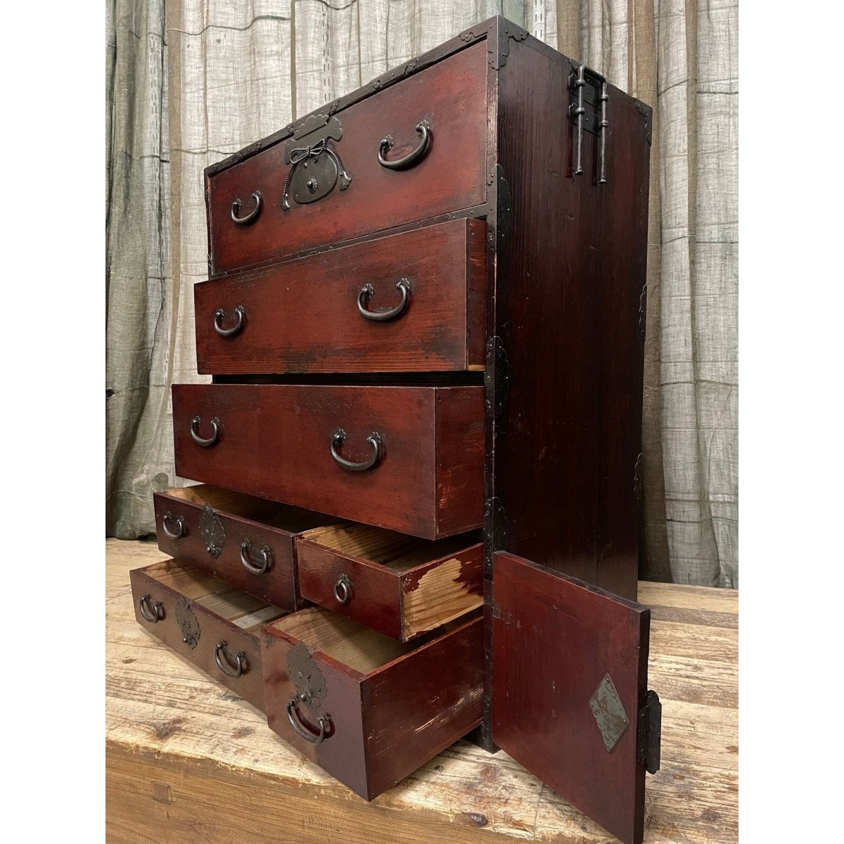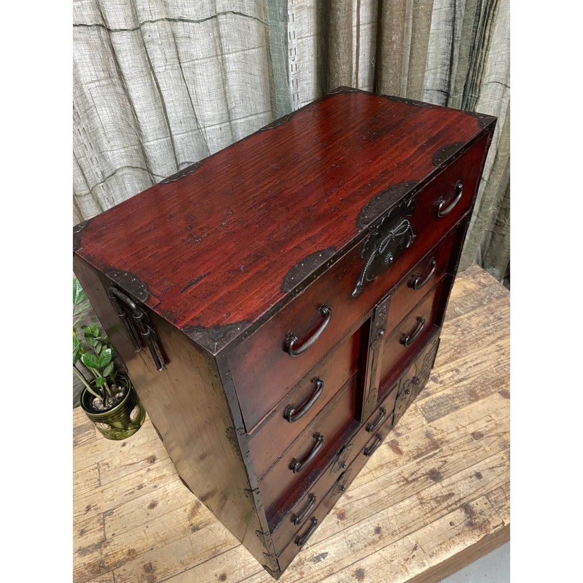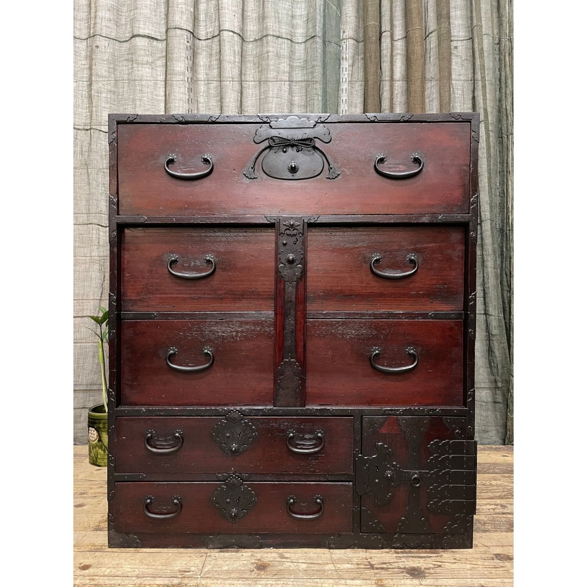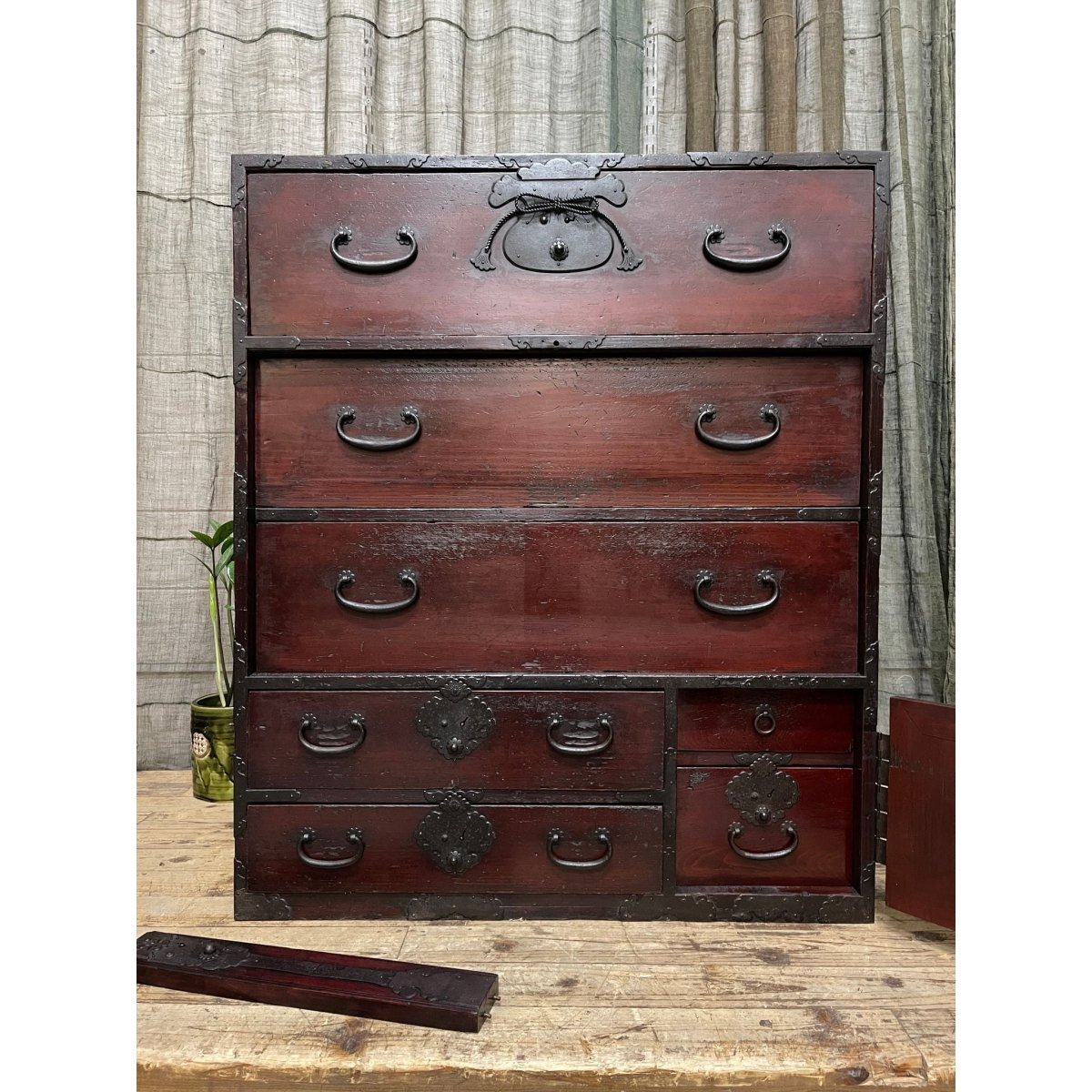 An antique Japanese Mikuni Bo Isho Dansu - clothing chest from Mikuni town in Fukui, with a locking bar.
