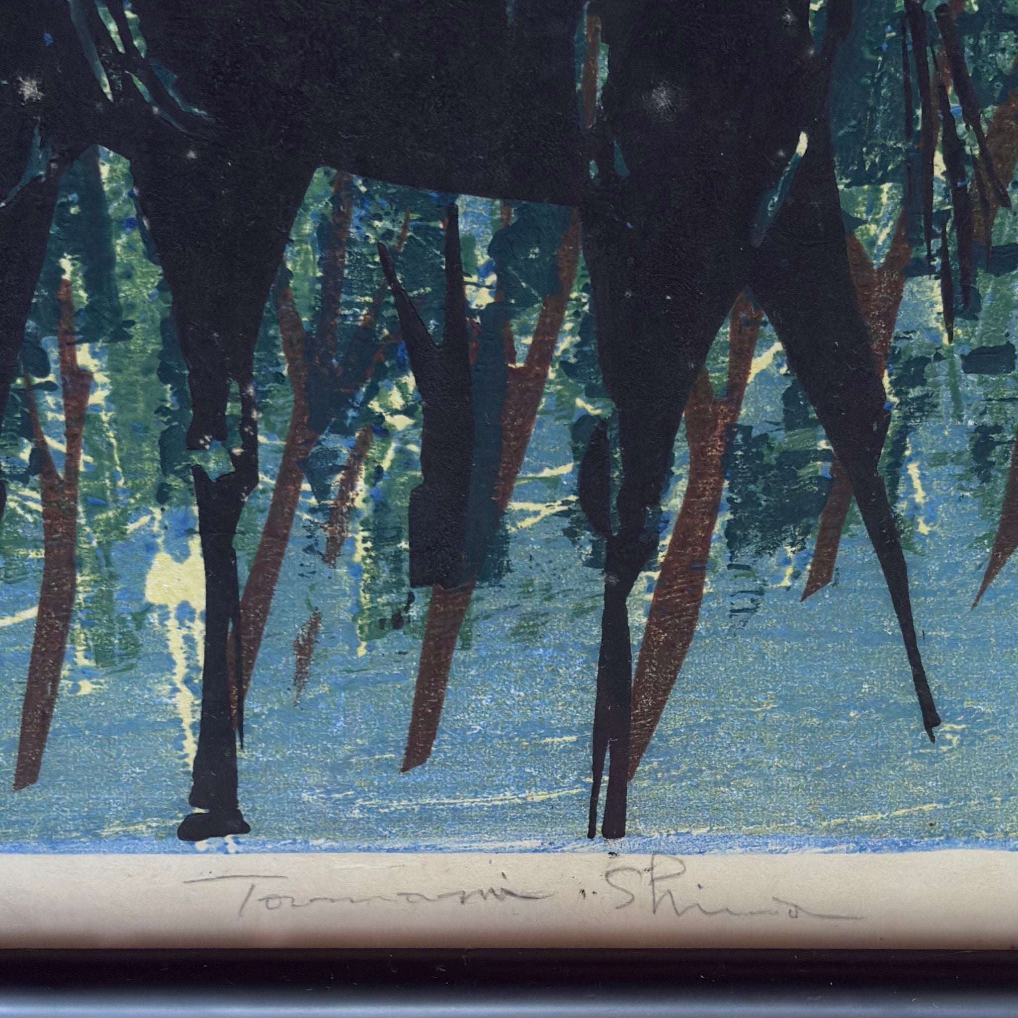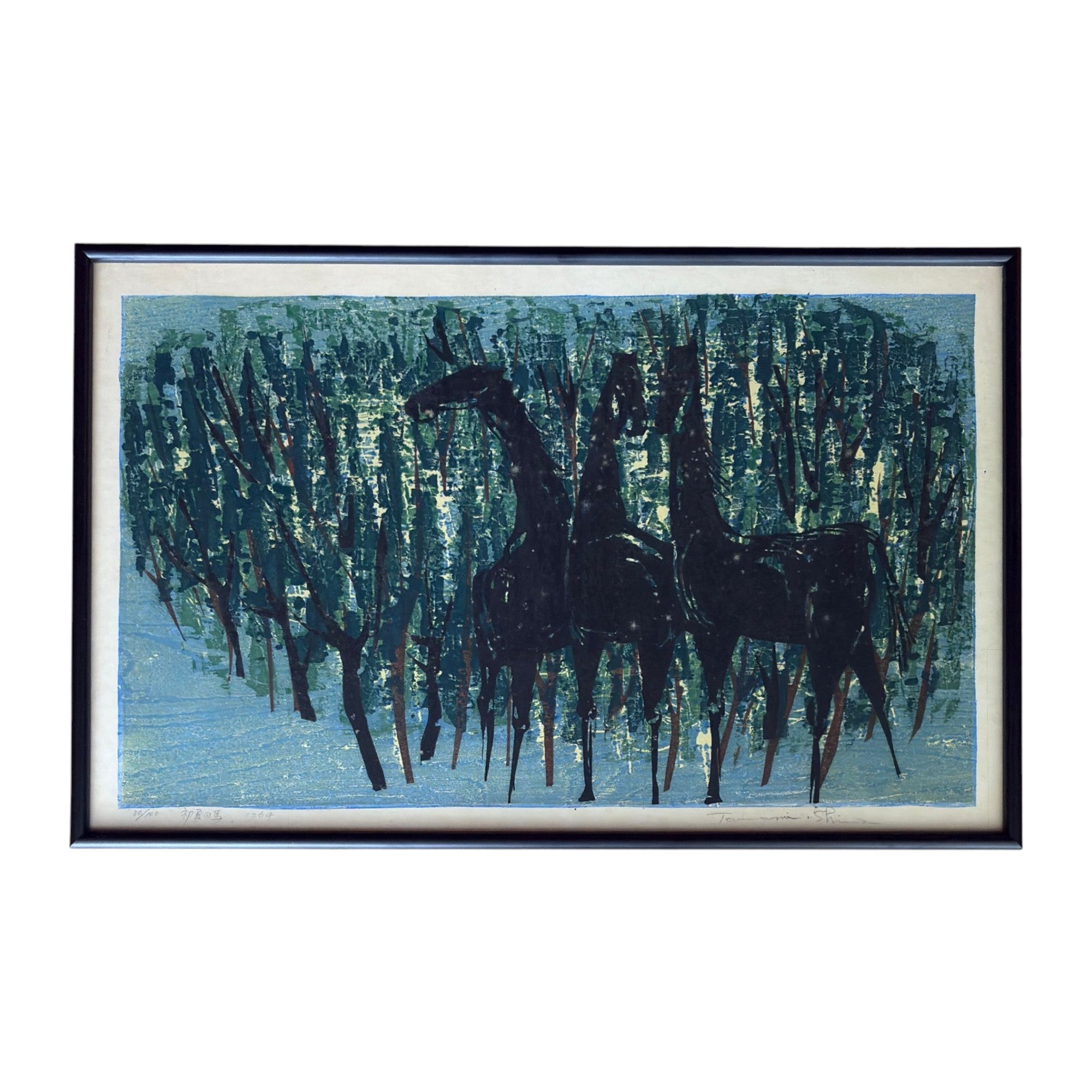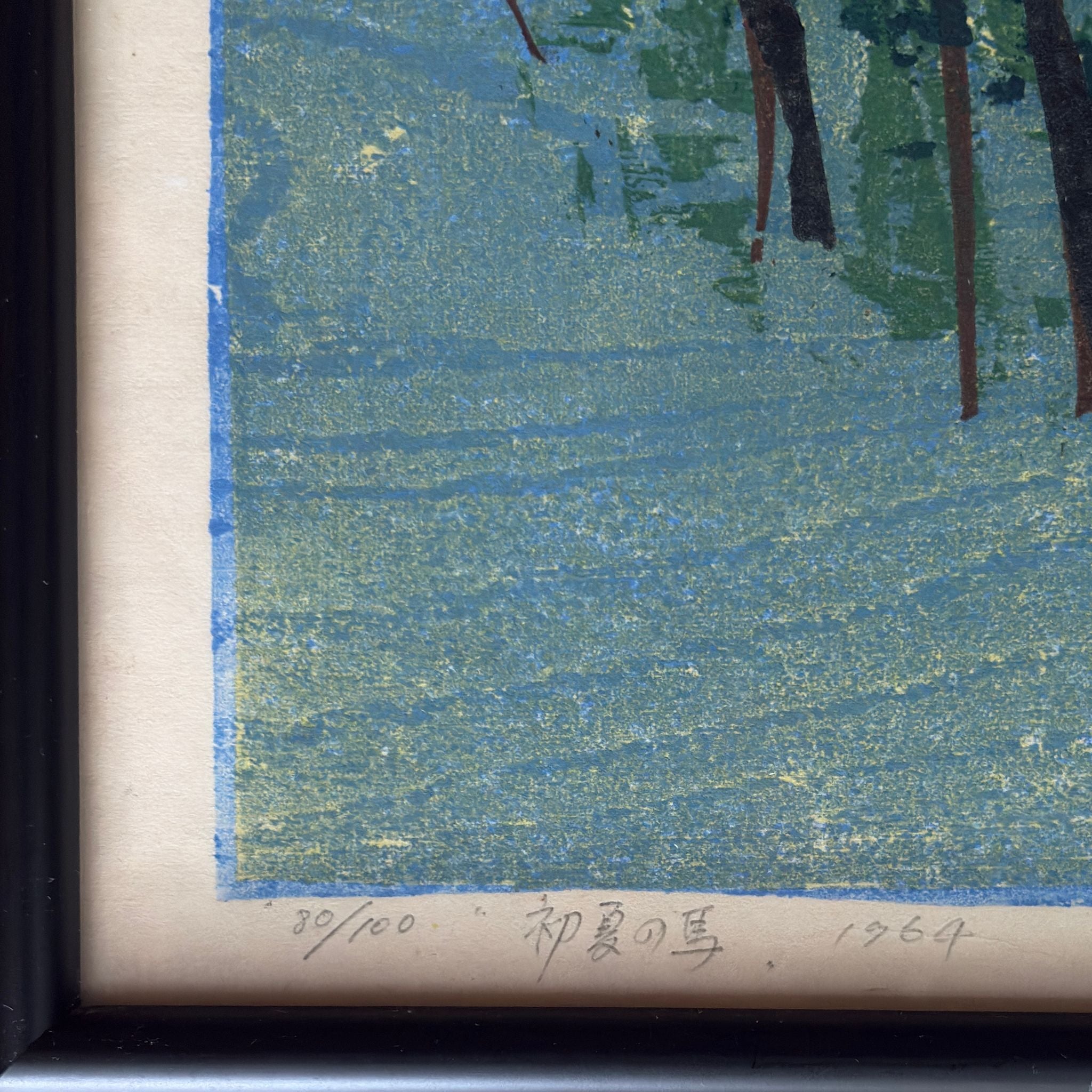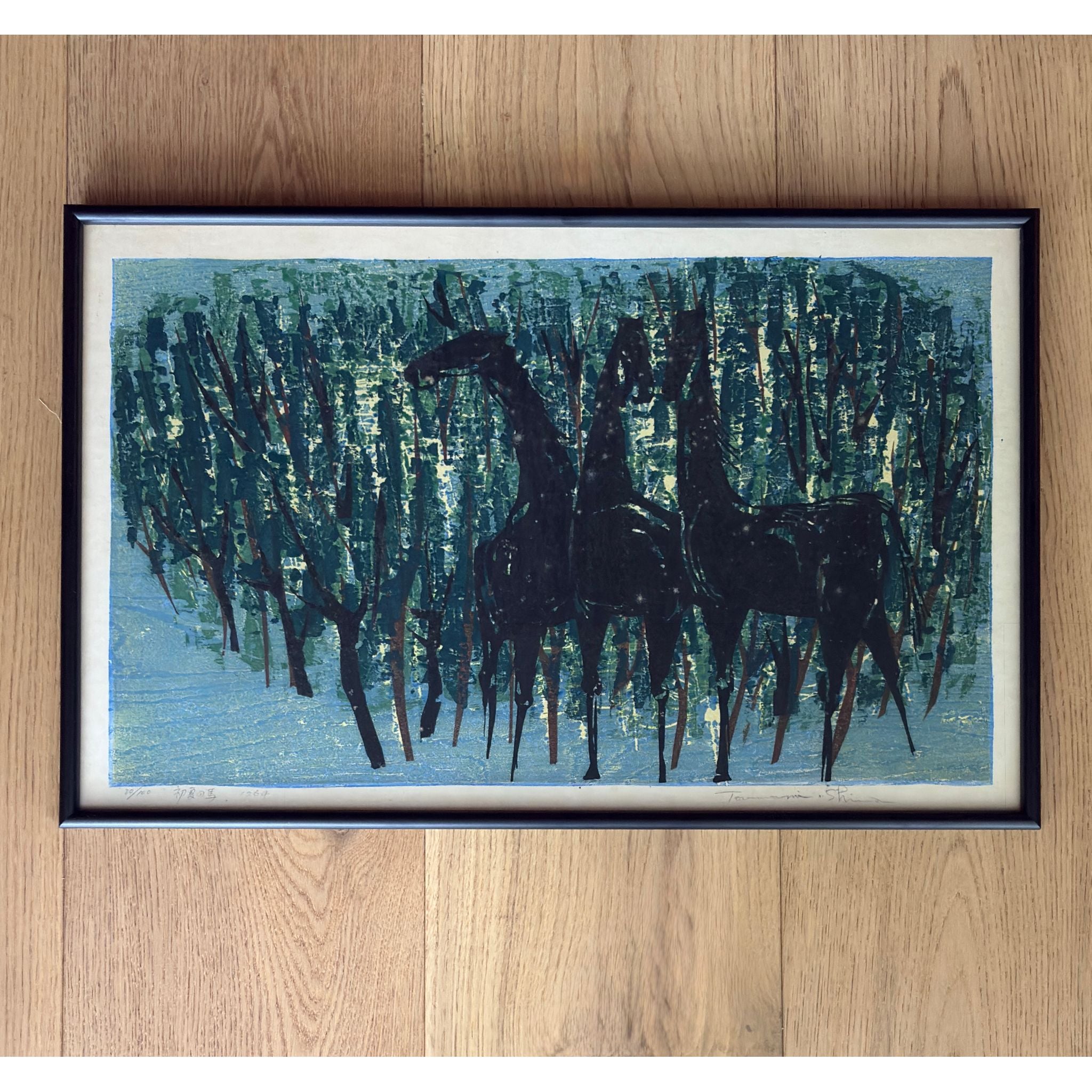 Because her editions were relatively small, examples seldom appear on the secondary market. Demand for Shima’s work has intensified over the last decade as collectors seek out her strongest early prints—especially dated examples such as Whispering Horses.