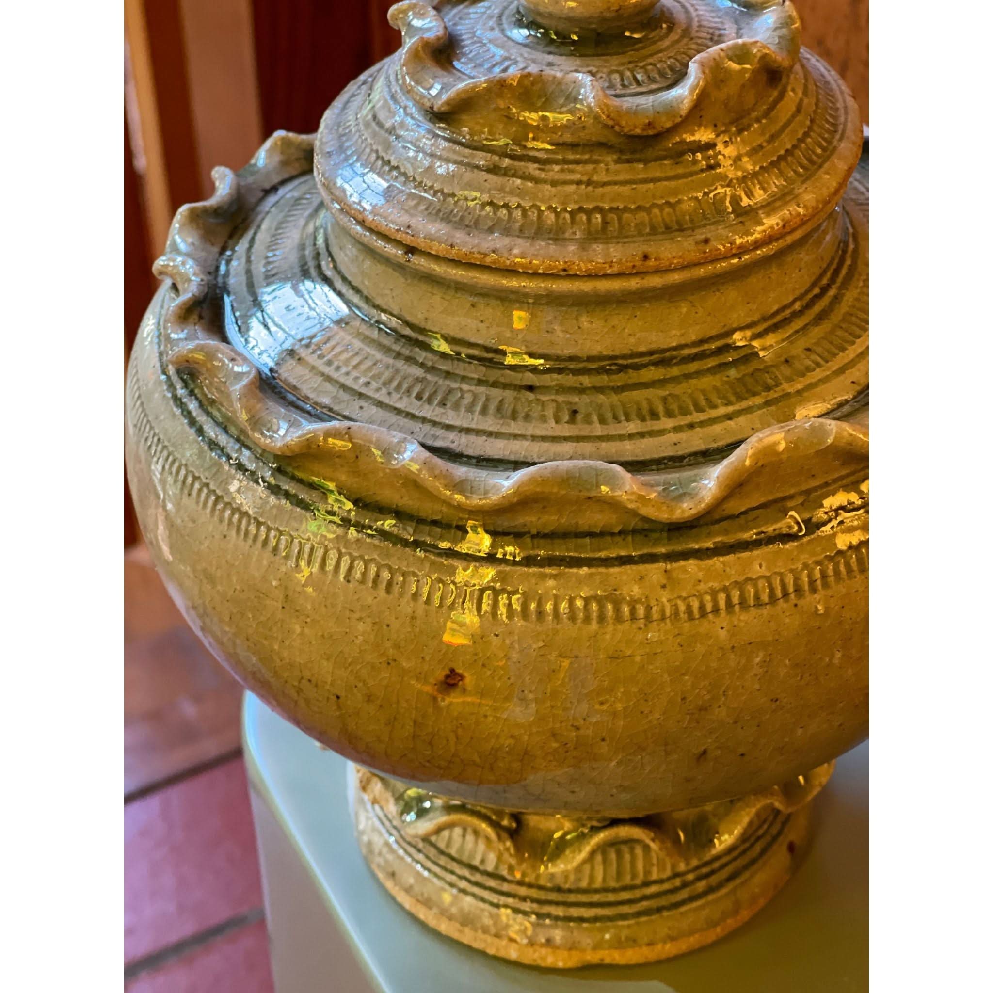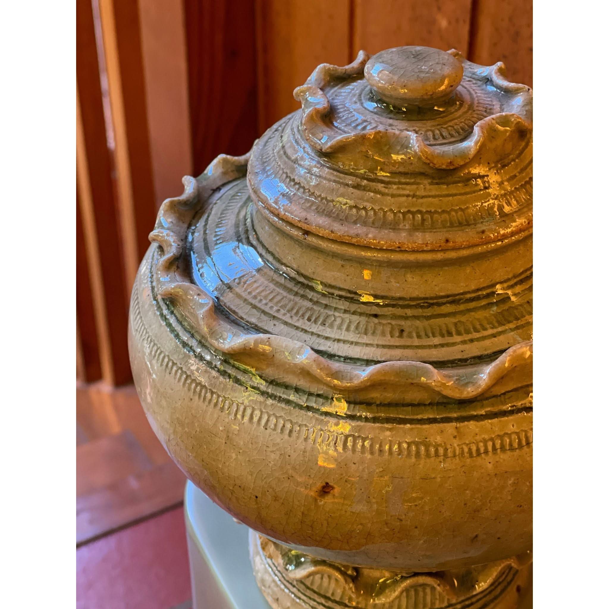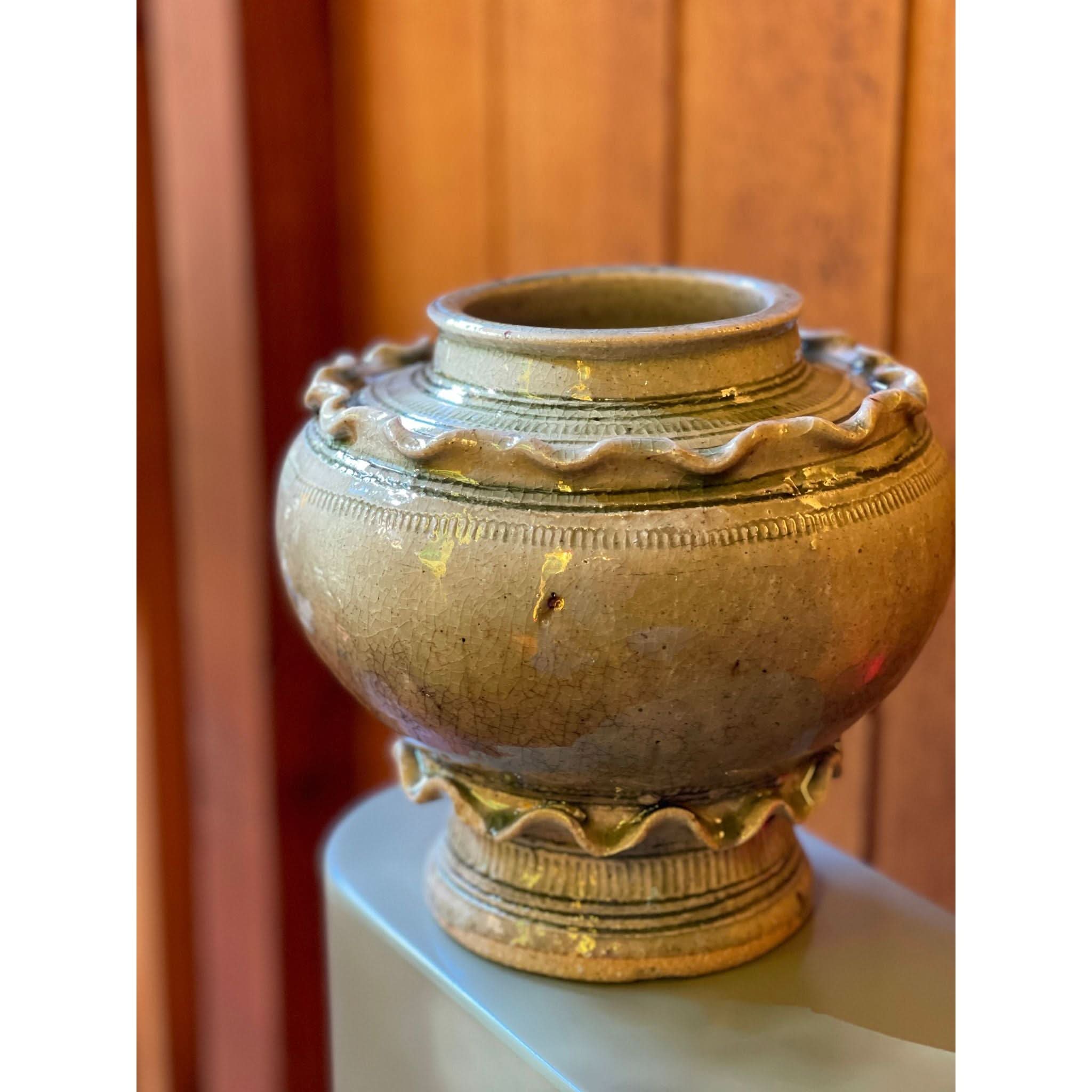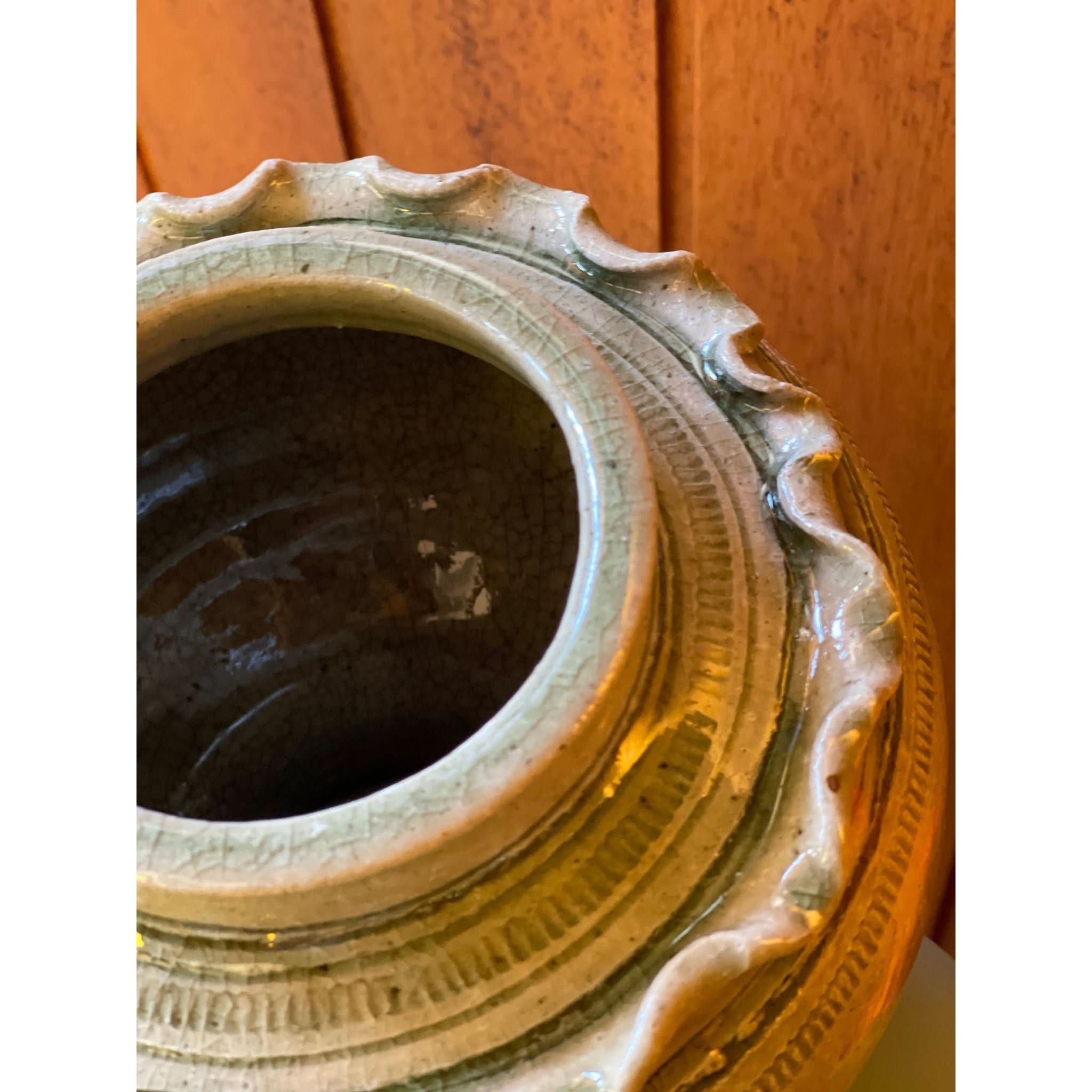 function and beauty! beautiful frill ceramic vessel with lid.