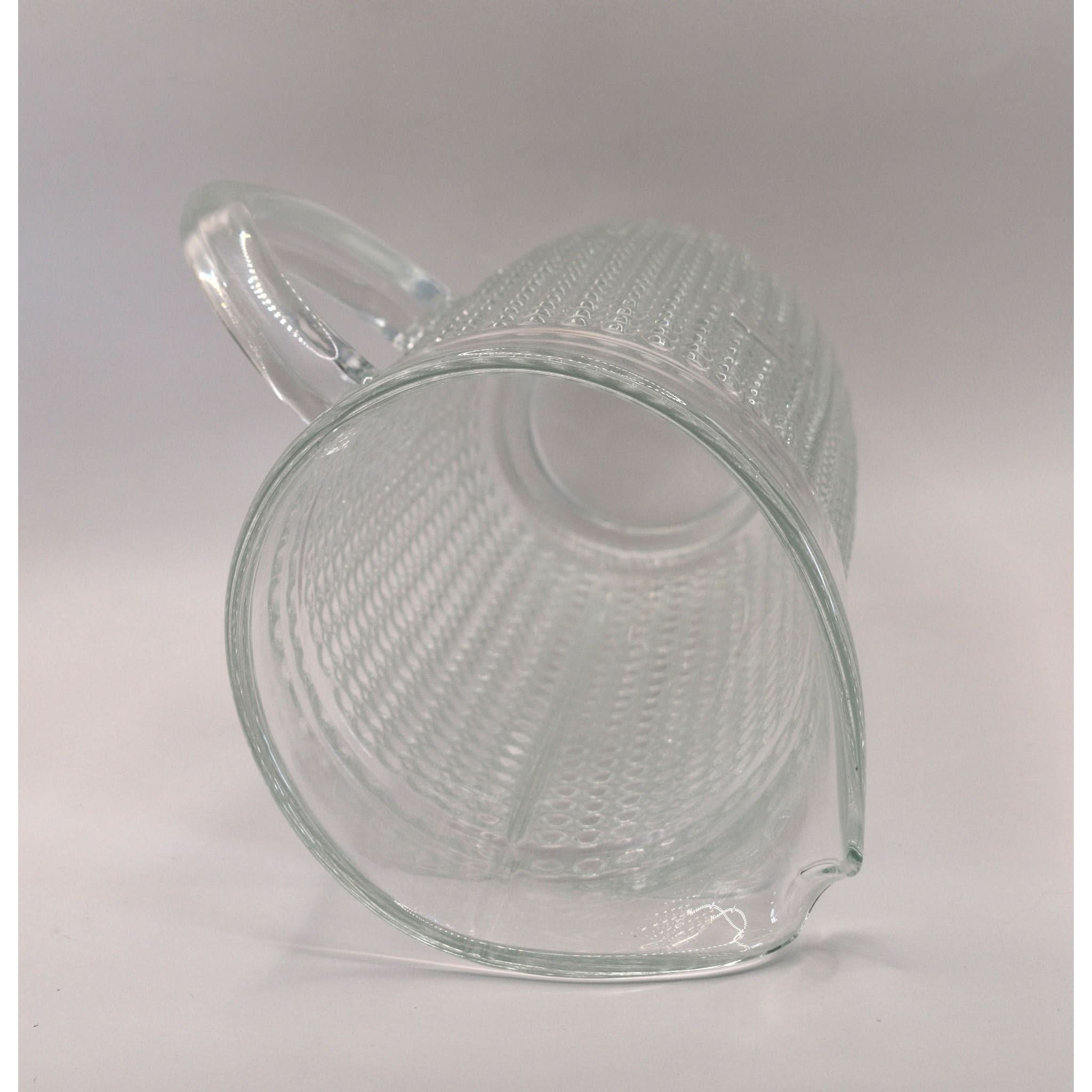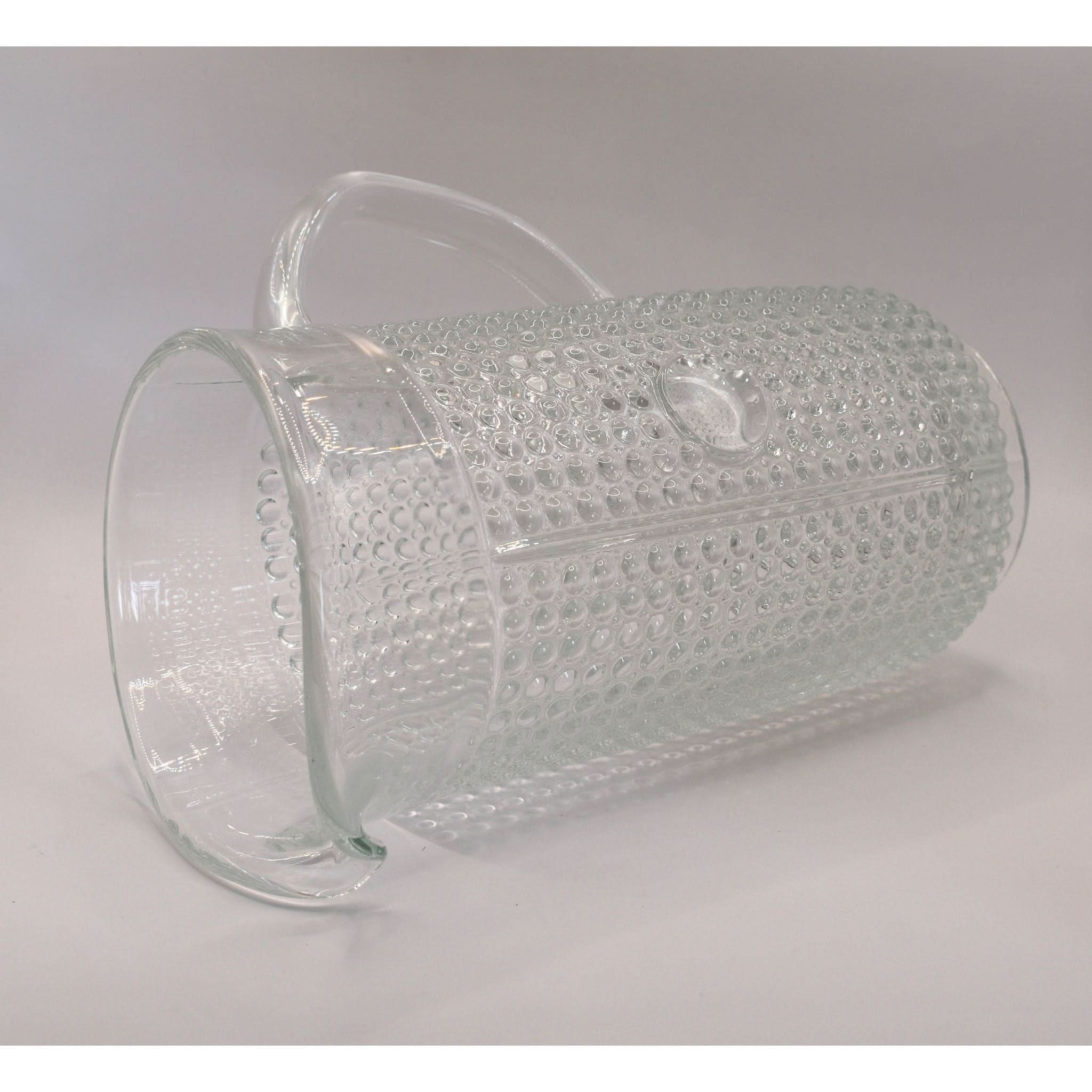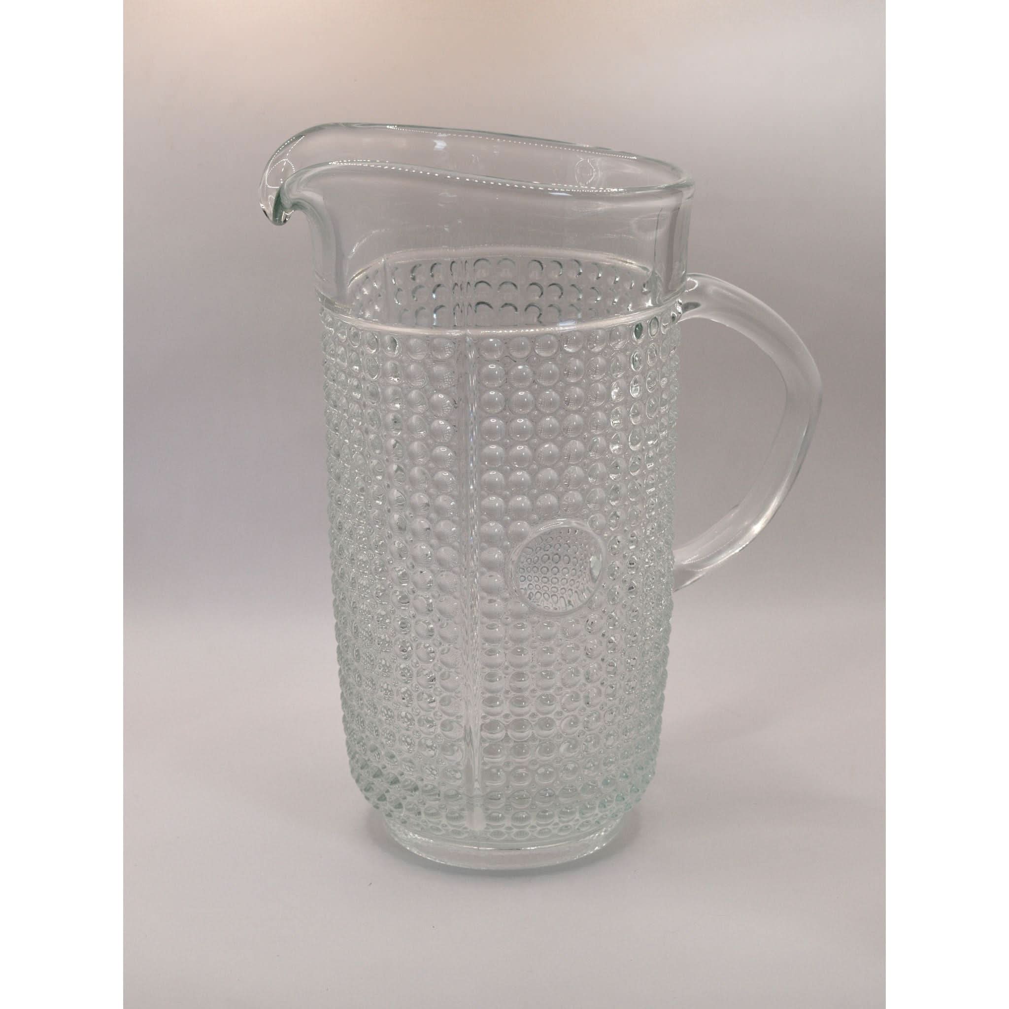 A rare opportunity to acquire this stunning pitcher from the 'Perlicka ' collection designed in 1977 by Adolf Matura for the Libochovice glassworks. The pitcher features a raised beaded decoration with a single concave lens to one side. The lens detail projects beyond the body of the pitcher.