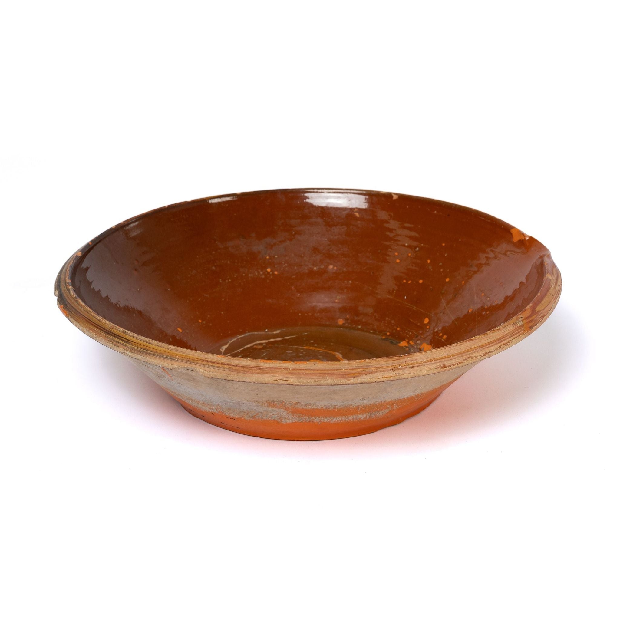 Large Vintage French Terracotta Bowl, partially glazed and with paint patina