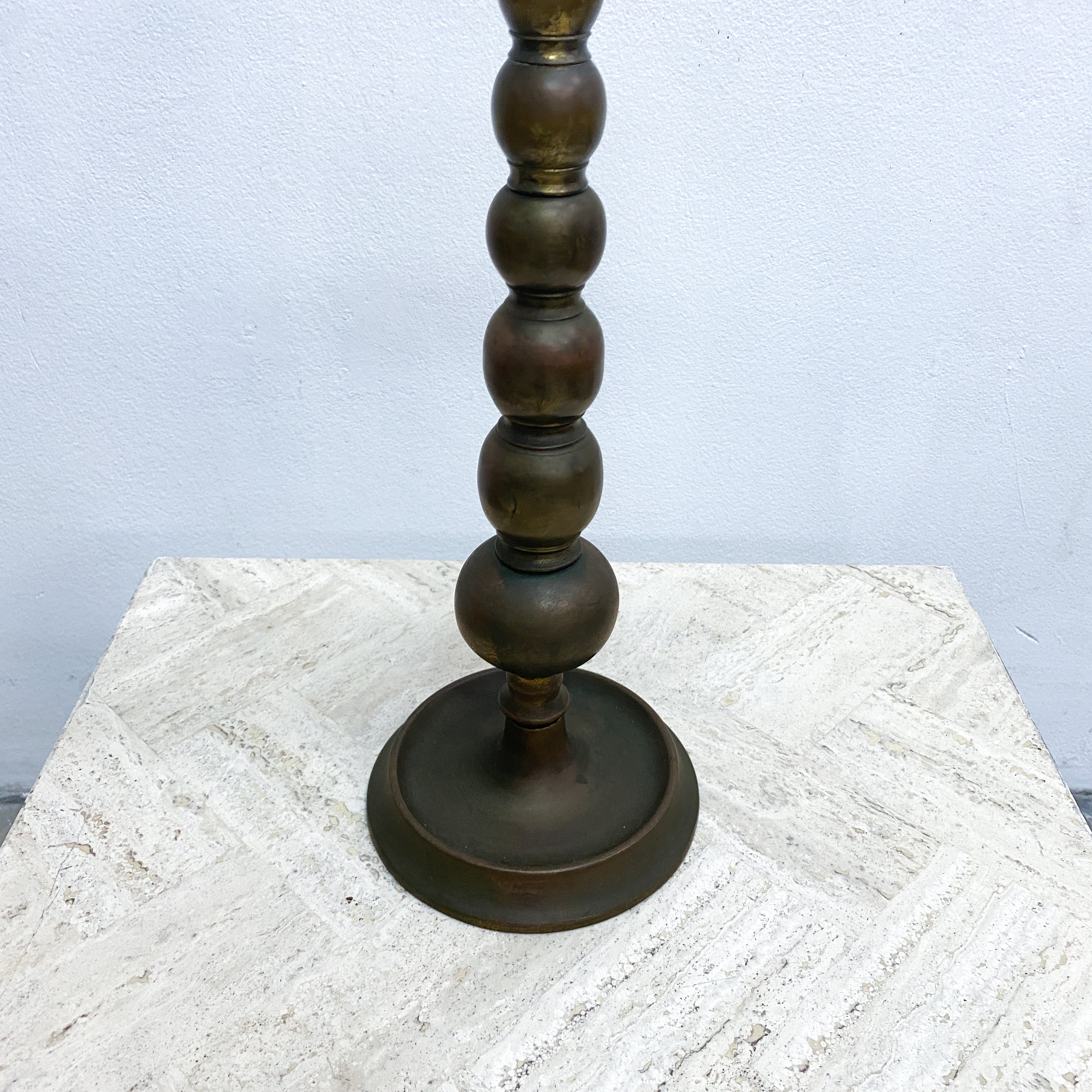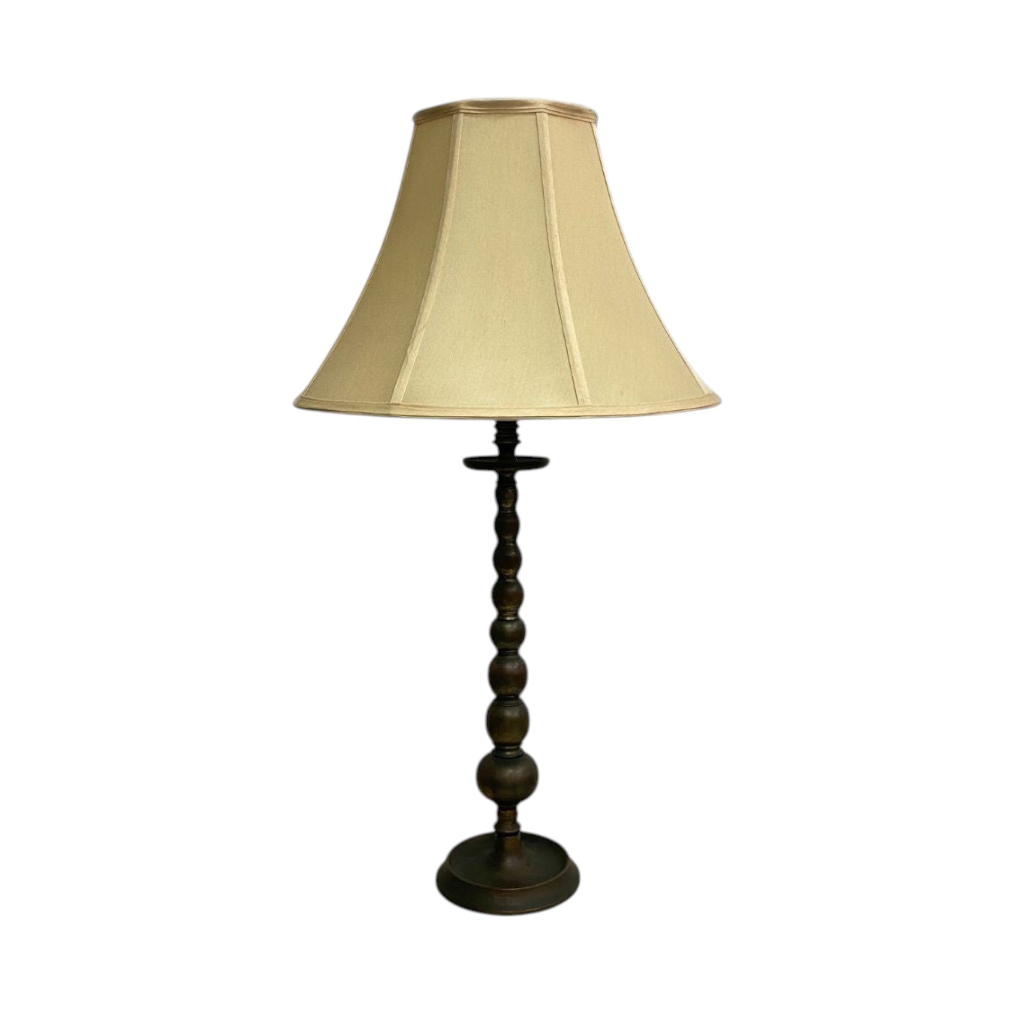 Charming and elegant antique brass candlestick table lamp. Its sleek silhouette and bronze finish will add a touch of antique sophistication to any room.