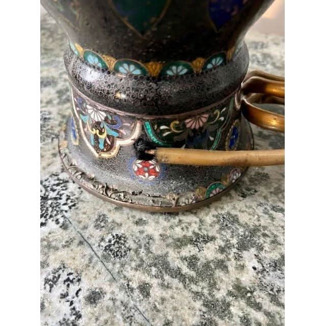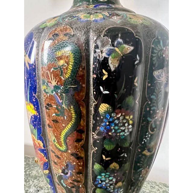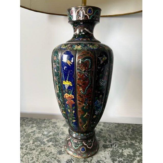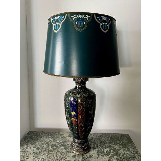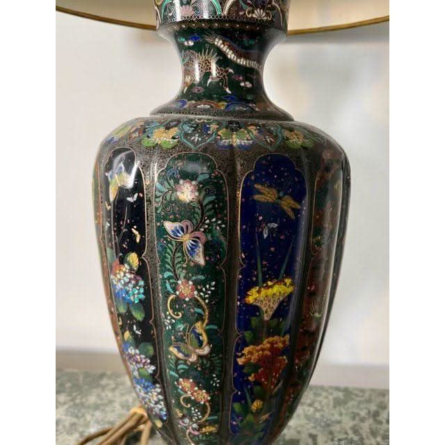 This is a very high quality and impressive tall lobed Cloisonne Vase that has been converted to a lamp and has had a custom shade made which has been hand painted so as to compliment details on the vase base.