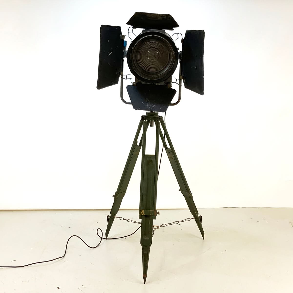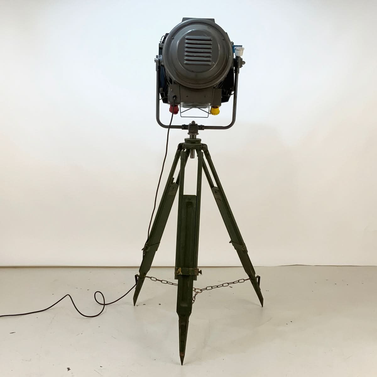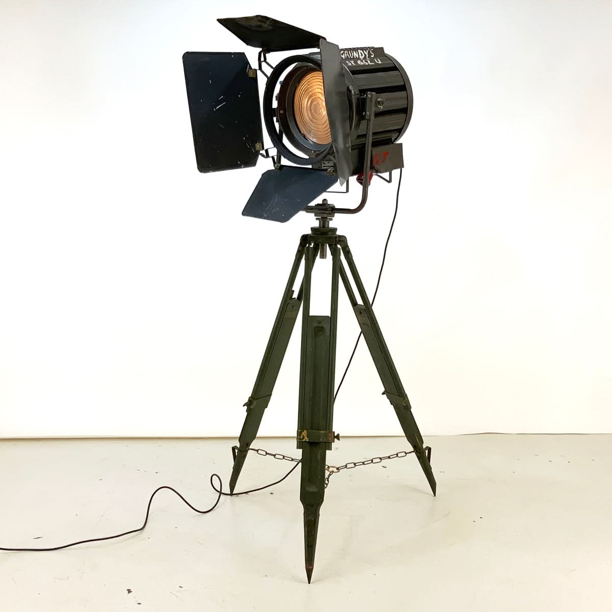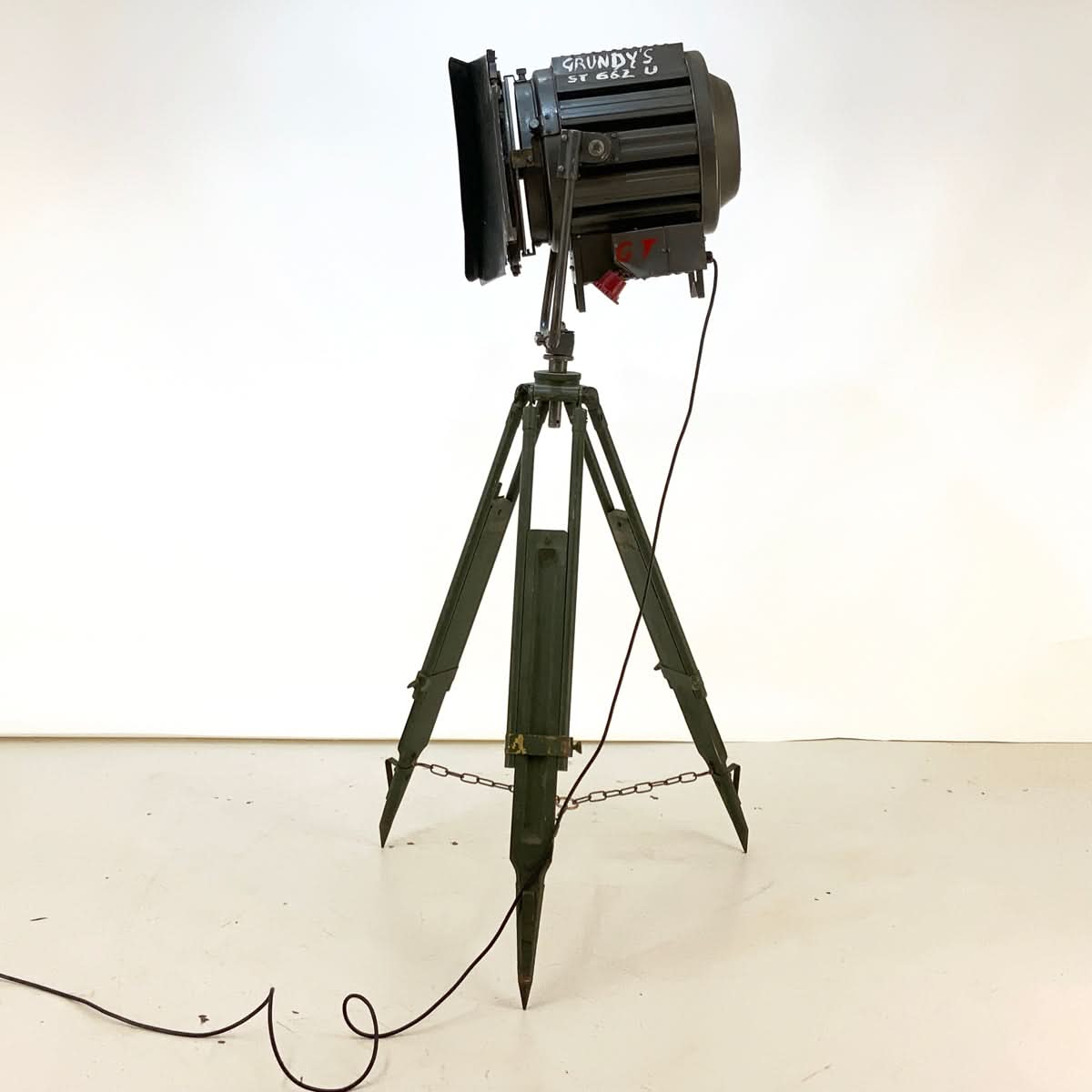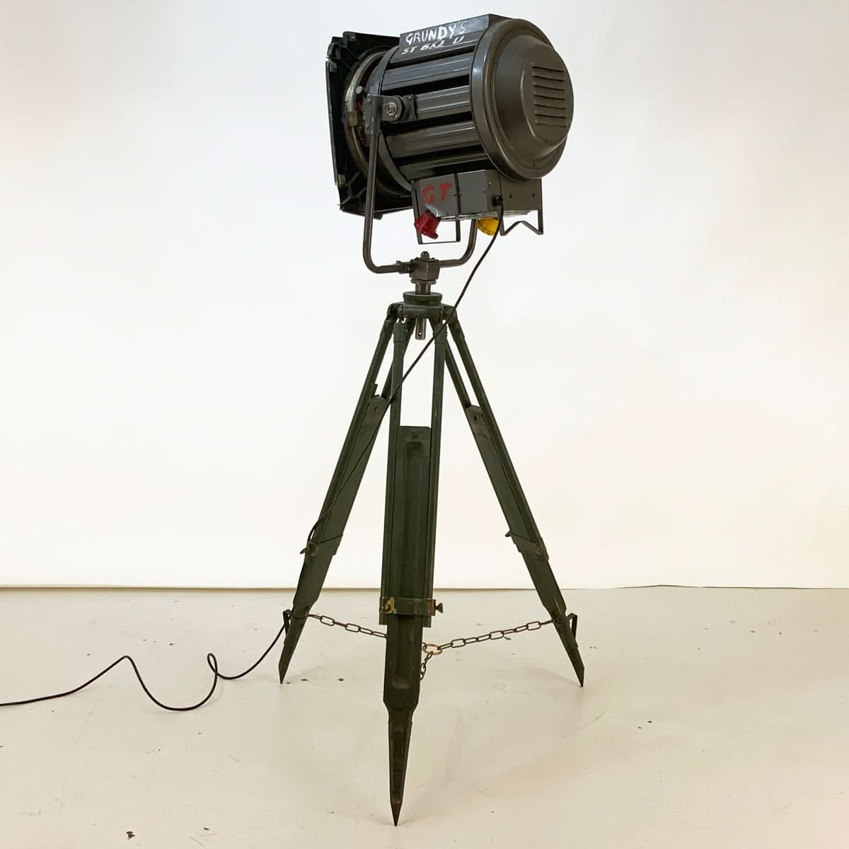 Own a piece of Australian television history with this spotlight which was used in Reg Grundy’s studios. Mounted on a vintage adjustable machine gun tripod, this definitely will be a talking point when anyone enters your space. The spotlight features the original shutter doors around the lens and has been converted to operate on standard light globe .