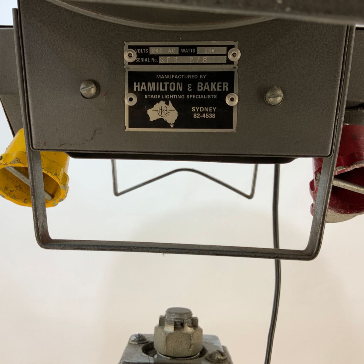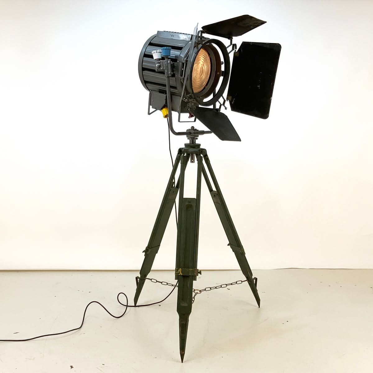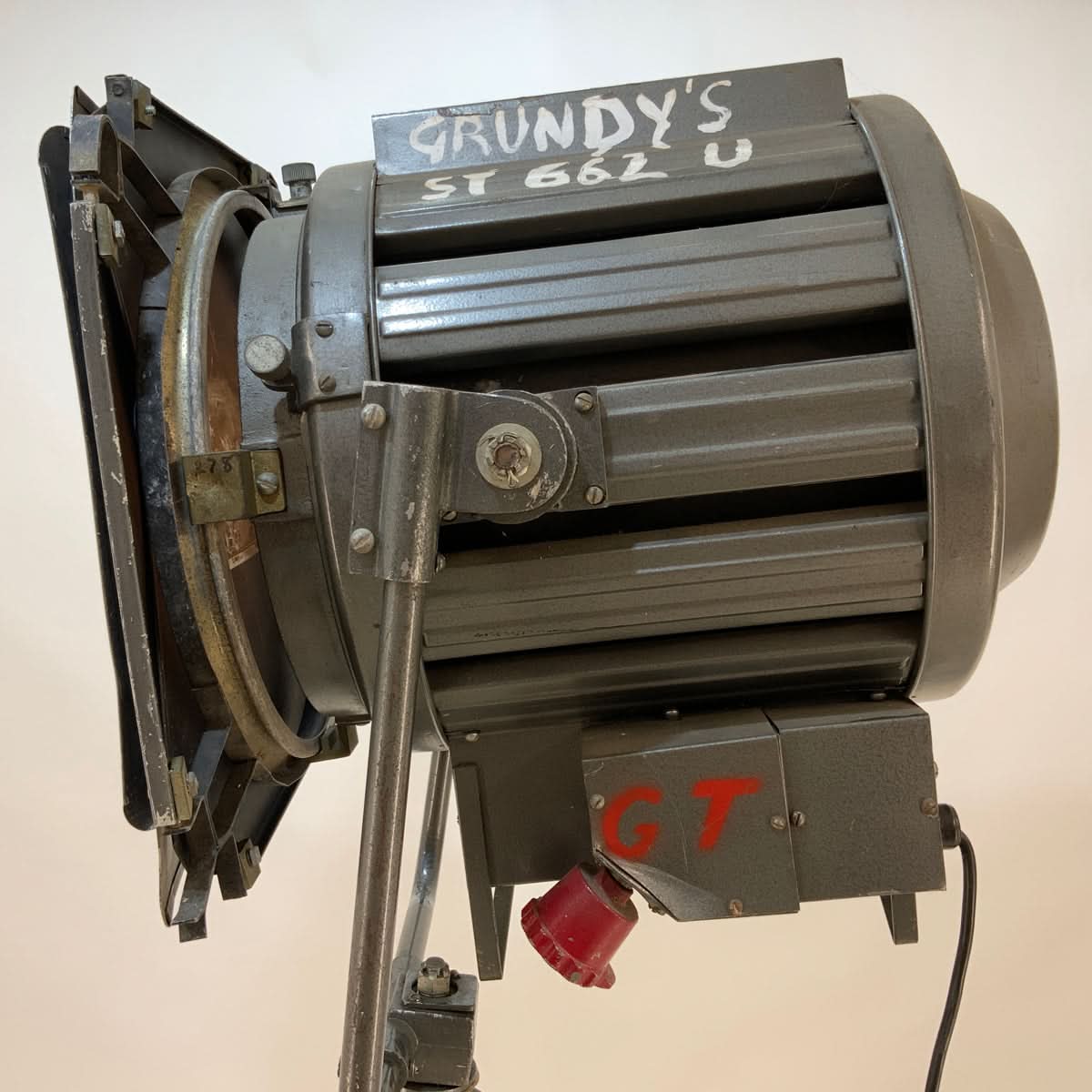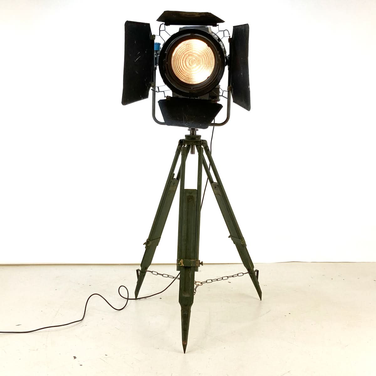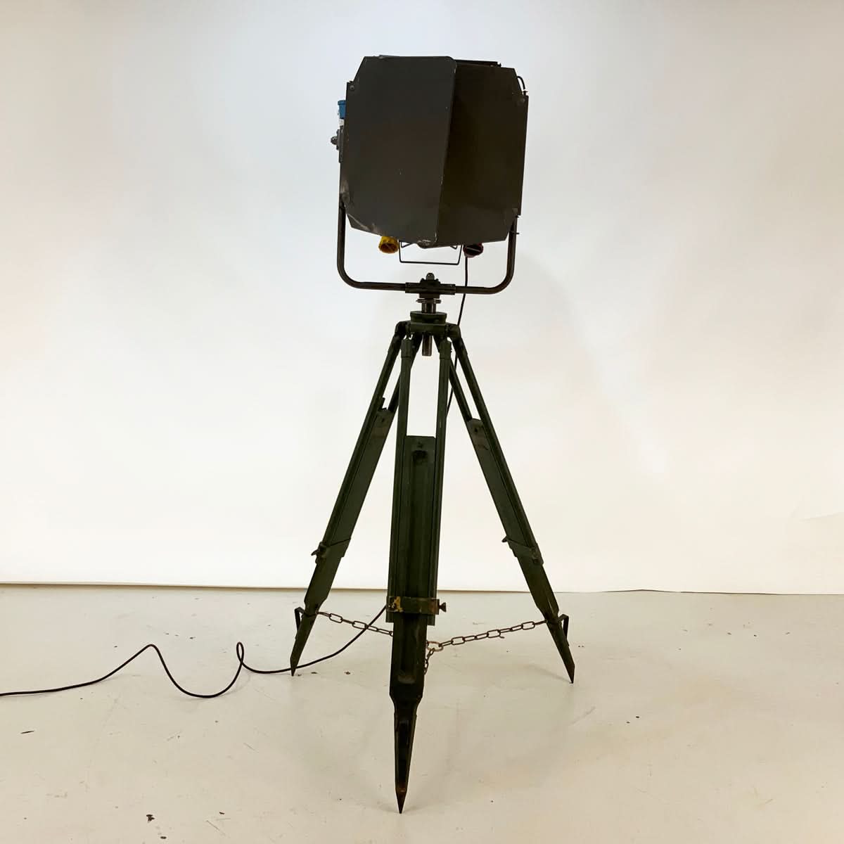 Own a piece of Australian television history with this spotlight which was used in Reg Grundy’s studios. Mounted on a vintage adjustable machine gun tripod, this definitely will be a talking point when anyone enters your space. The spotlight features the original shutter doors around the lens and has been converted to operate on standard light globe .