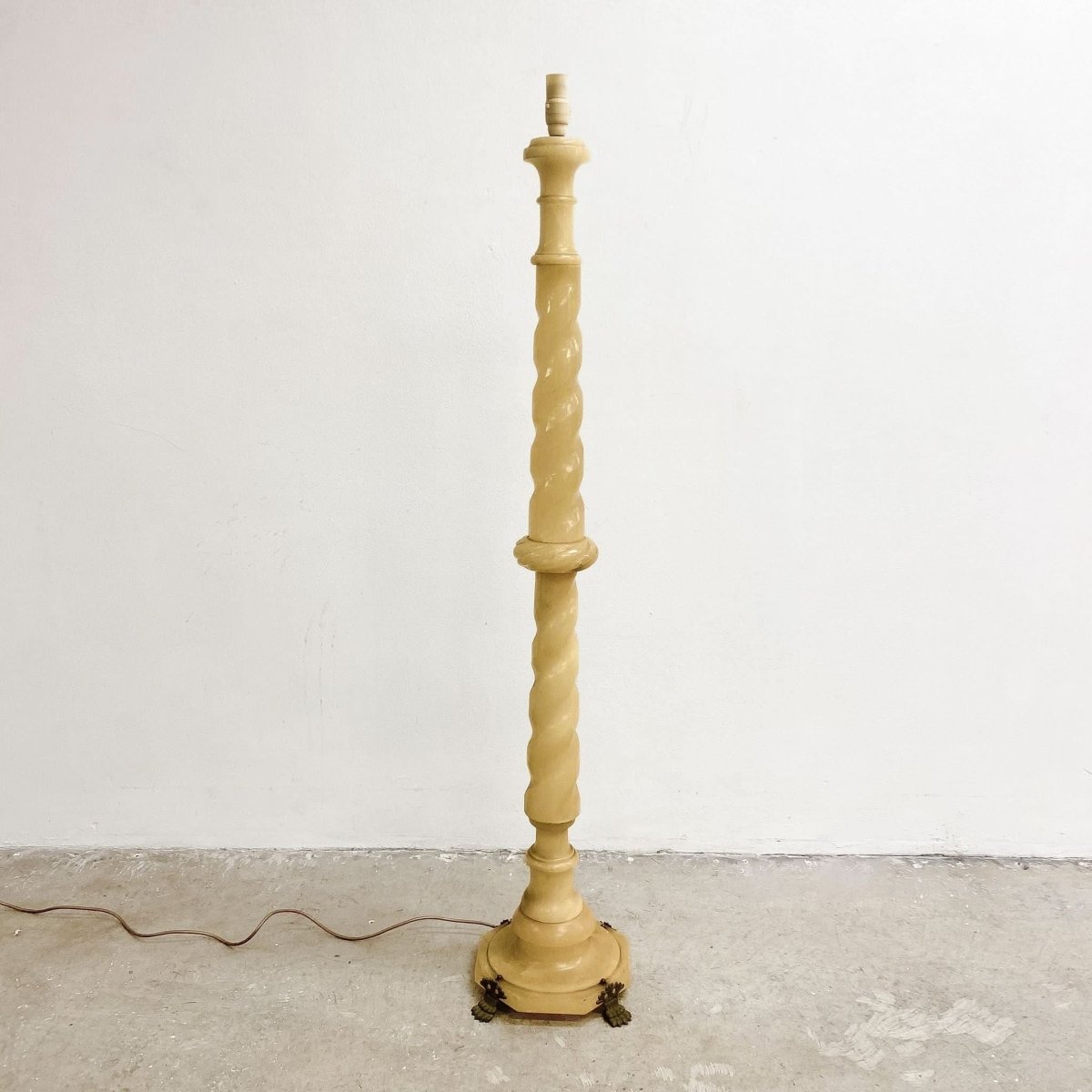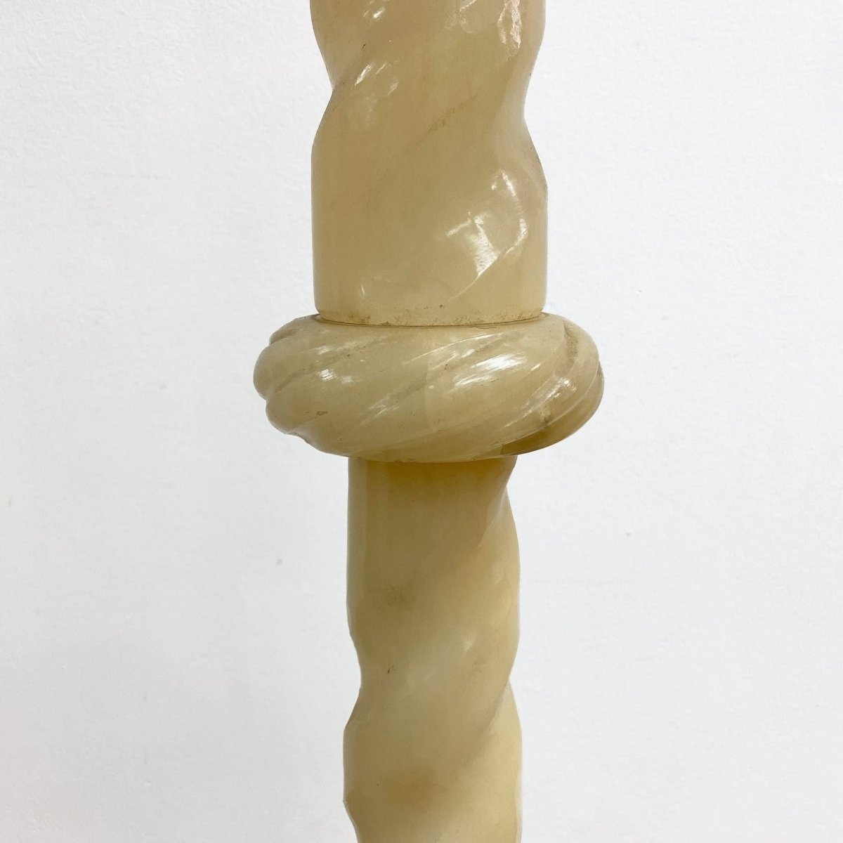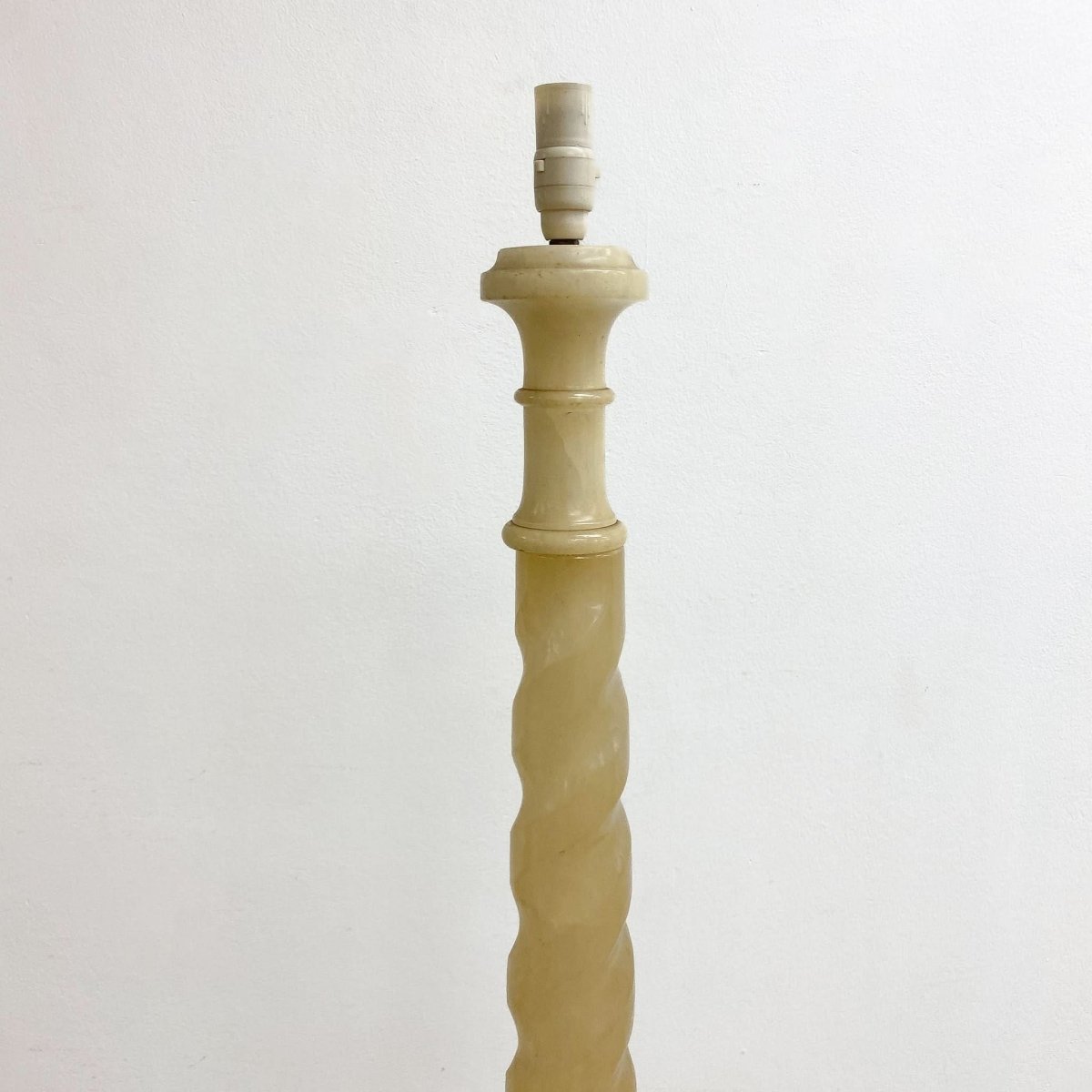 Rare 1940s alabaster twisted column floor lamp. With elegant curves and the natural translucence of the alabaster, this rare piece carries with it a sense of history and beauty. In very good condition with minimal signs of age. Shade sold separately.
