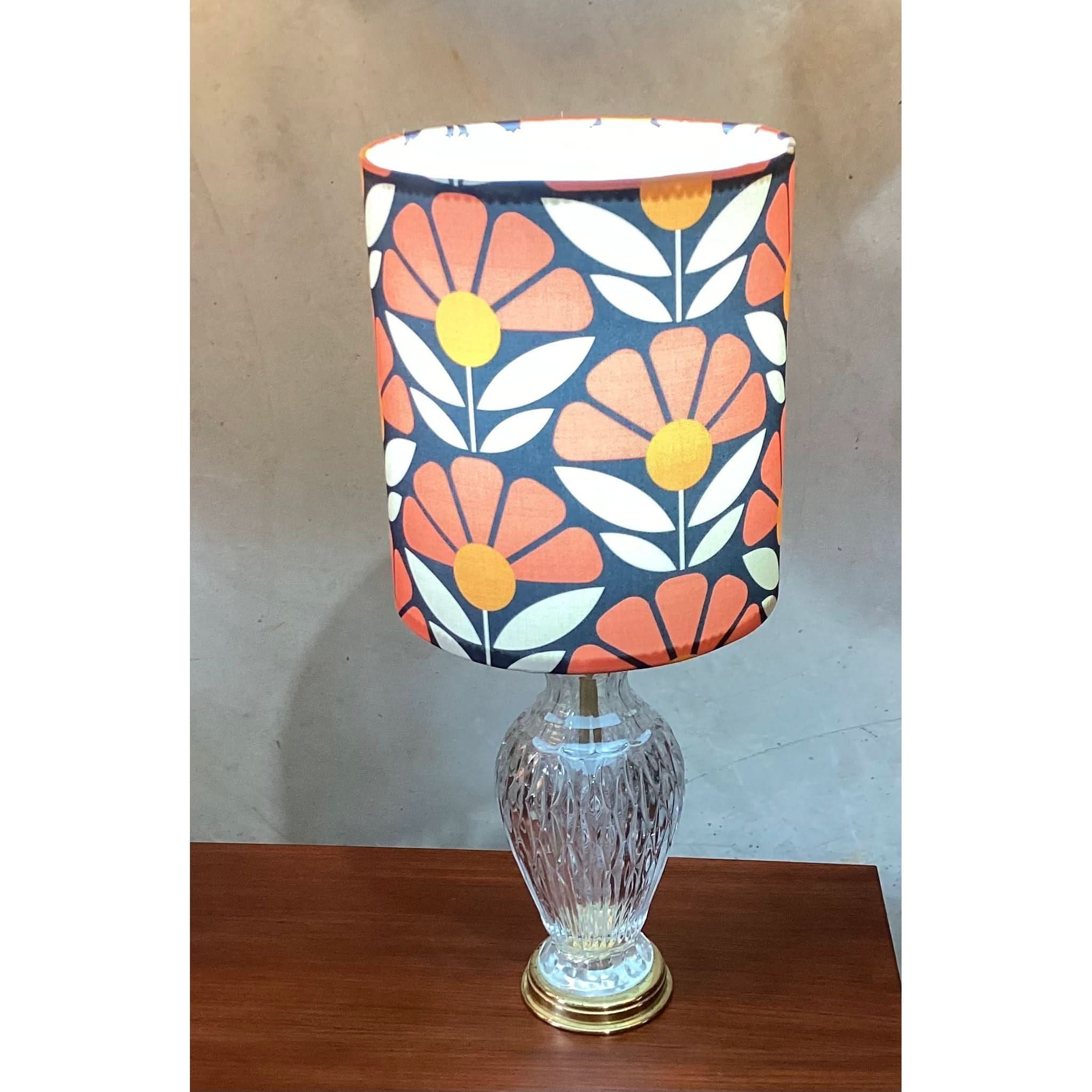 Hand-made shade measuring 26cmx29cm on stunning vintage etched glass base with brass detail