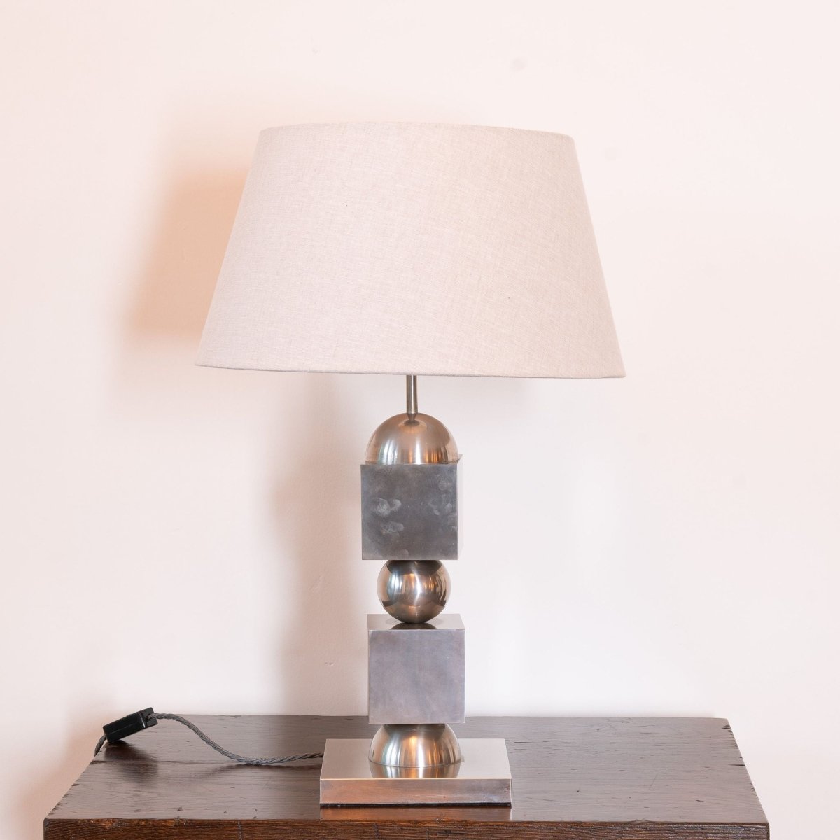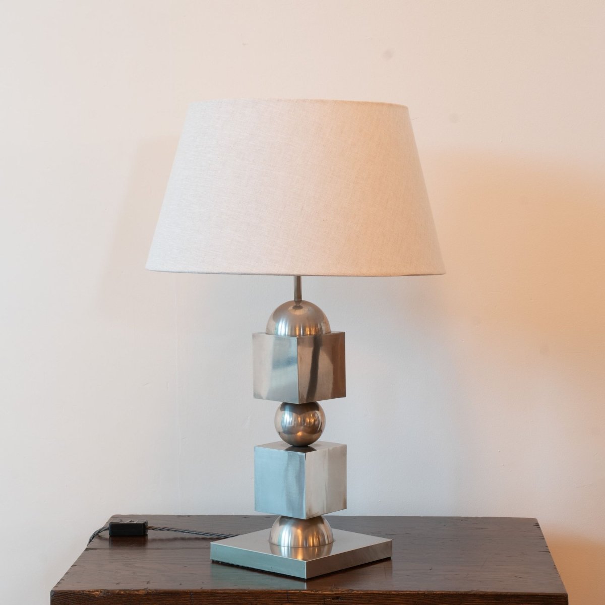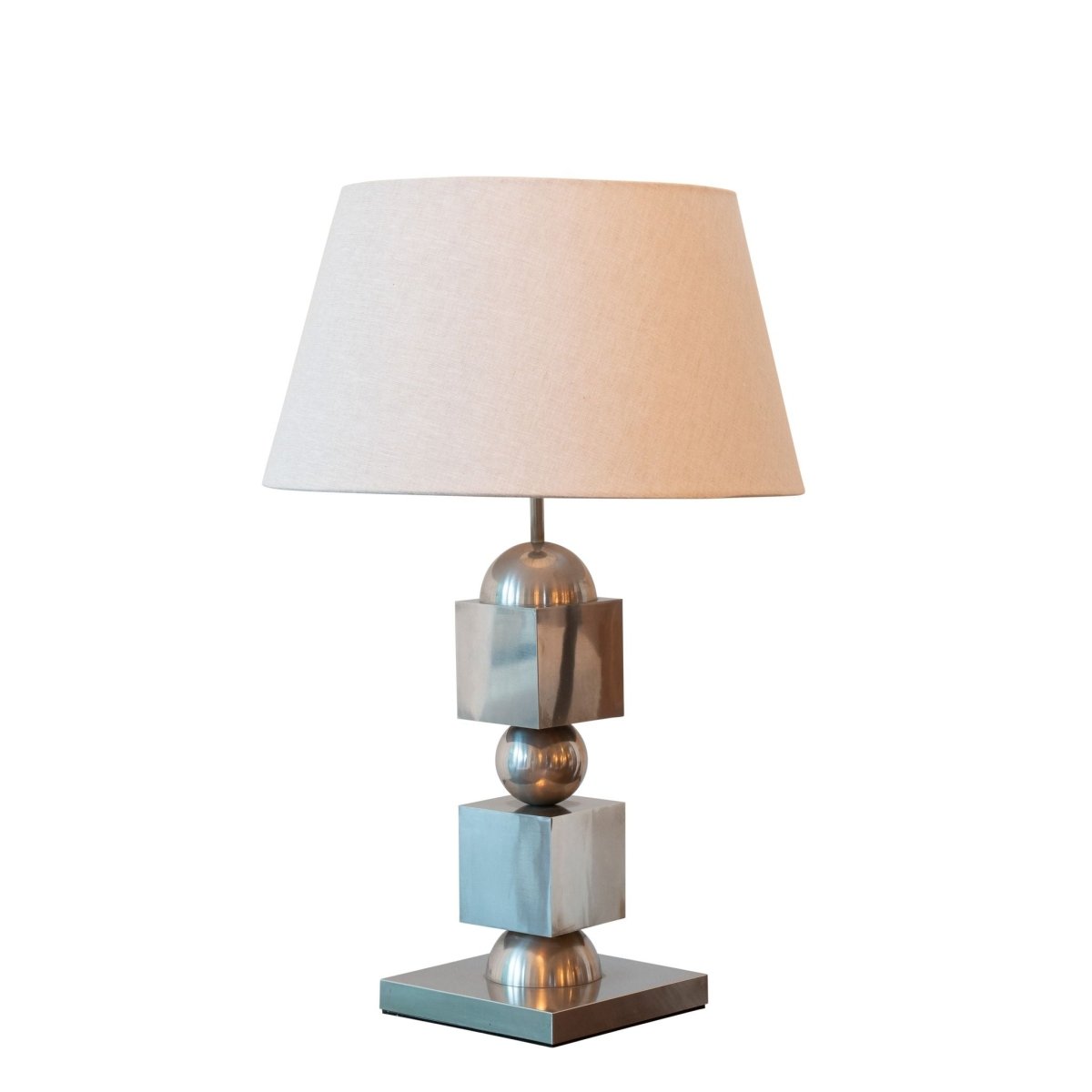 1970s Chrome Stacked Table Lamp with linen shade.