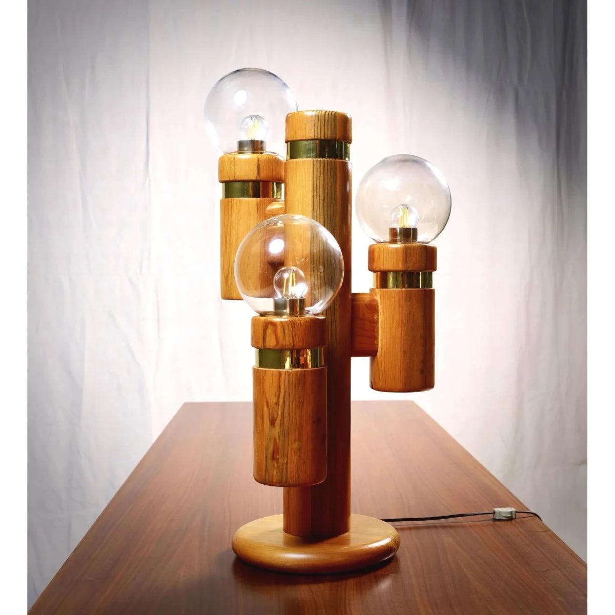 Extra Large ‘Cactus’ Table Lamps, made from Ponderosa wood & Brass, 1970’s USA.
