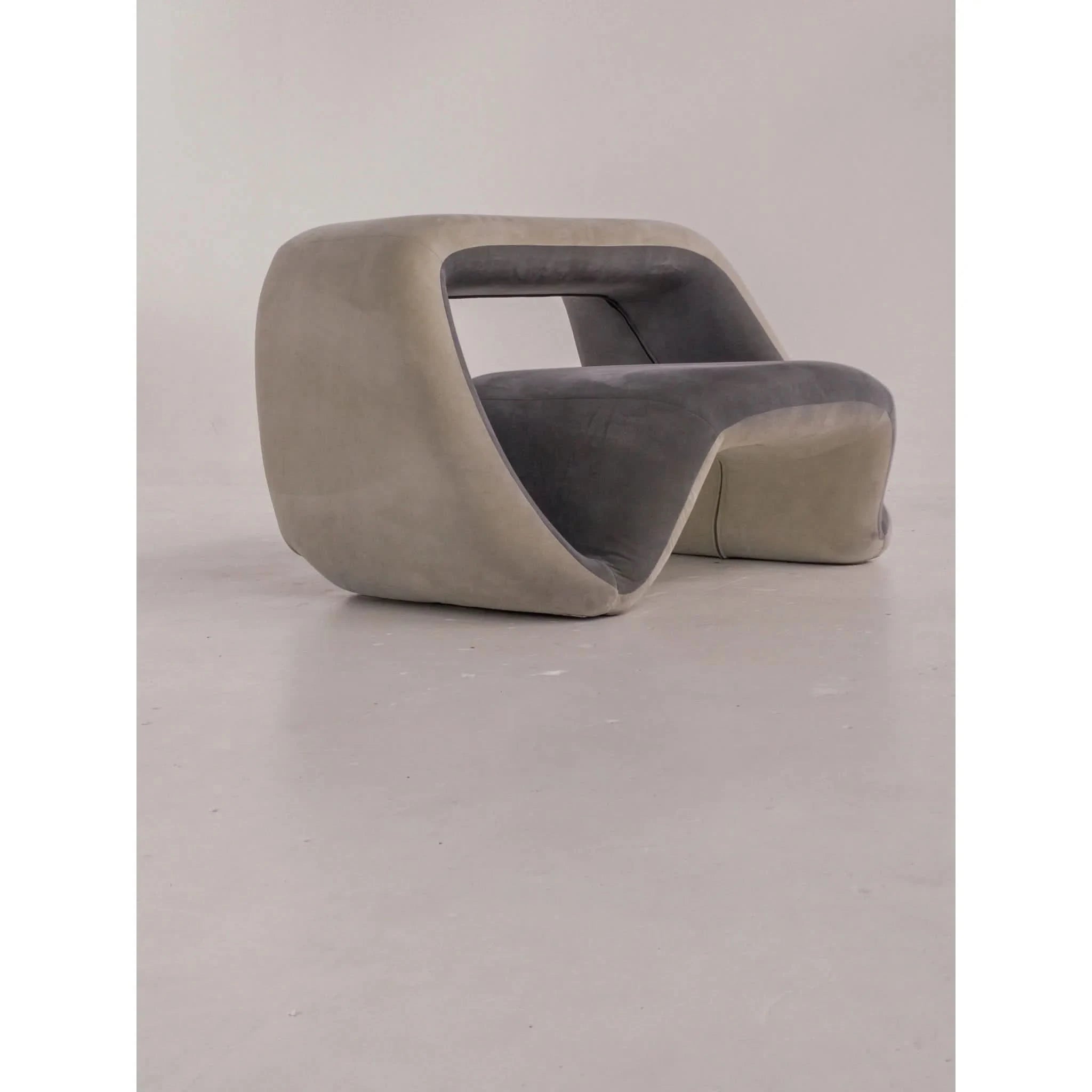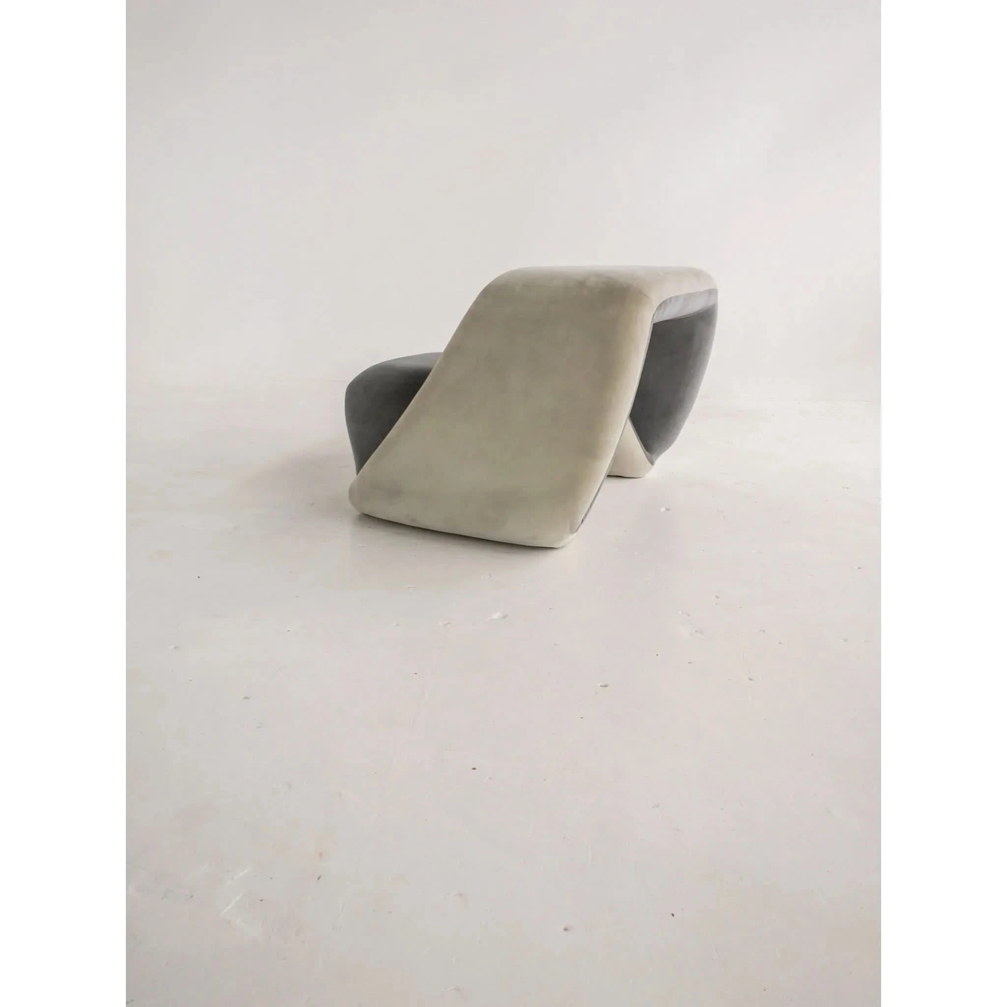 The highly desirable lowline version of this rare and very attractive chair. Finished in two tone Alcantara Suede with incredible quality and attention to detail. Very sculptural and a great talking point in you space. These are from the early 2000’s and there is some slight signs of age but overall present fabulously!