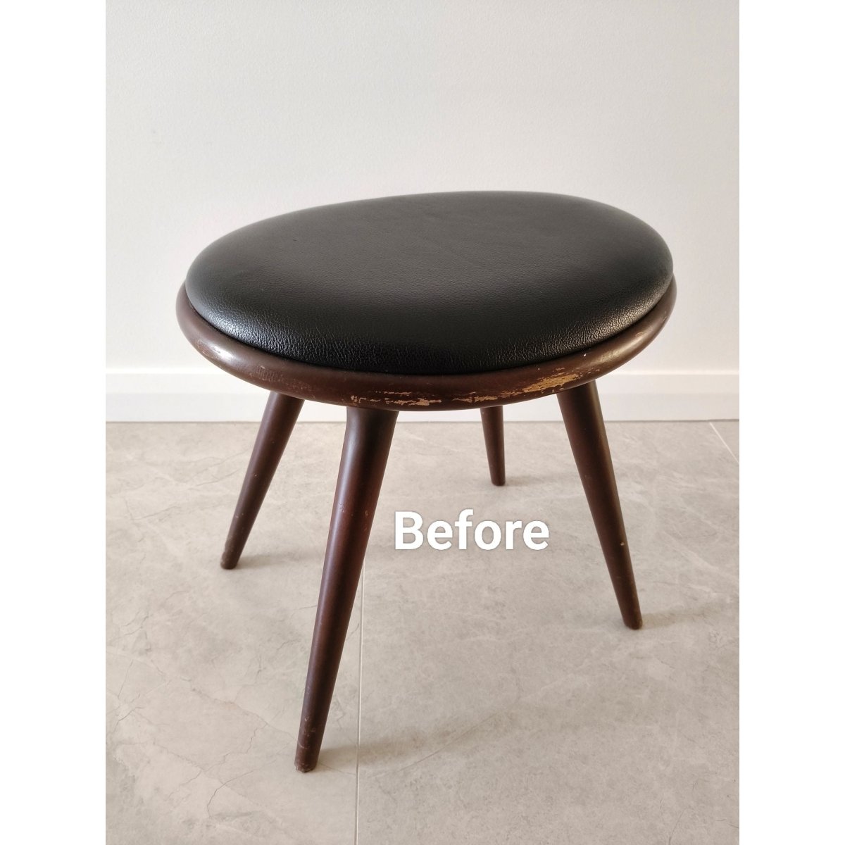 Restored Low Stool by MATER. Black leather is in perfect condition. No rips, stains or tears.