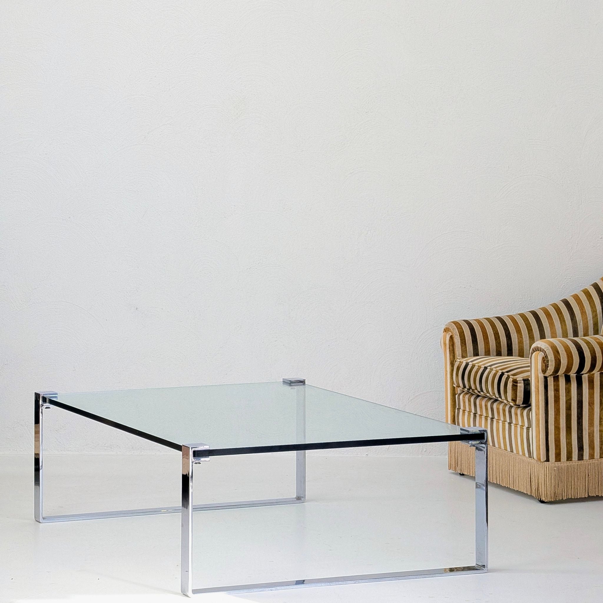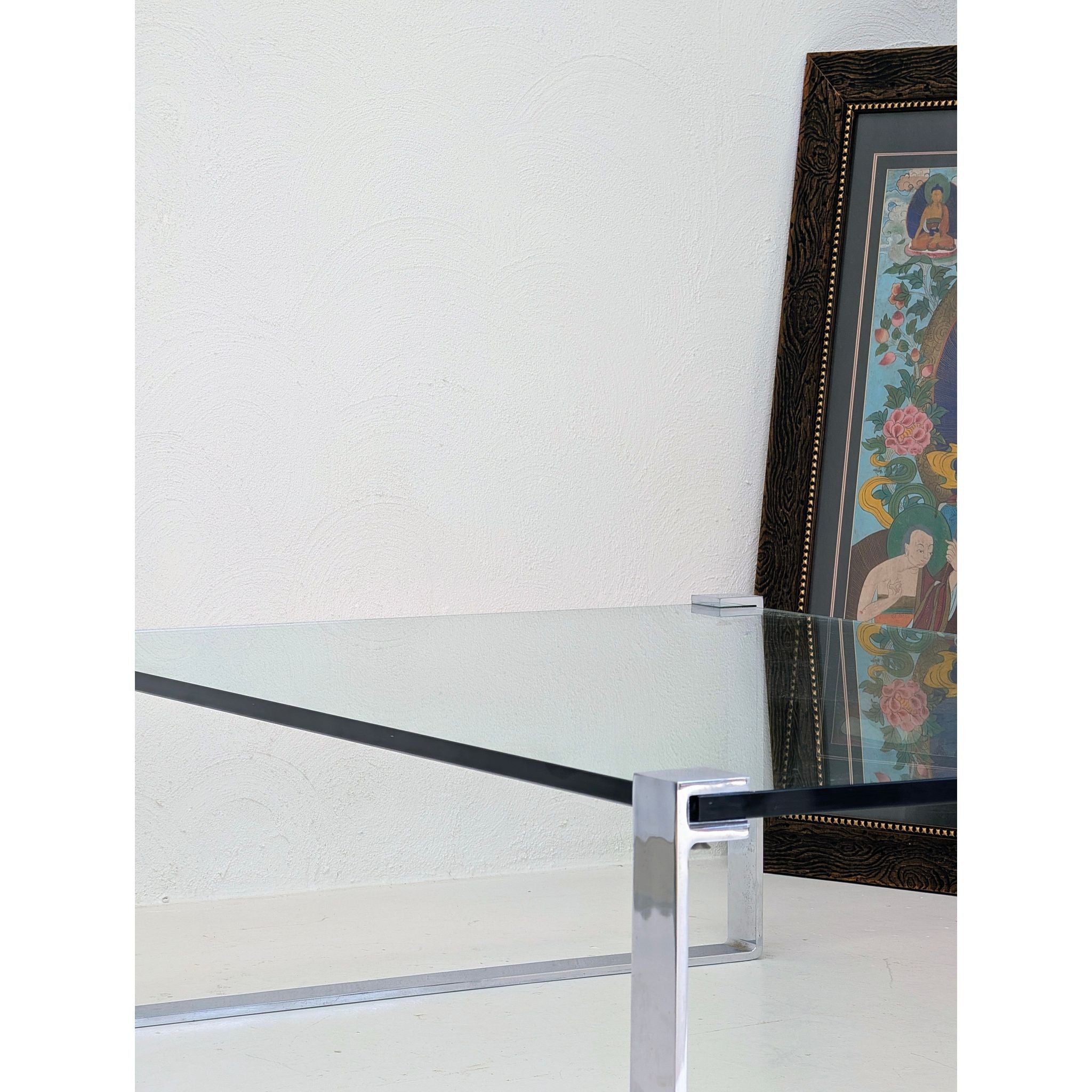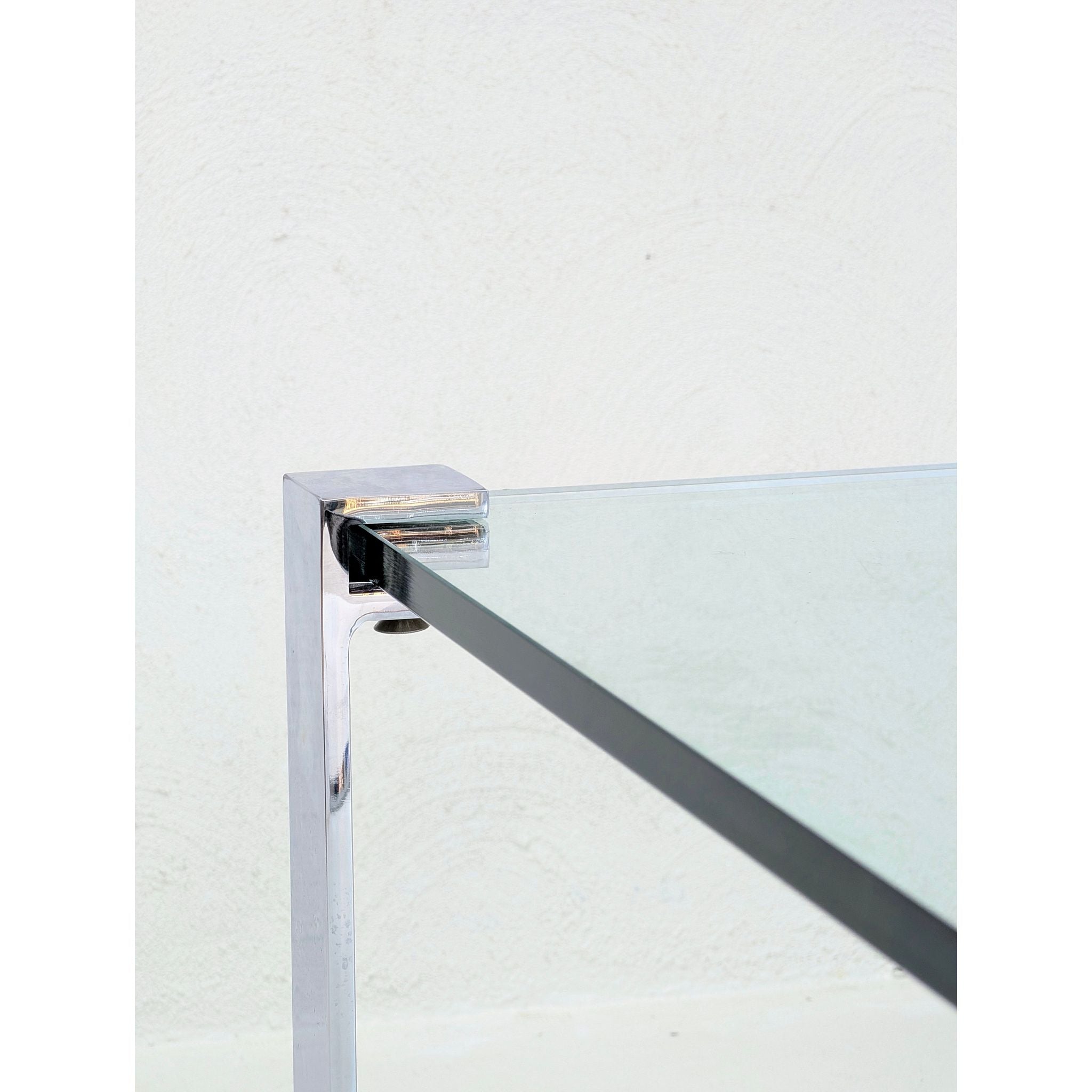 In very good vintage condition. The chrome frame is bright and highly reflective with only light signs of use consistent with age. The 20mm glass top has recently undergone a professional refinish, providing perfectly polished edges to both the top and bottom sides. The glass is excellent, free from major chips or distracting scratches.