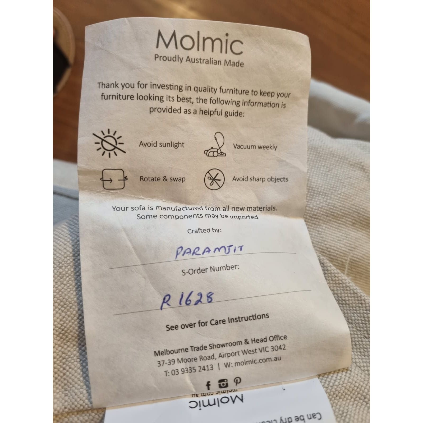 Beautiful high-quality designer sofa by Molmic, one of Australia’s most respected furniture makers. Purchased through Sofa & Soul in 2021, this sofa is in excellent structural condition and has been carefully maintained.