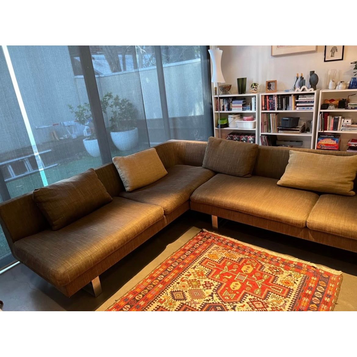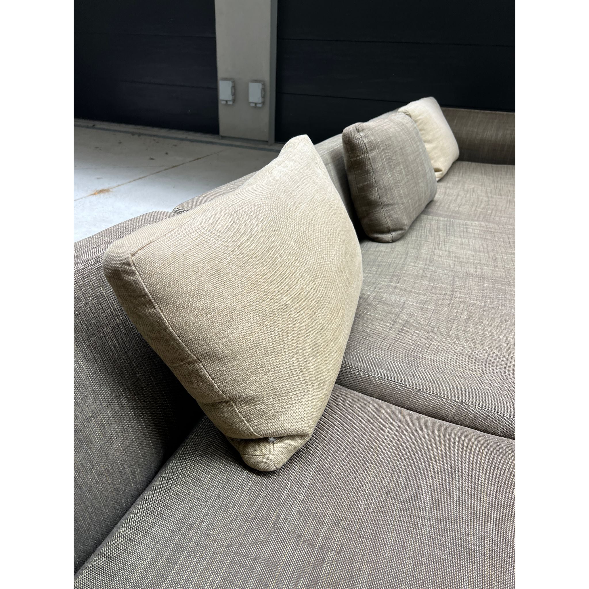 The 801 Sofa series is a deep seat with a moulded foam back. It combines modern clean lines on the exterior with an organic form on the inside. The legs come as cast aluminium. The sofa we have on offer is upholstered in
