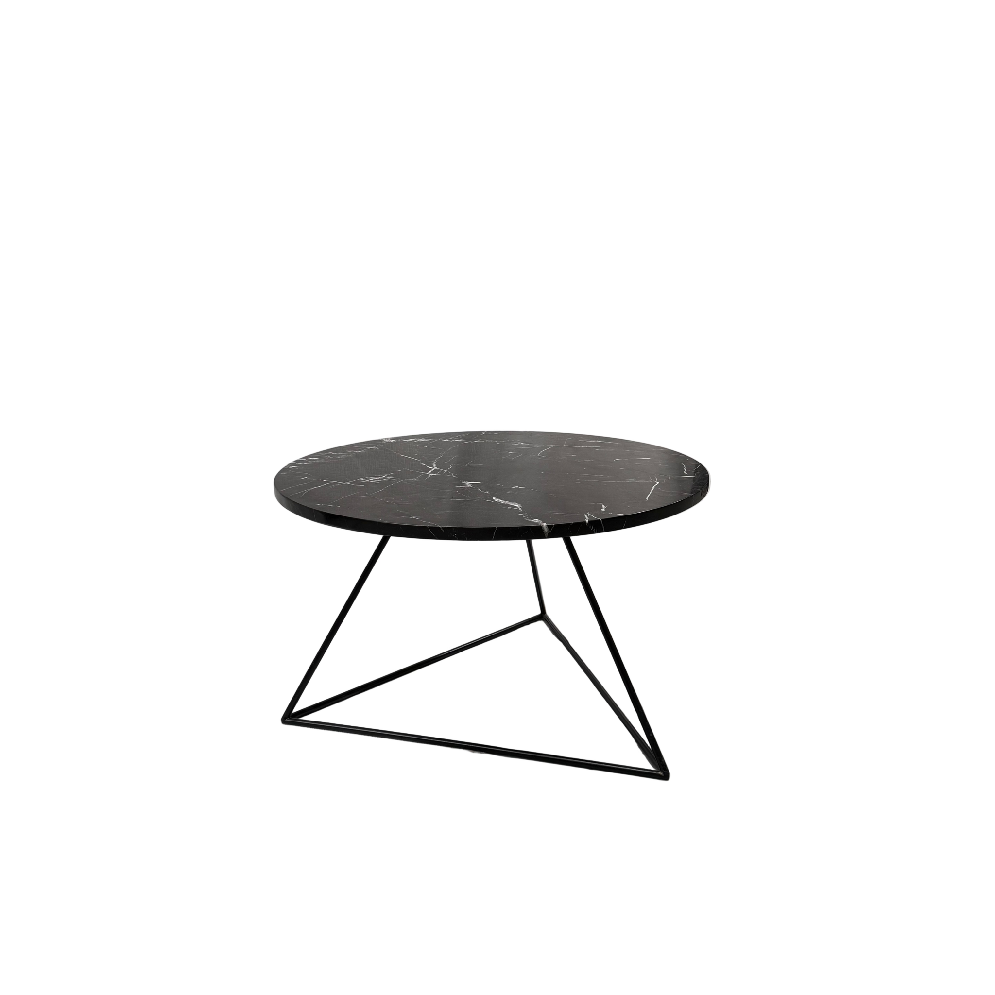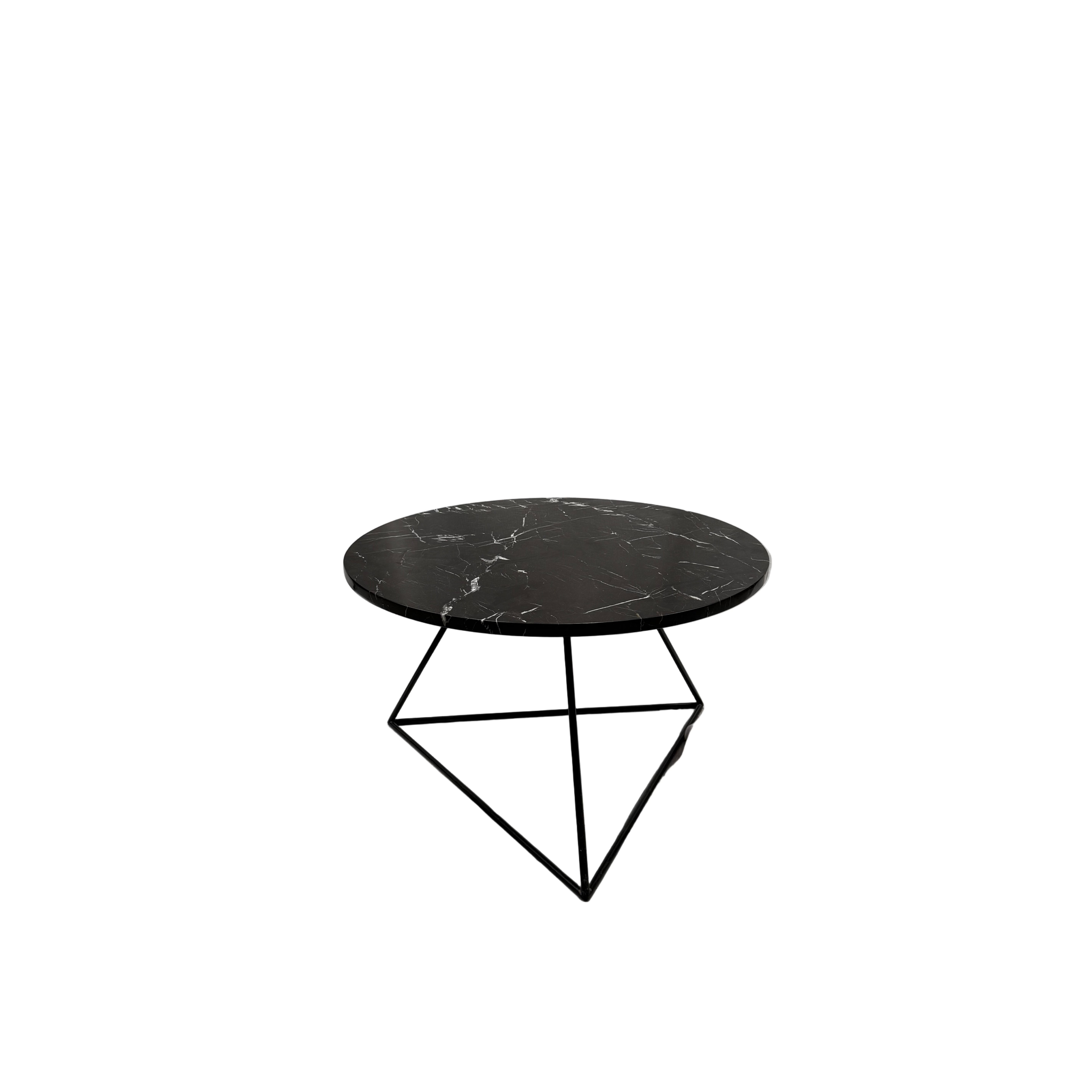 Black Marble Top Coffee Table with Geometric Metal Leg This striking coffee table combines timeless elegance with contemporary design. The luxurious black marble top provides a sophisticated surface that resists staining and develops a unique patina over time, while the geometric metal leg offers structural integrity and visual interest. Perfect for modern and transitional interiors, this piece serves as both a functional surface and a statement accent. The contrast between the cool marble and industrial metalwork creates a balanced aesthetic that complements various décor styles. An investment piece that anchors your living space with understated refinement.
