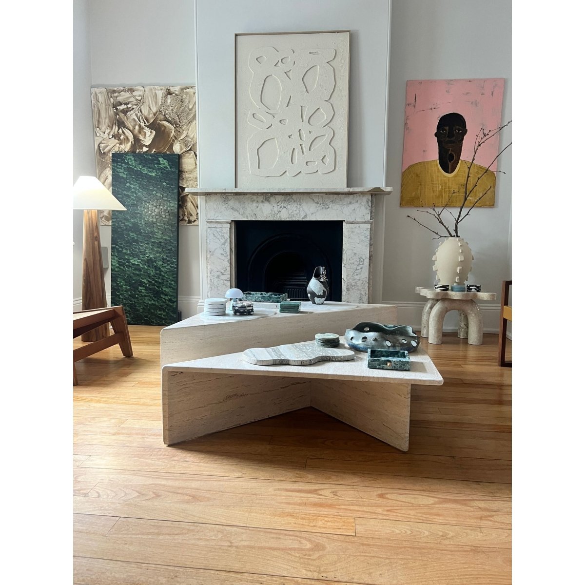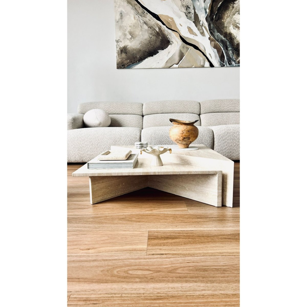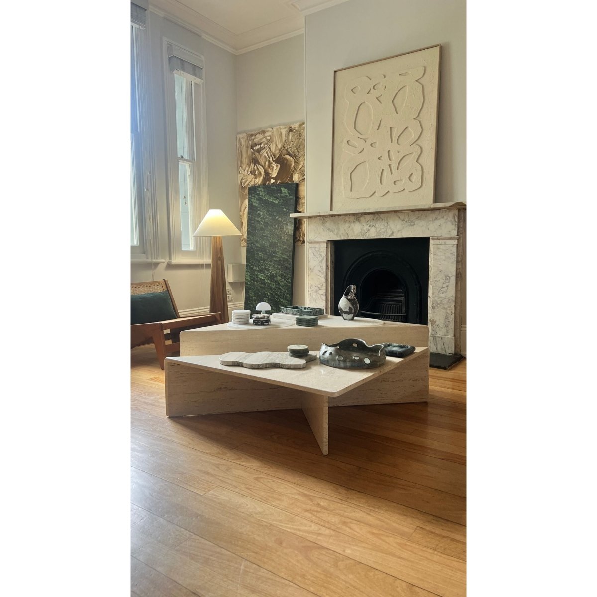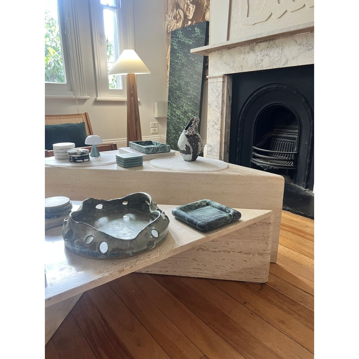 The iconic split level travertine coffee table displayed in the Italian issue of Vogue living, this table has proven to stand the test of time in both elegance and style.