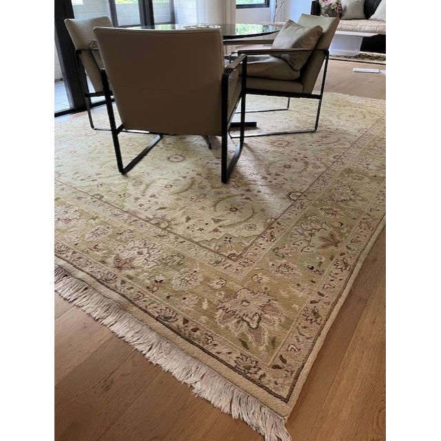 Quality large, wool genuine Persian Rug. Neutral tones suitable for a wide variety of decors. Fringe on the shorter side. Dimensions: 243 x 310cm.