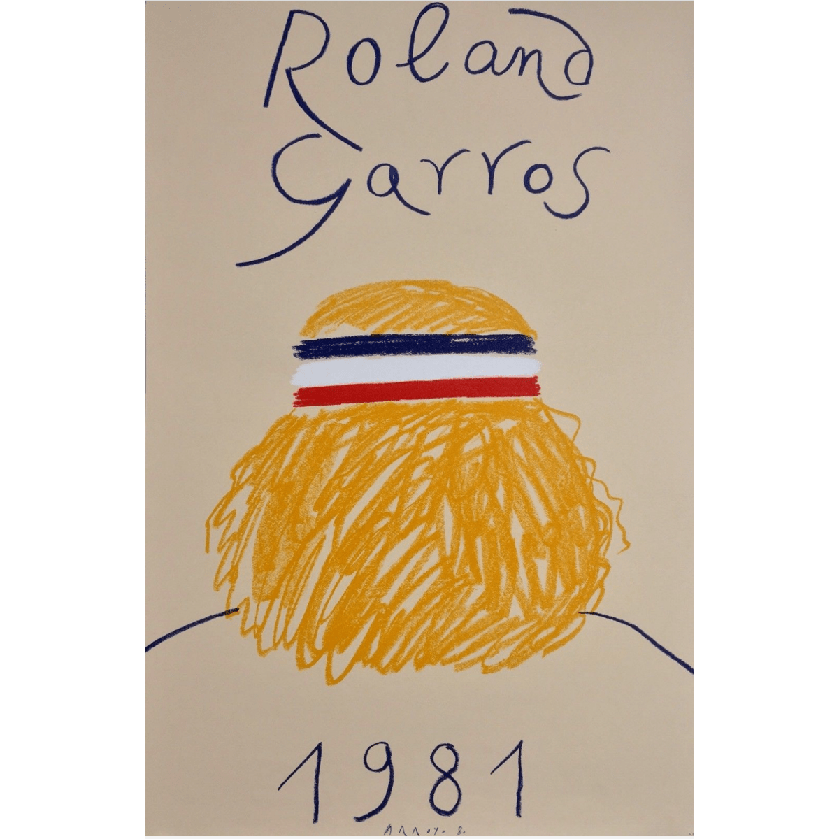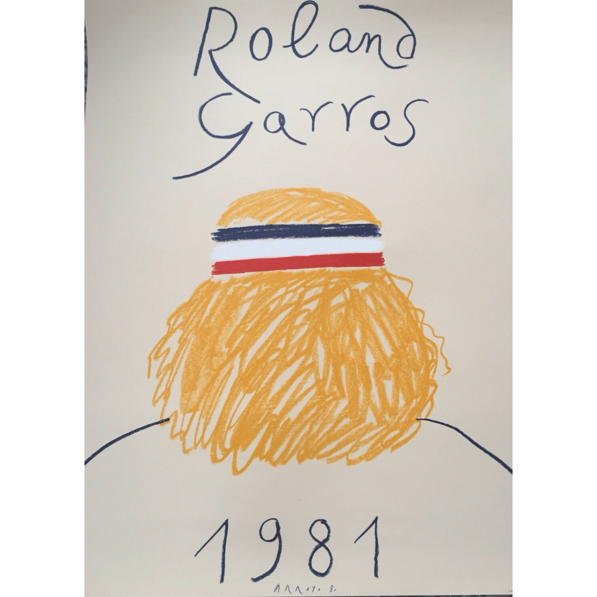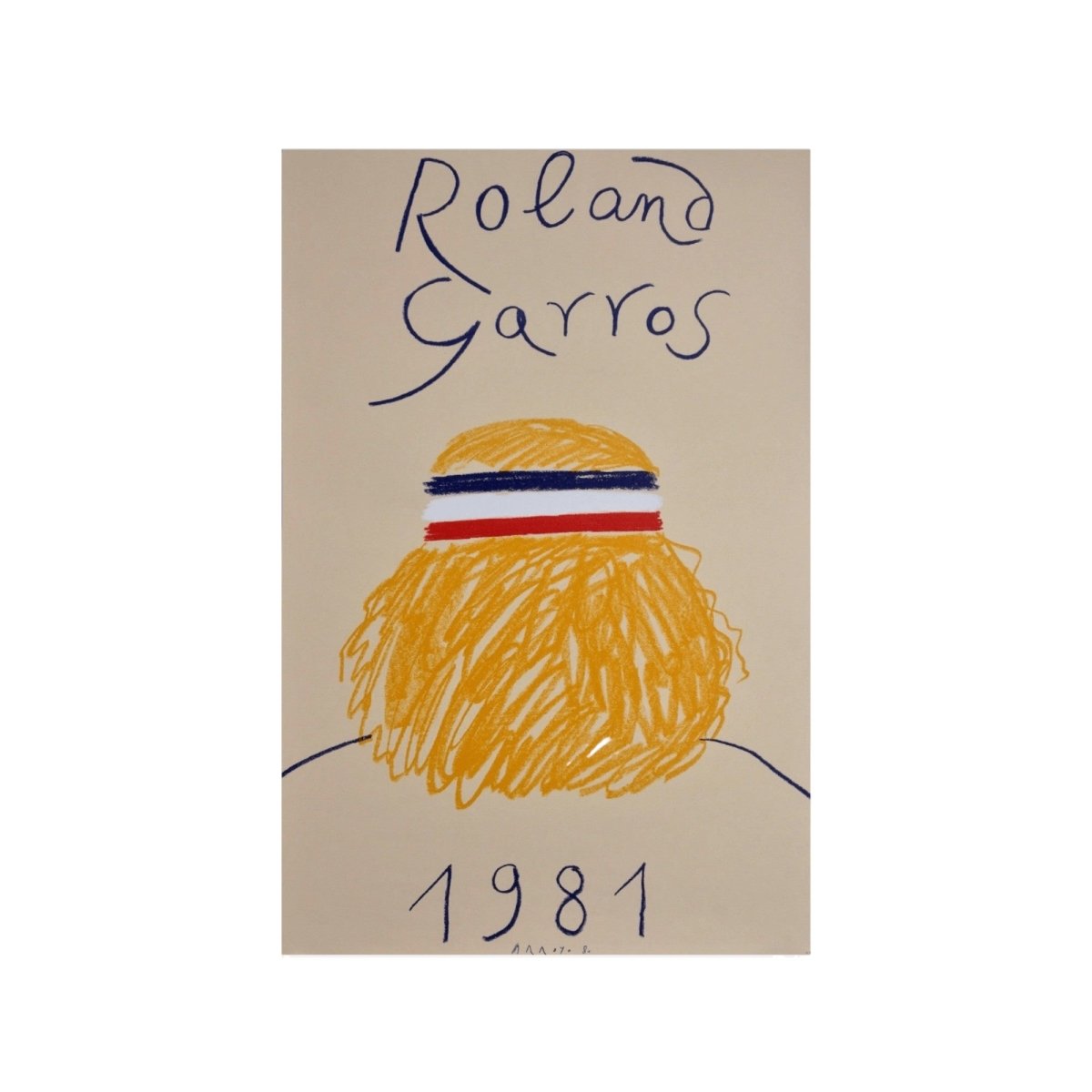 1981 Roland Garros French Open Tennis Poster by Eduardo Arroyo. Original 1981 promotional poster for the French Open at Roland Garros. Freehand illustration design of Bjorn Borg by Eduardo Arroyo.