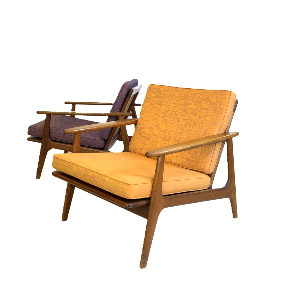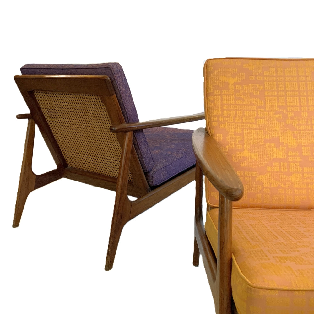 Parker Low Lounge with Rattan Back. Pair available (1 x orange, 1 x purple)