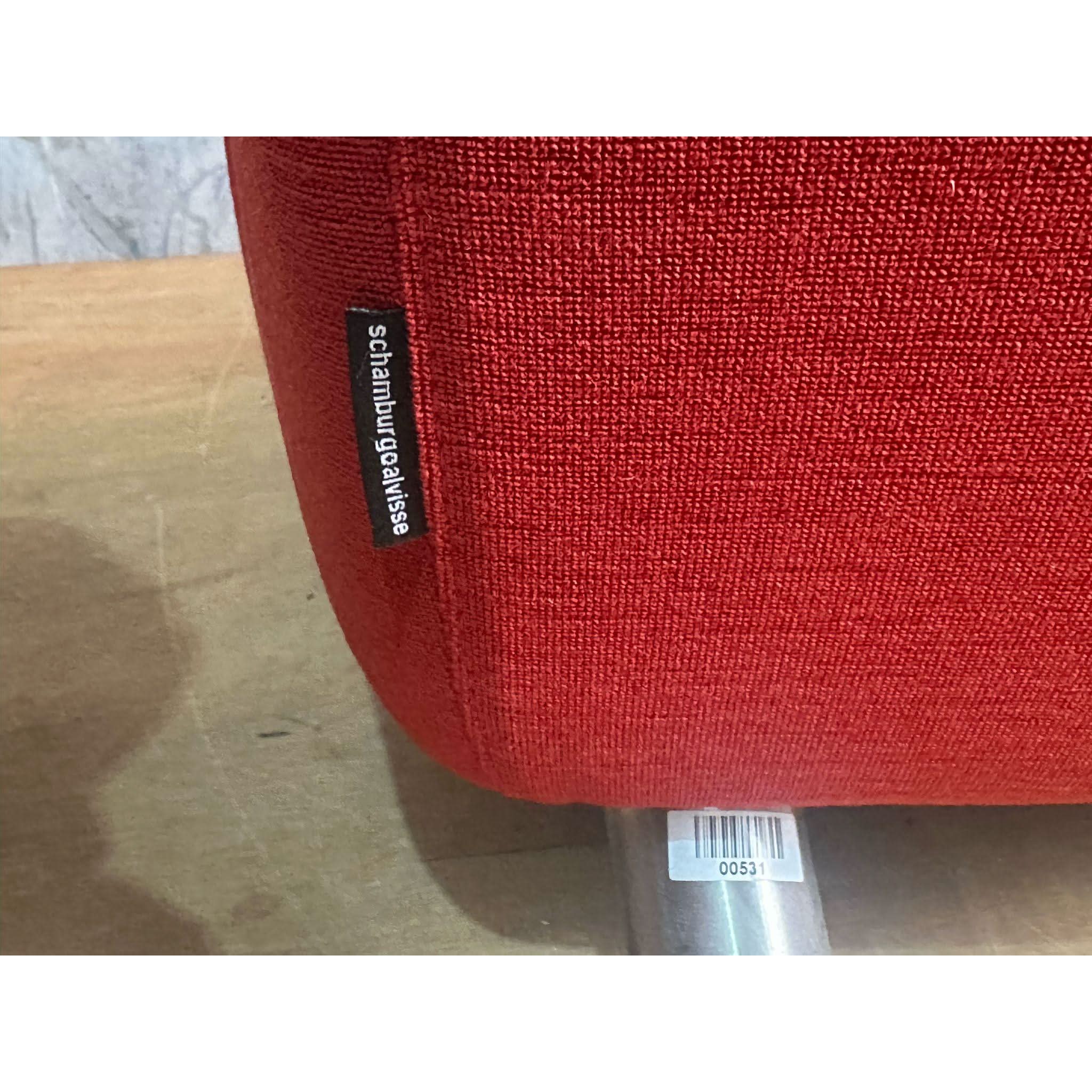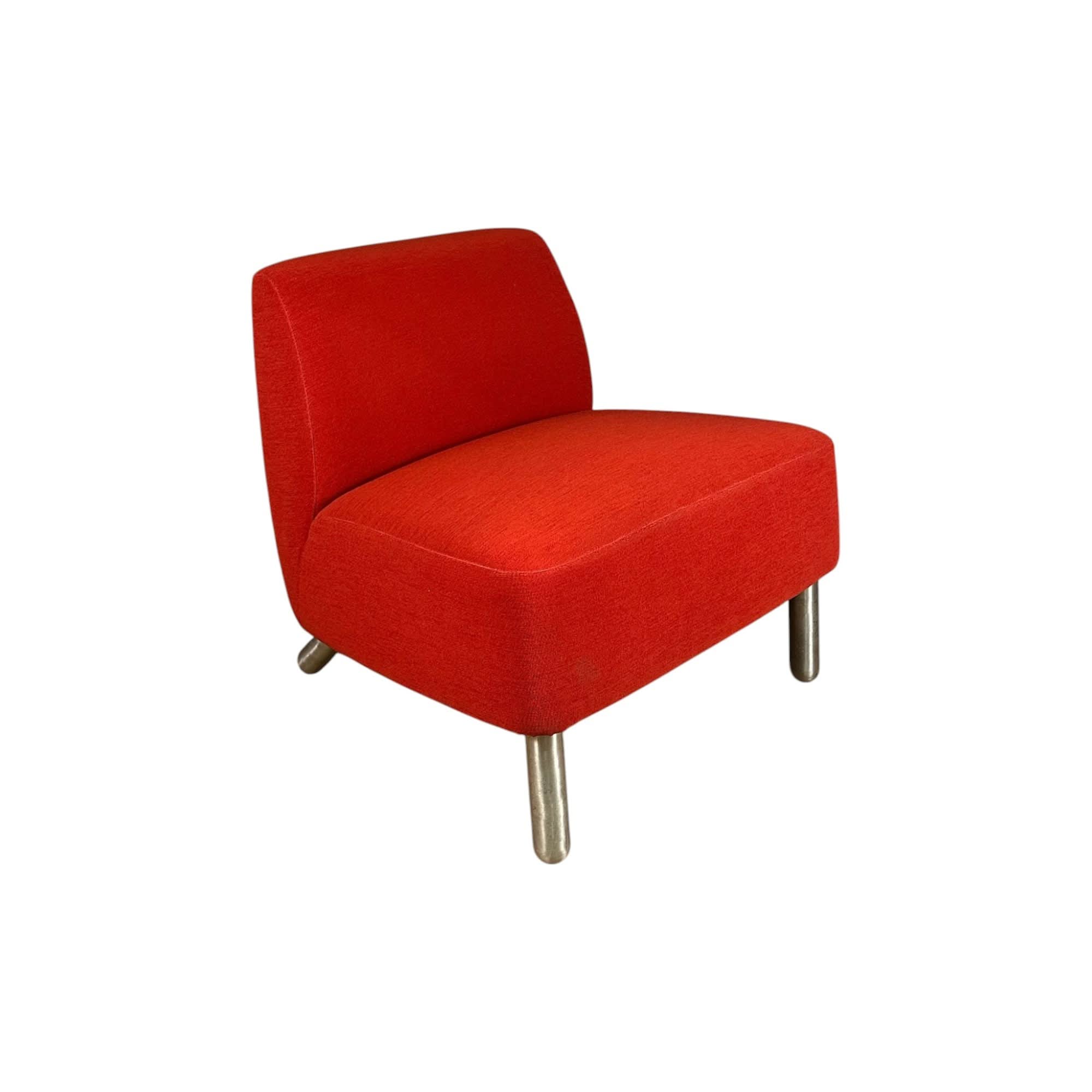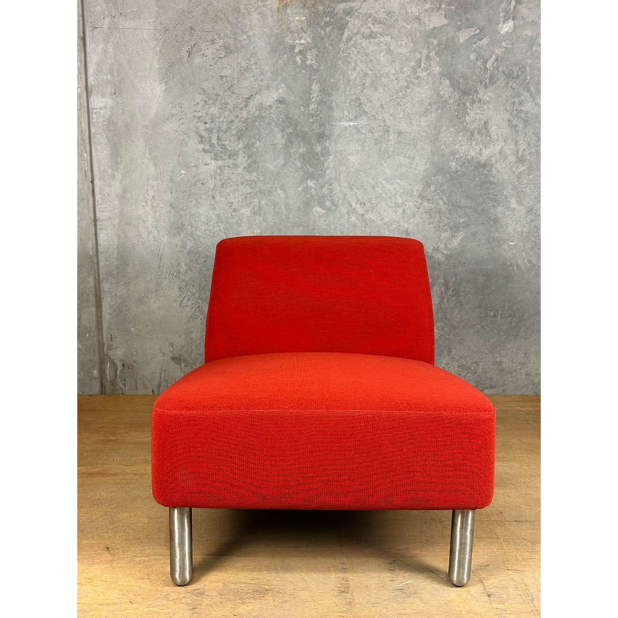 Enhance your space with these stylish lounge chairs by Schamburg + Alvisse, generously donated by a property stylist. Featuring clean lines, comfortable cushioning, and sturdy metal legs, they effortlessly combine modern Australian design with everyday functionality. The vibrant red upholstery is in pristine condition, adding a bold pop of colour to any room.