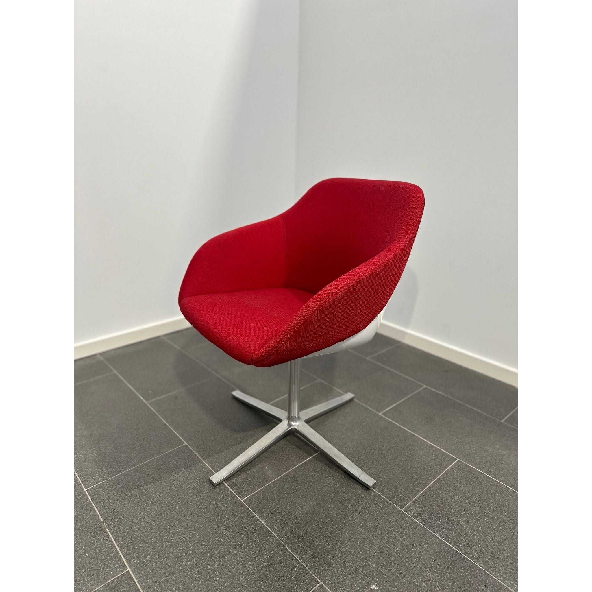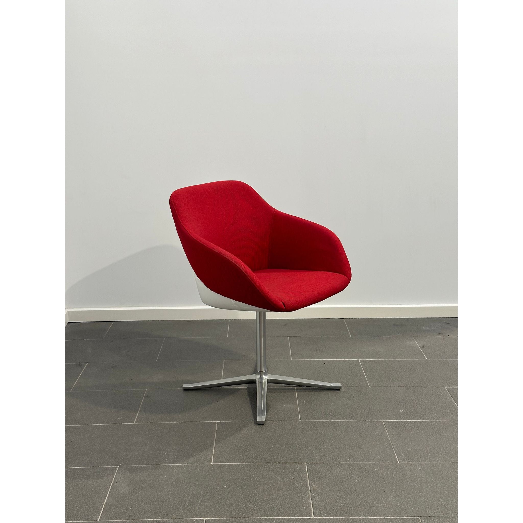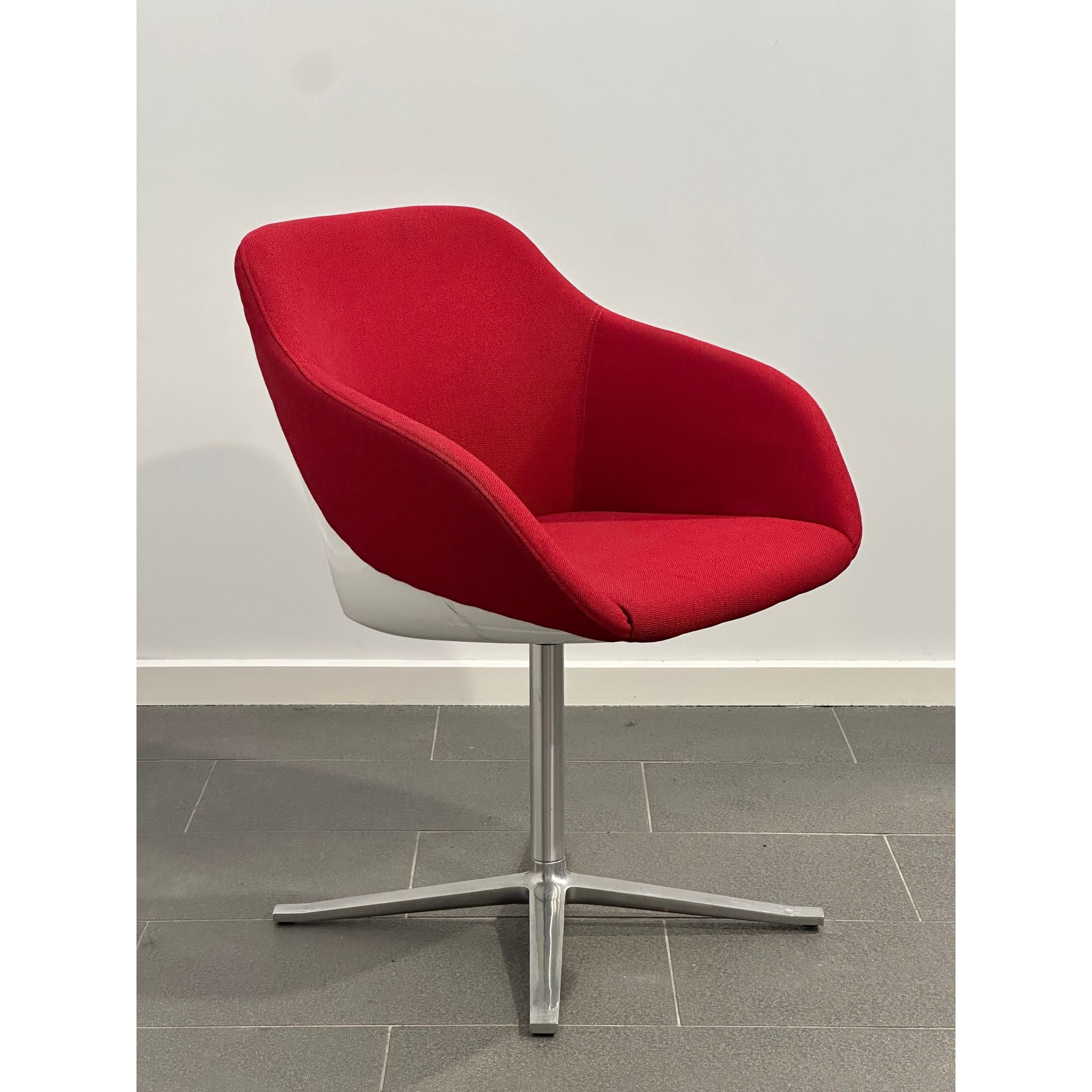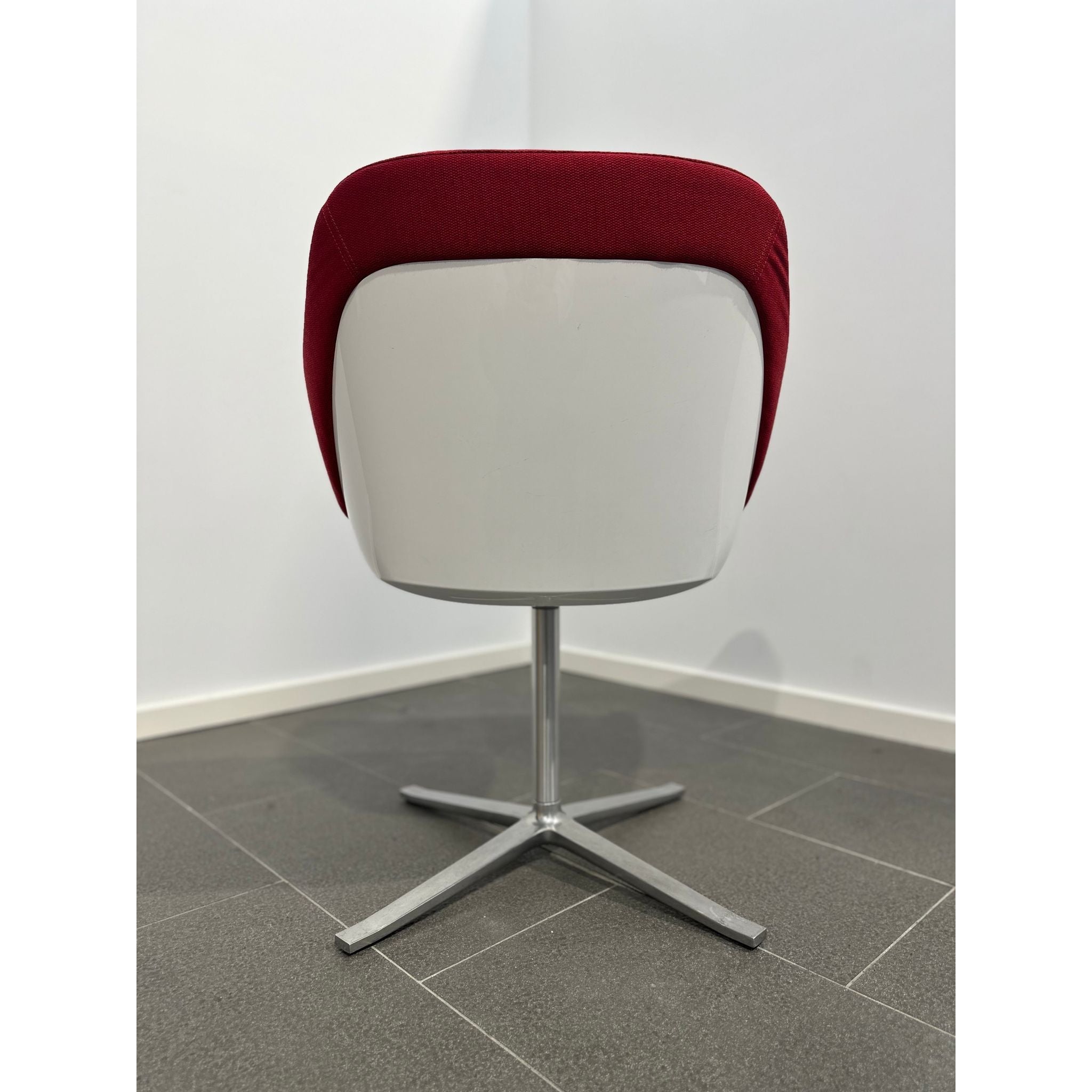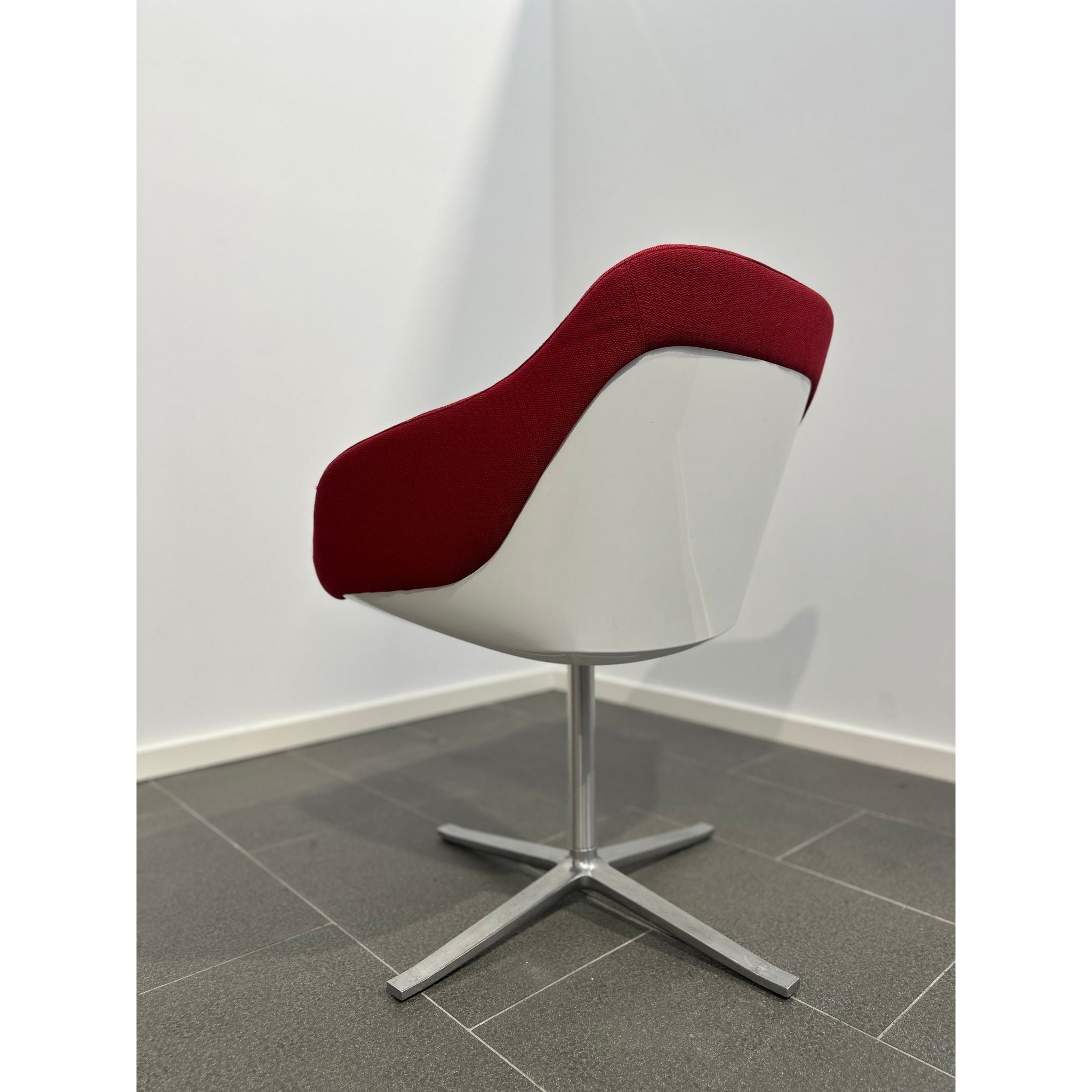 Outside a supportive shell, inside an invitingly comfortable seat. Easy to swivel on a base plate or star base, with black or white back shell and individual cover. This shell chair makes a special statement in a private or public space. Optionally with auto-return mechanism and castors.