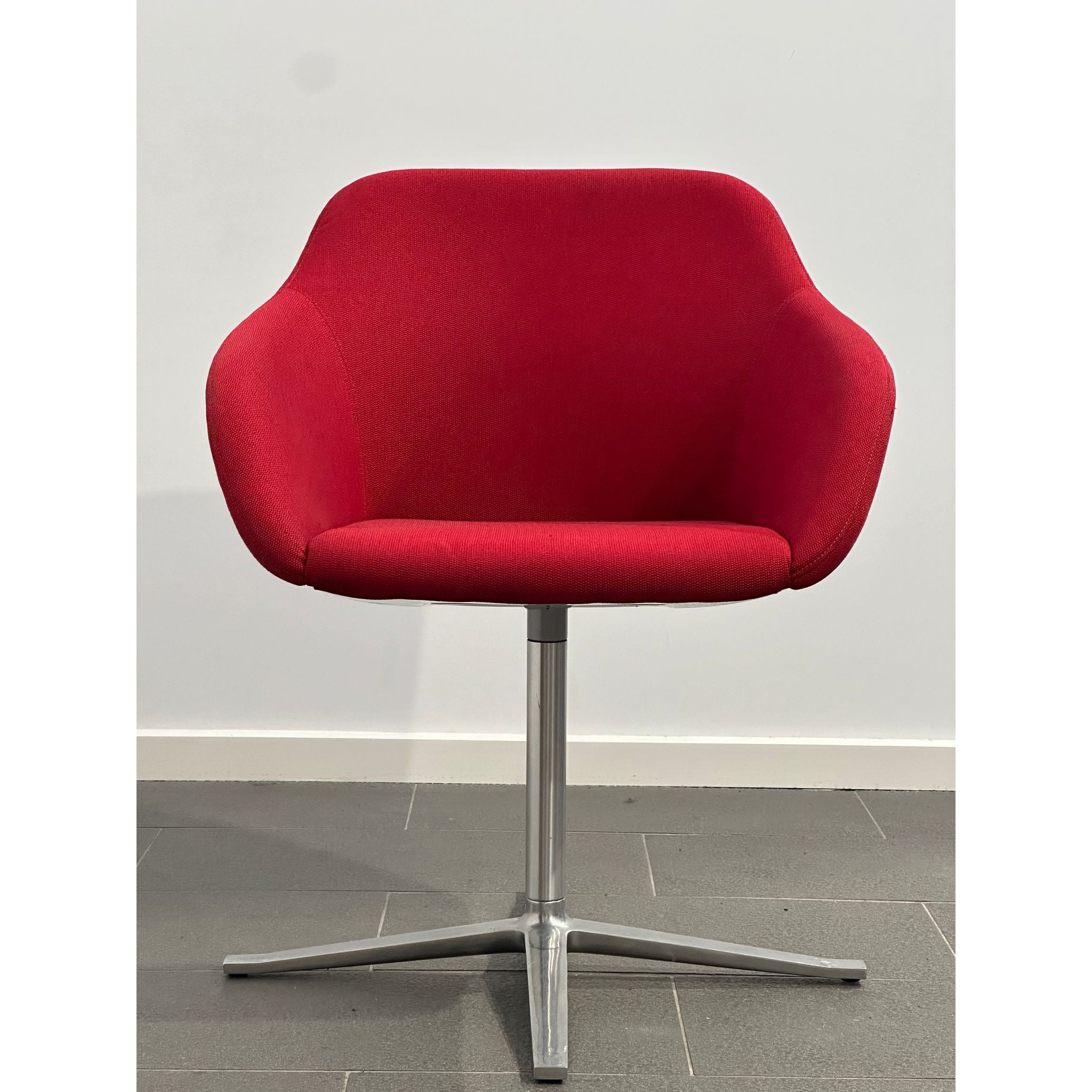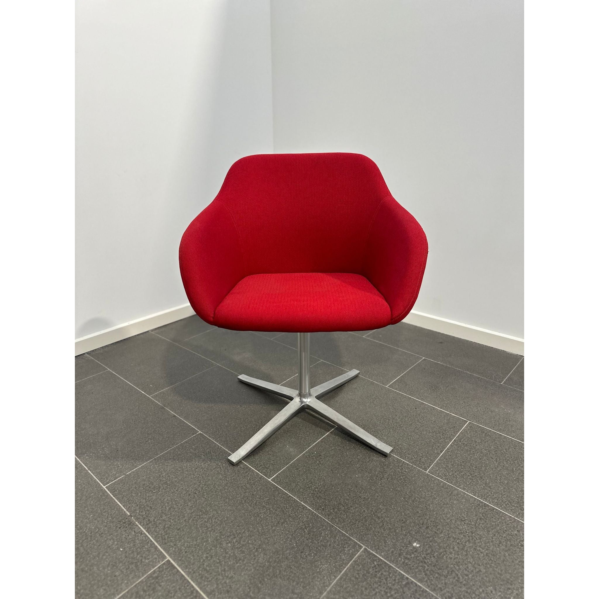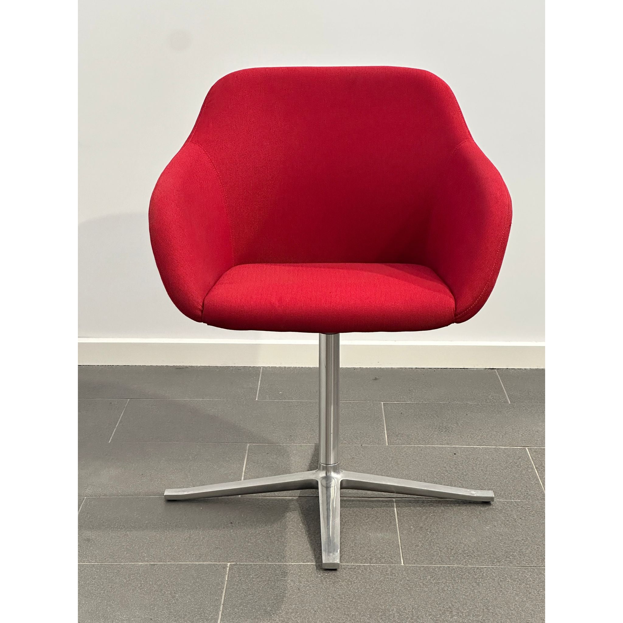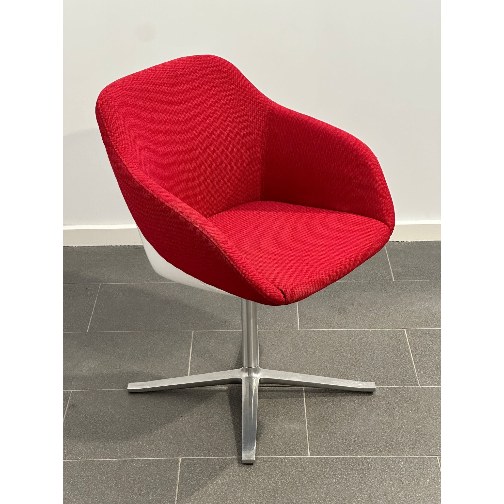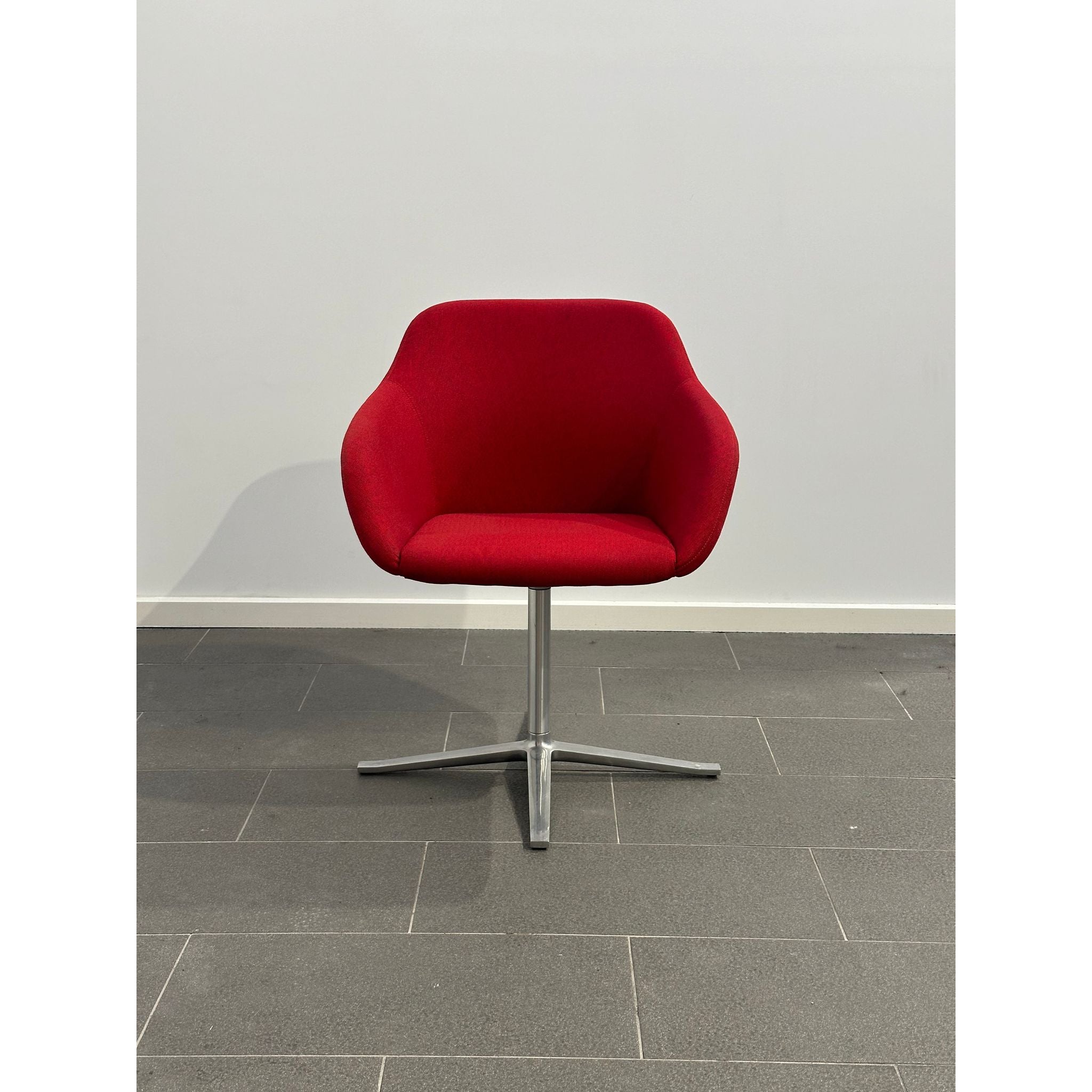 Outside a supportive shell, inside an invitingly comfortable seat. Easy to swivel on a base plate or star base, with black or white back shell and individual cover. This shell chair makes a special statement in a private or public space. Optionally with auto-return mechanism and castors.