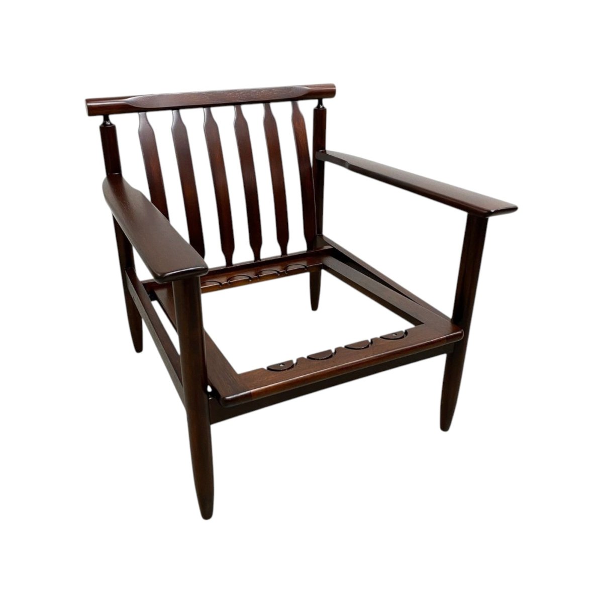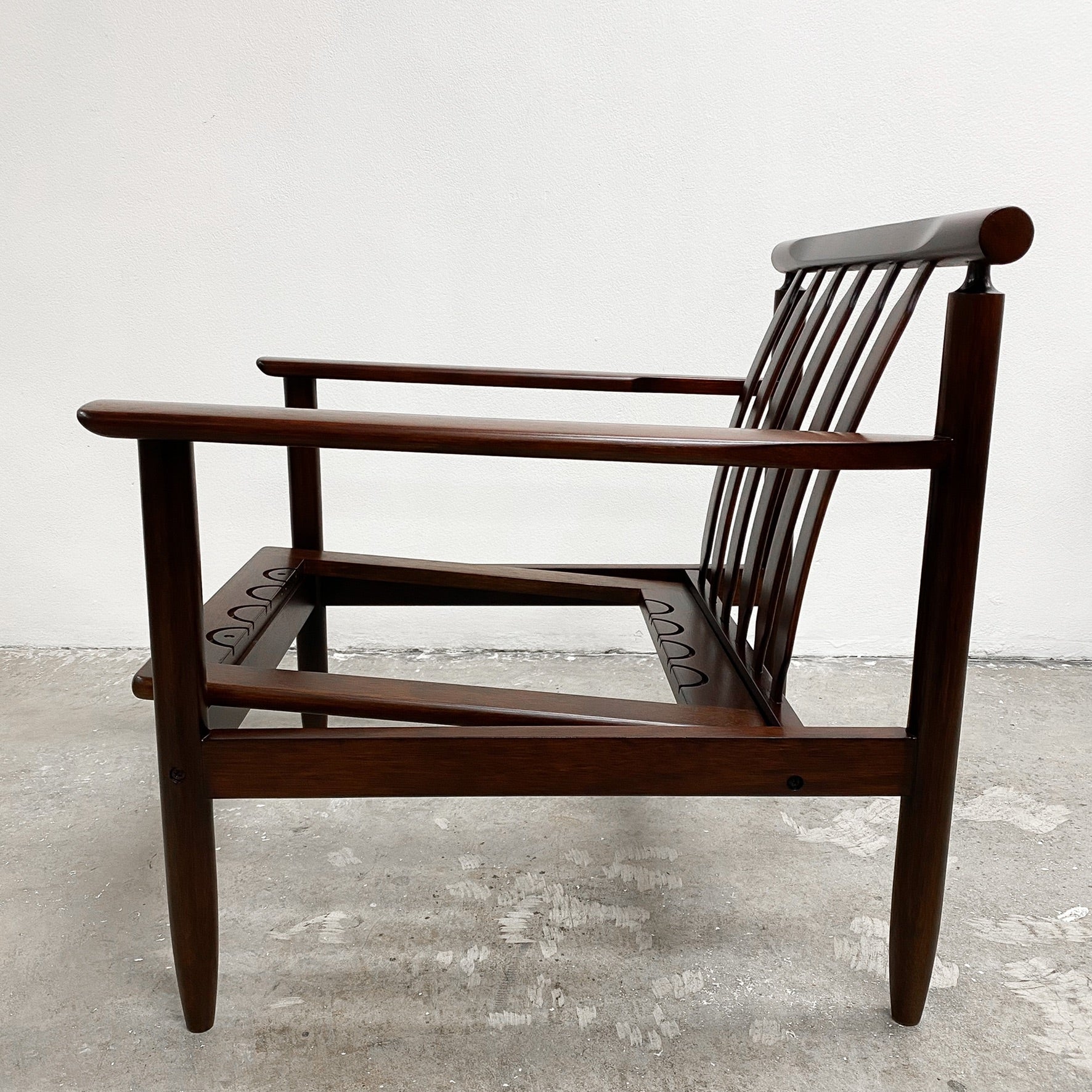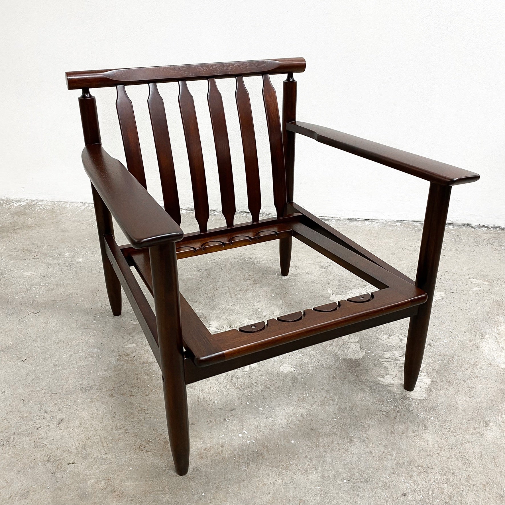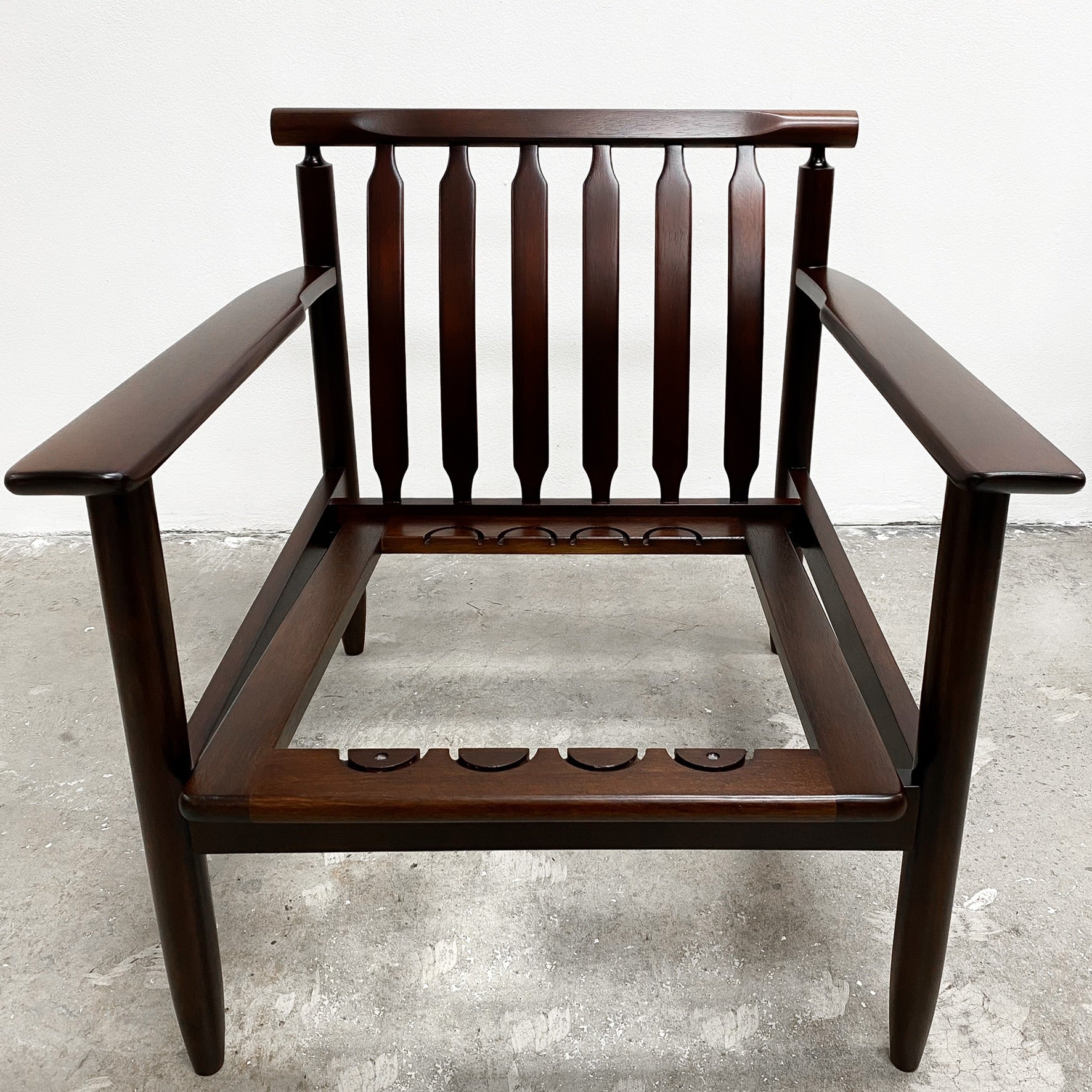 Absolutely gorgeous and beautifully made Mid century armchair just back from a full restoration. Price includes your choice of upholstery and new cushions.