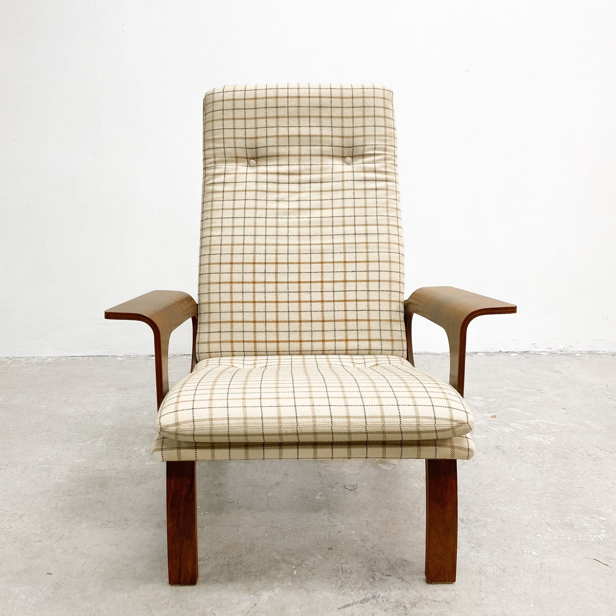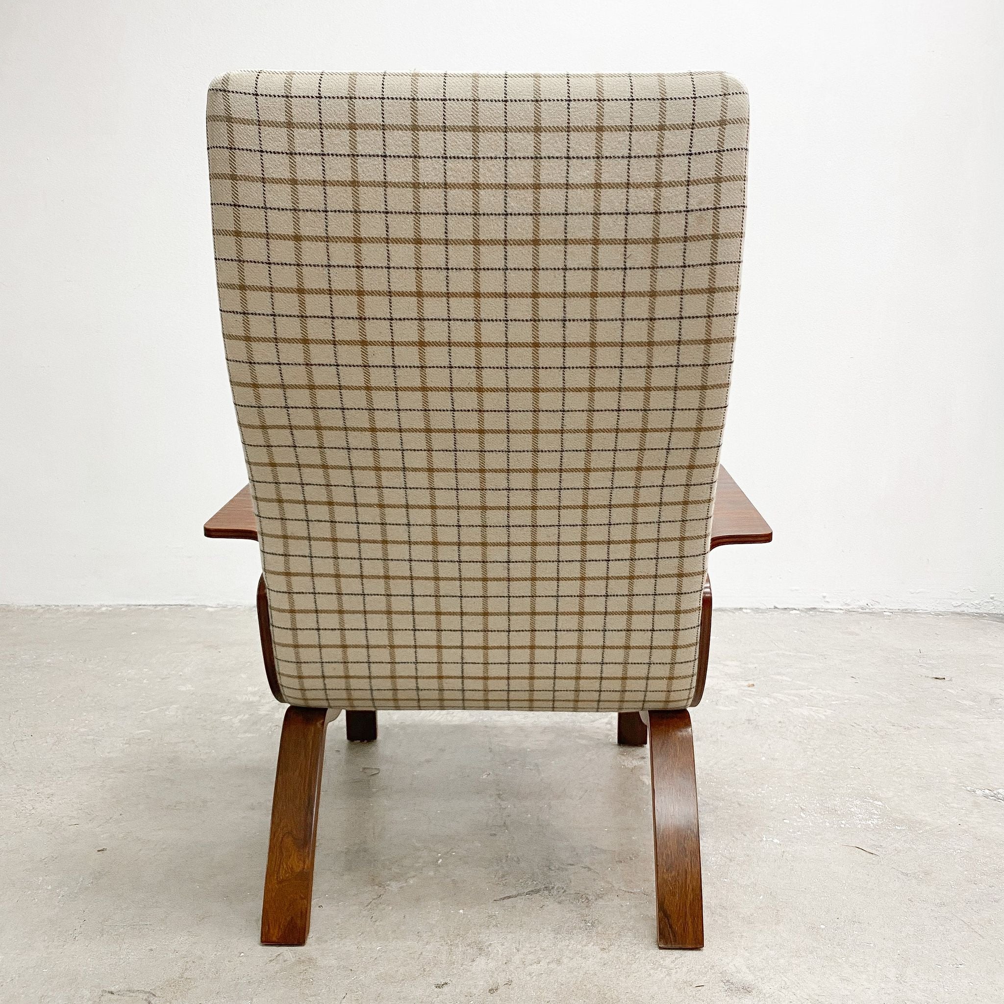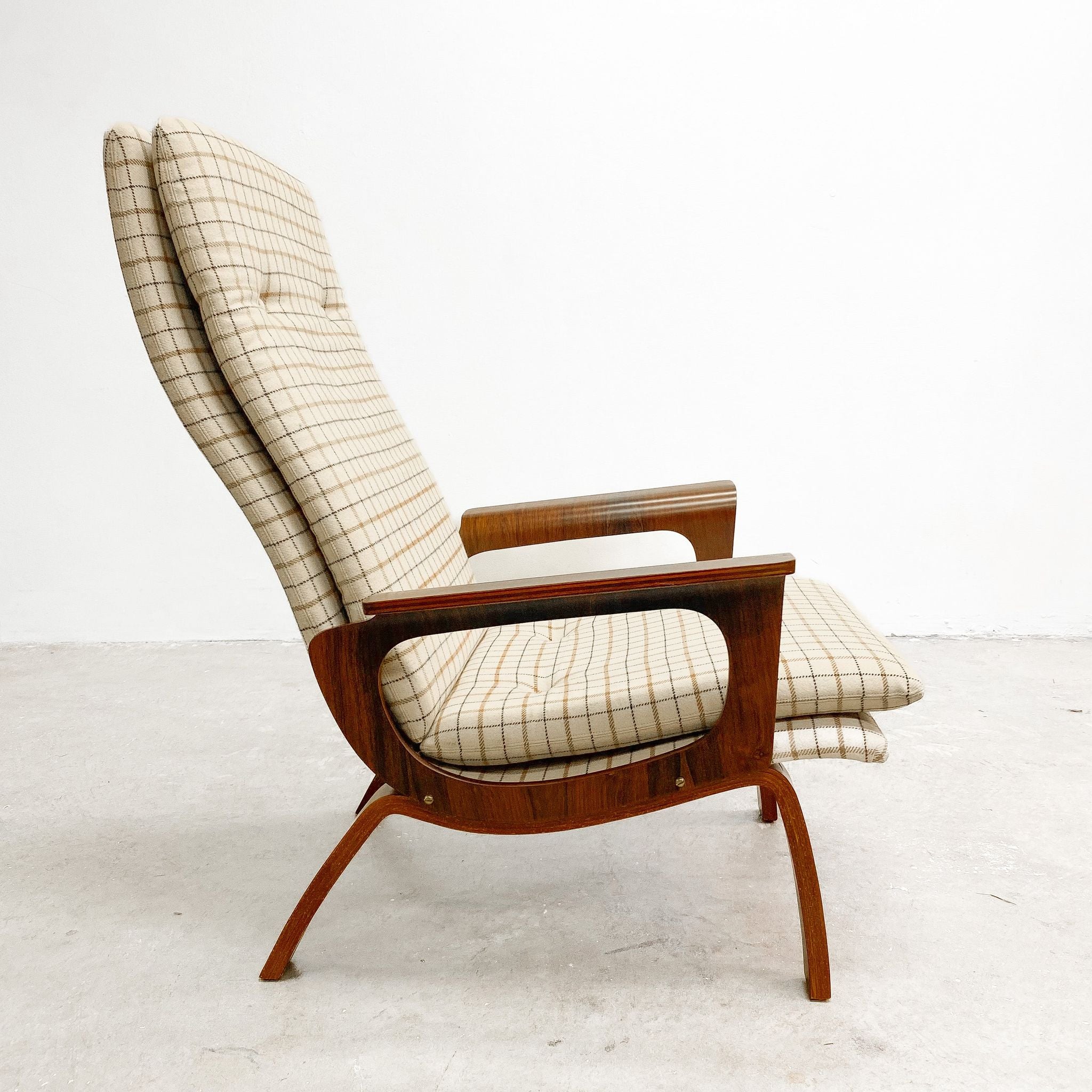 This unique and rare armchair showcases the beauty of Brazilian rosewood and bent plywood. A great example of Scandinavian mid century modern design .