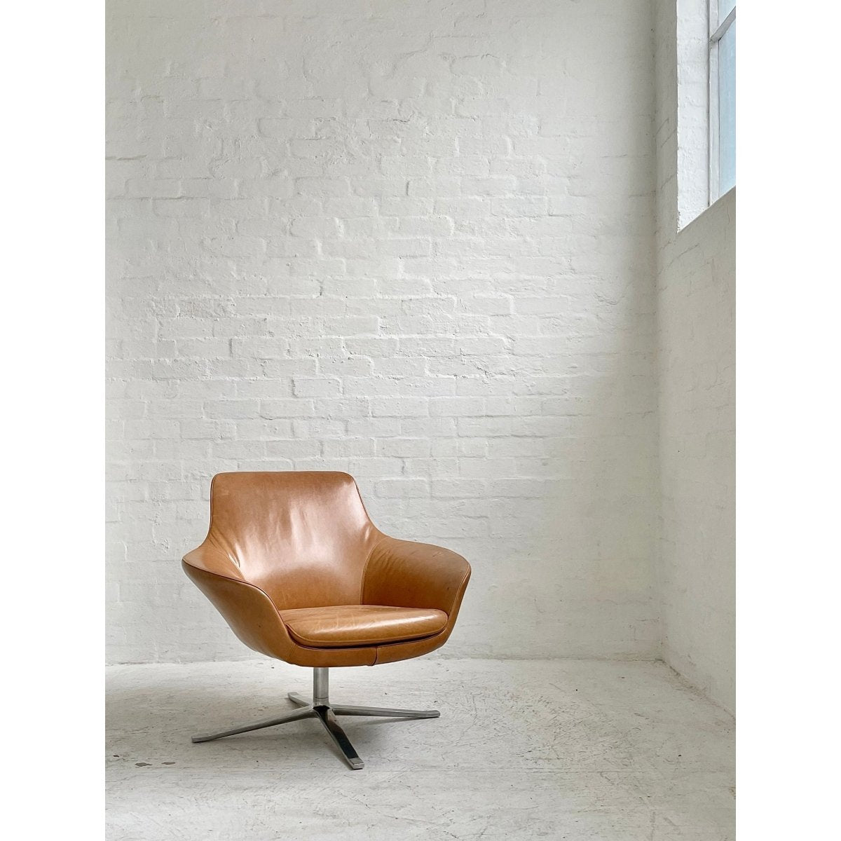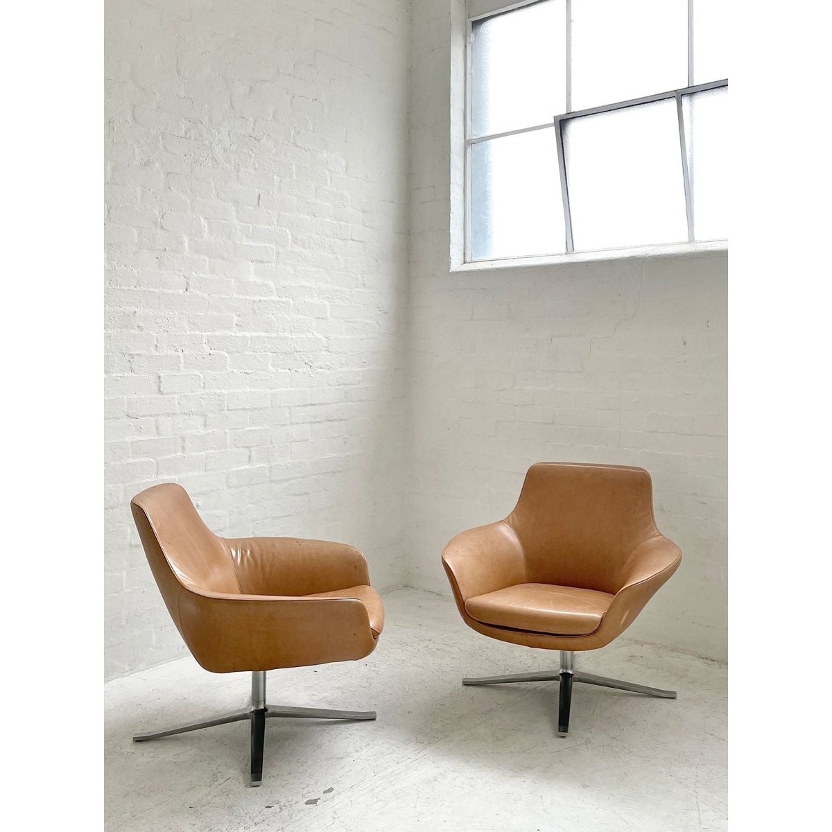 Classic bucket chair on 4-star swivel base. Upholstered in orange wool. Designed by Luke Pearson and Tom Lloyd and Produced by Walter Knoll, Germany. Four Available. Price is per chair.