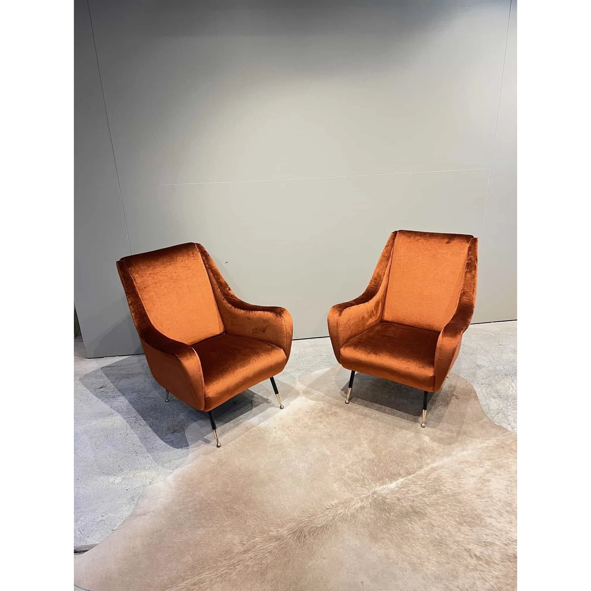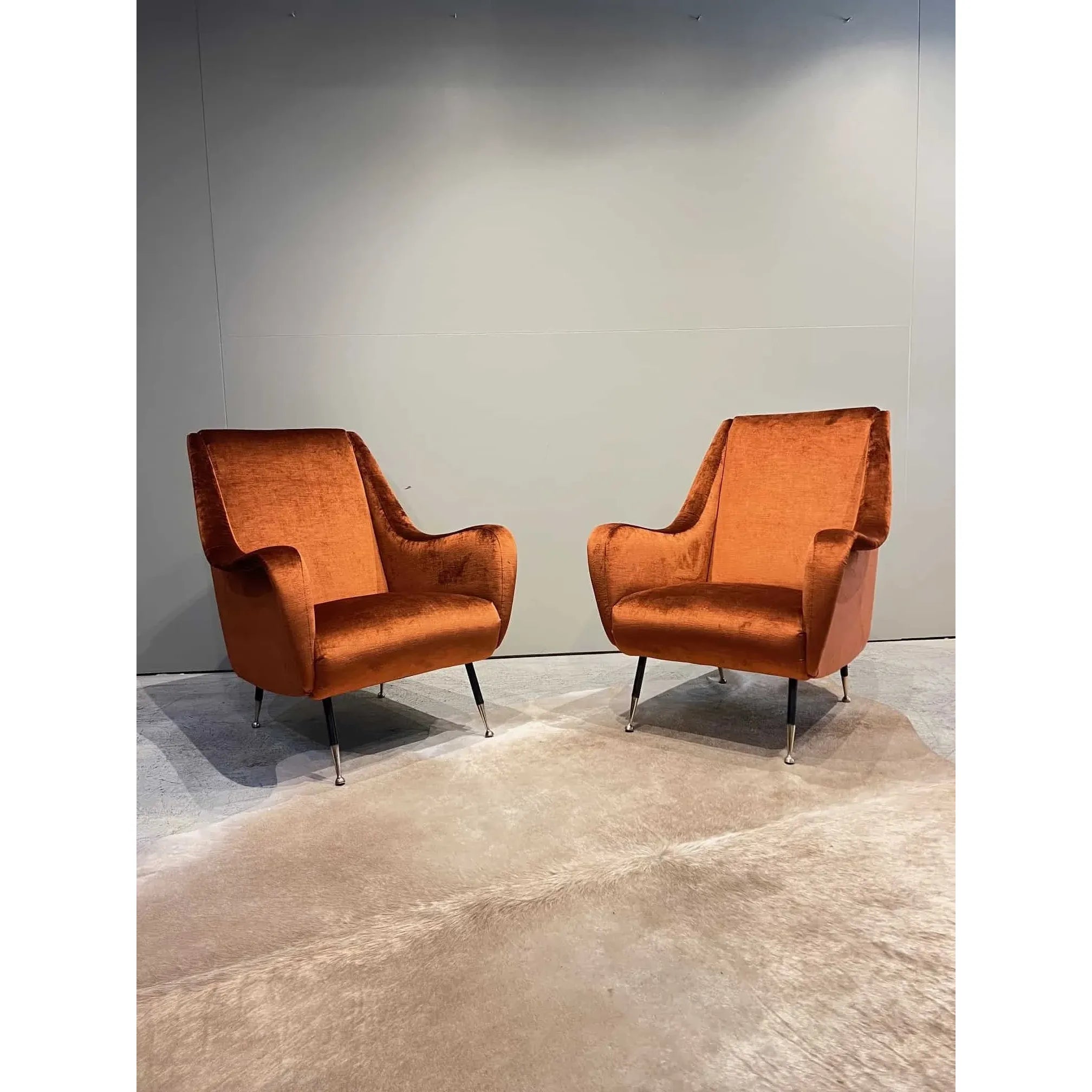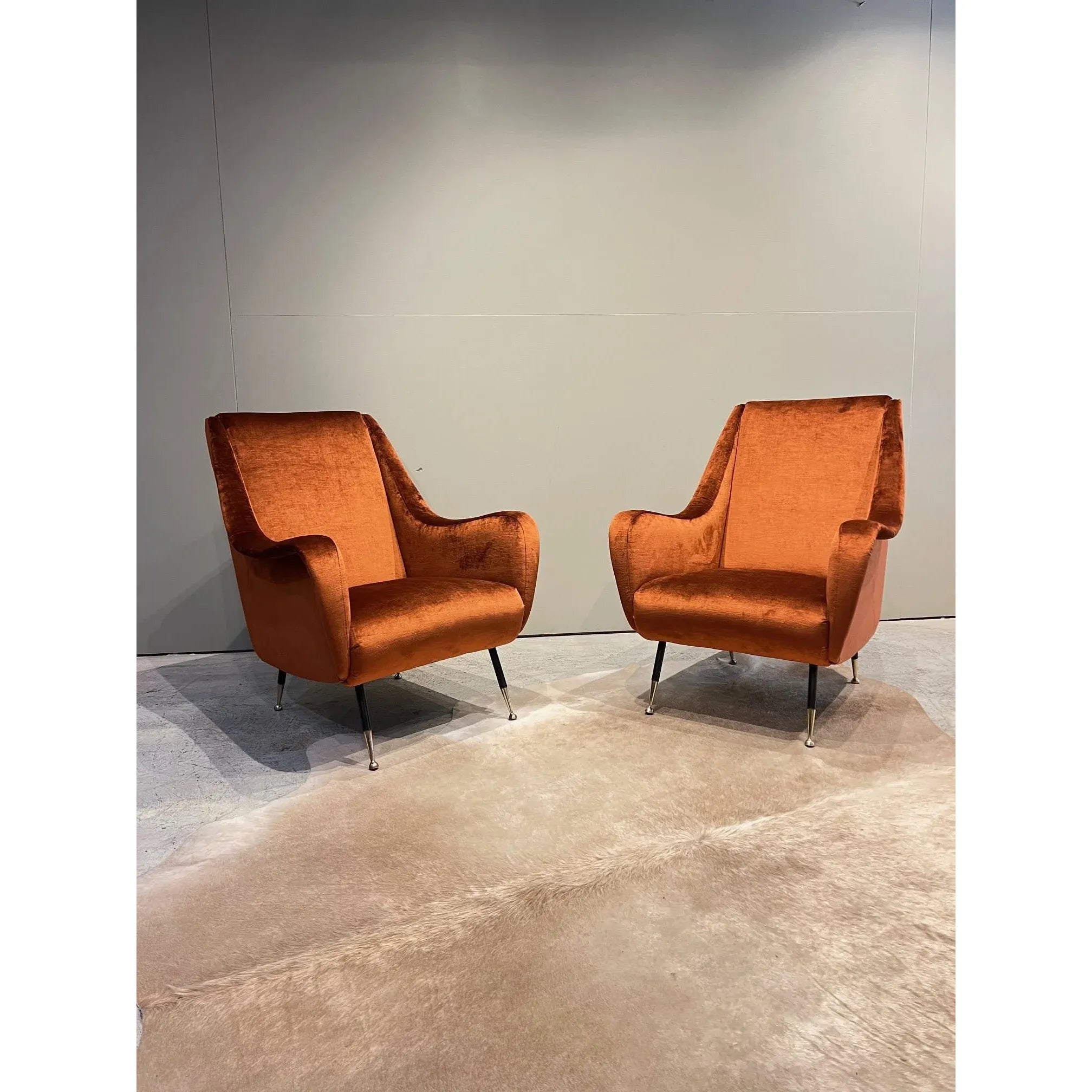 There really is something special about a pair of mid century modern, vintage lounge chairs. Newly upholstered lounge chairs in the style of Gigi Radice.