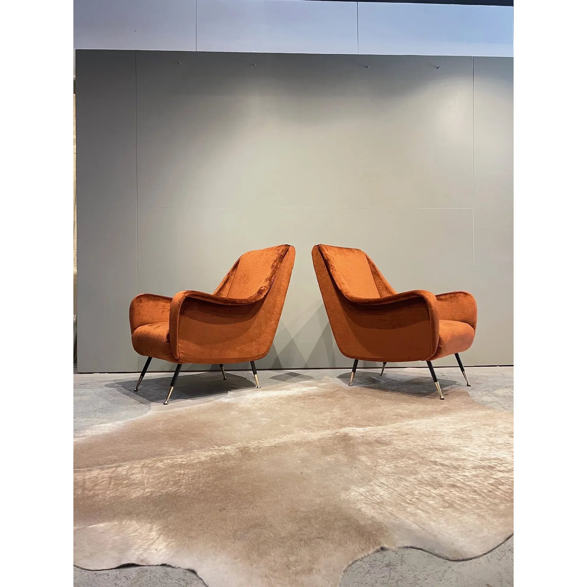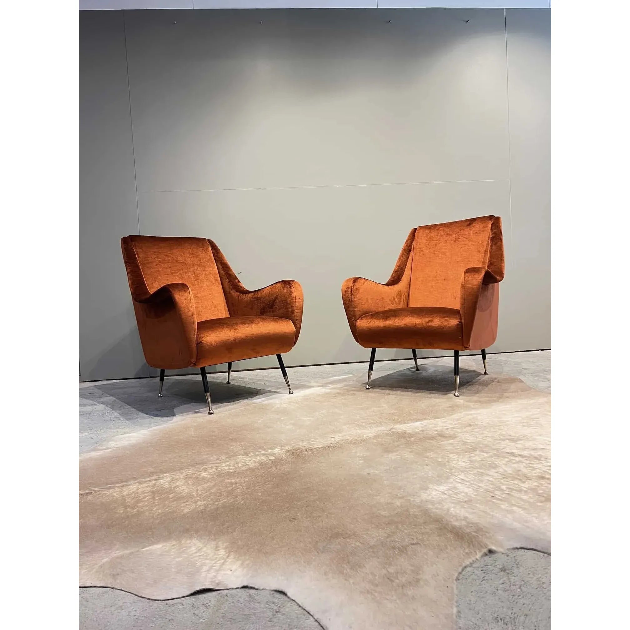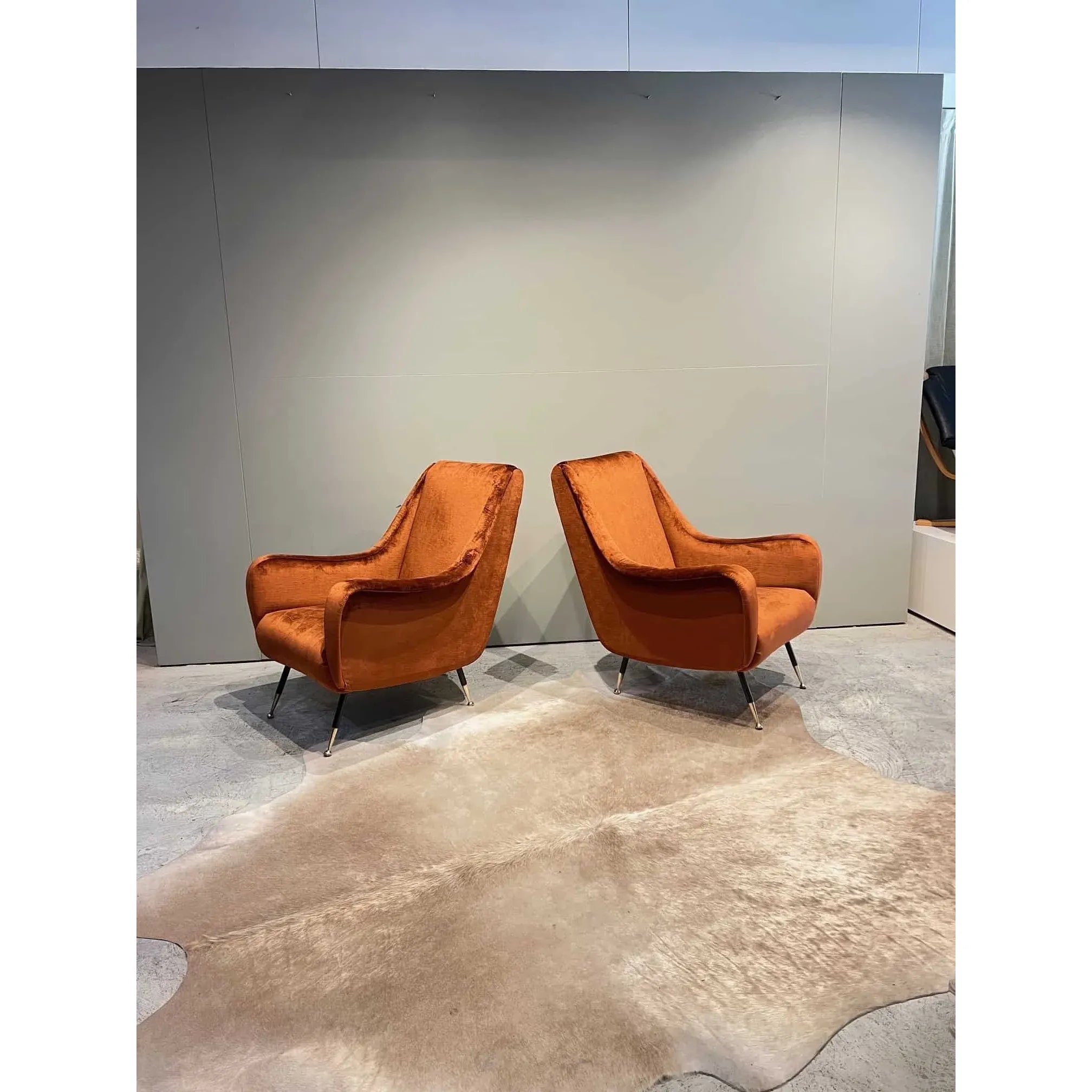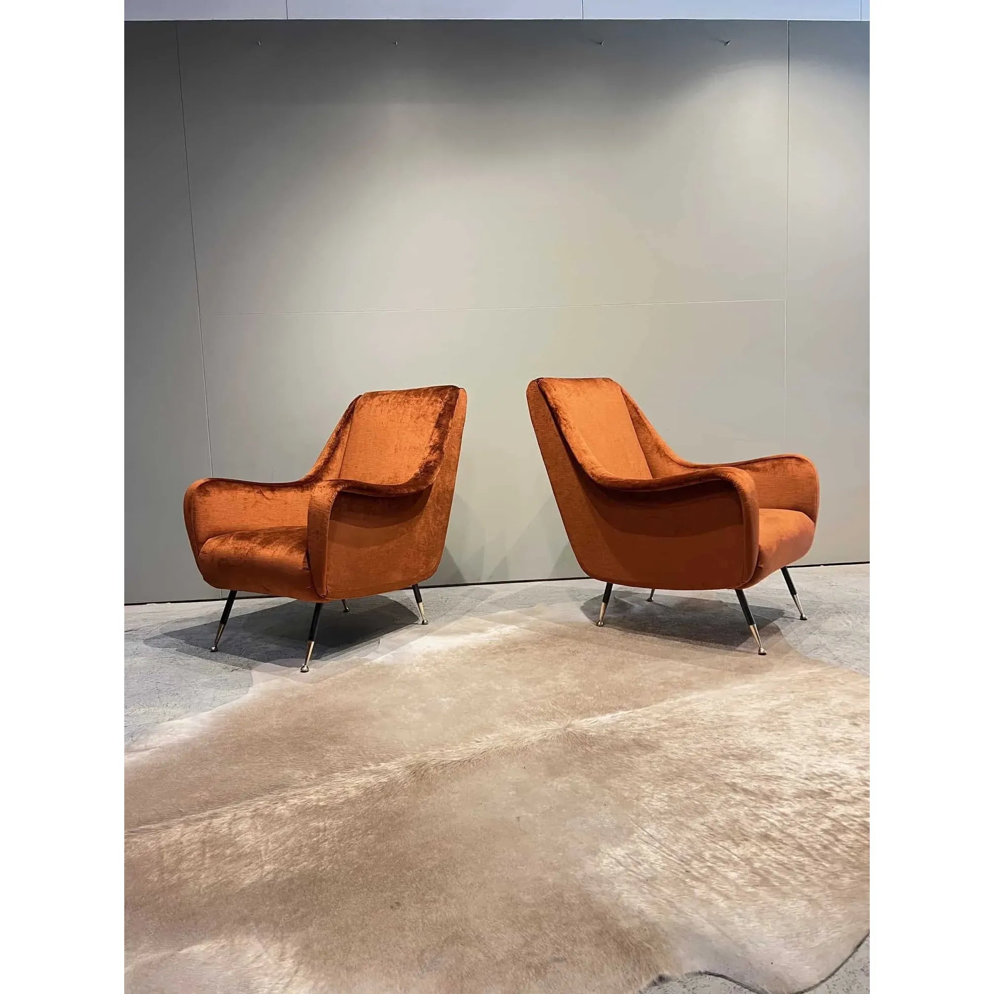 There really is something special about a pair of mid century modern, vintage lounge chairs. Newly upholstered lounge chairs in the style of Gigi Radice.