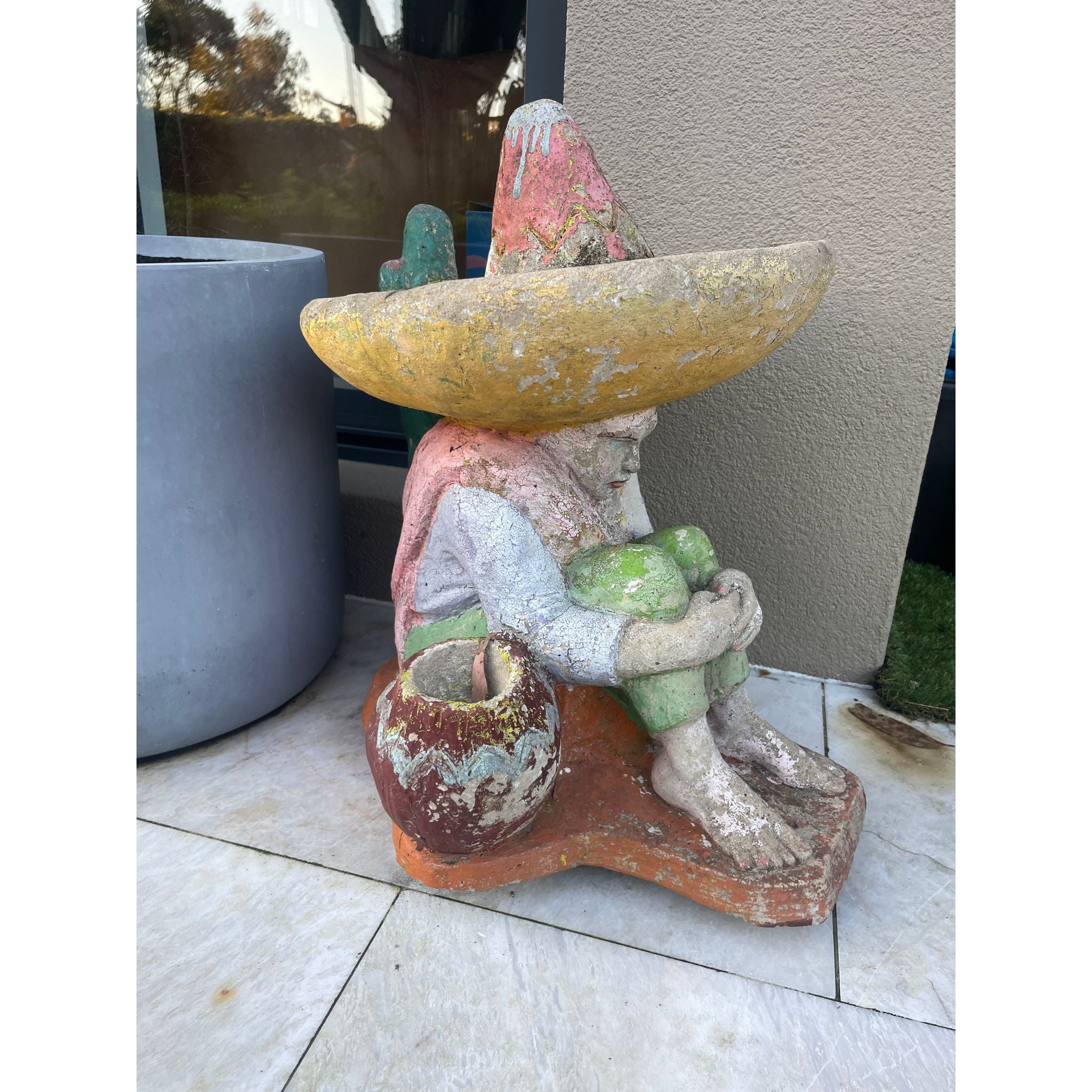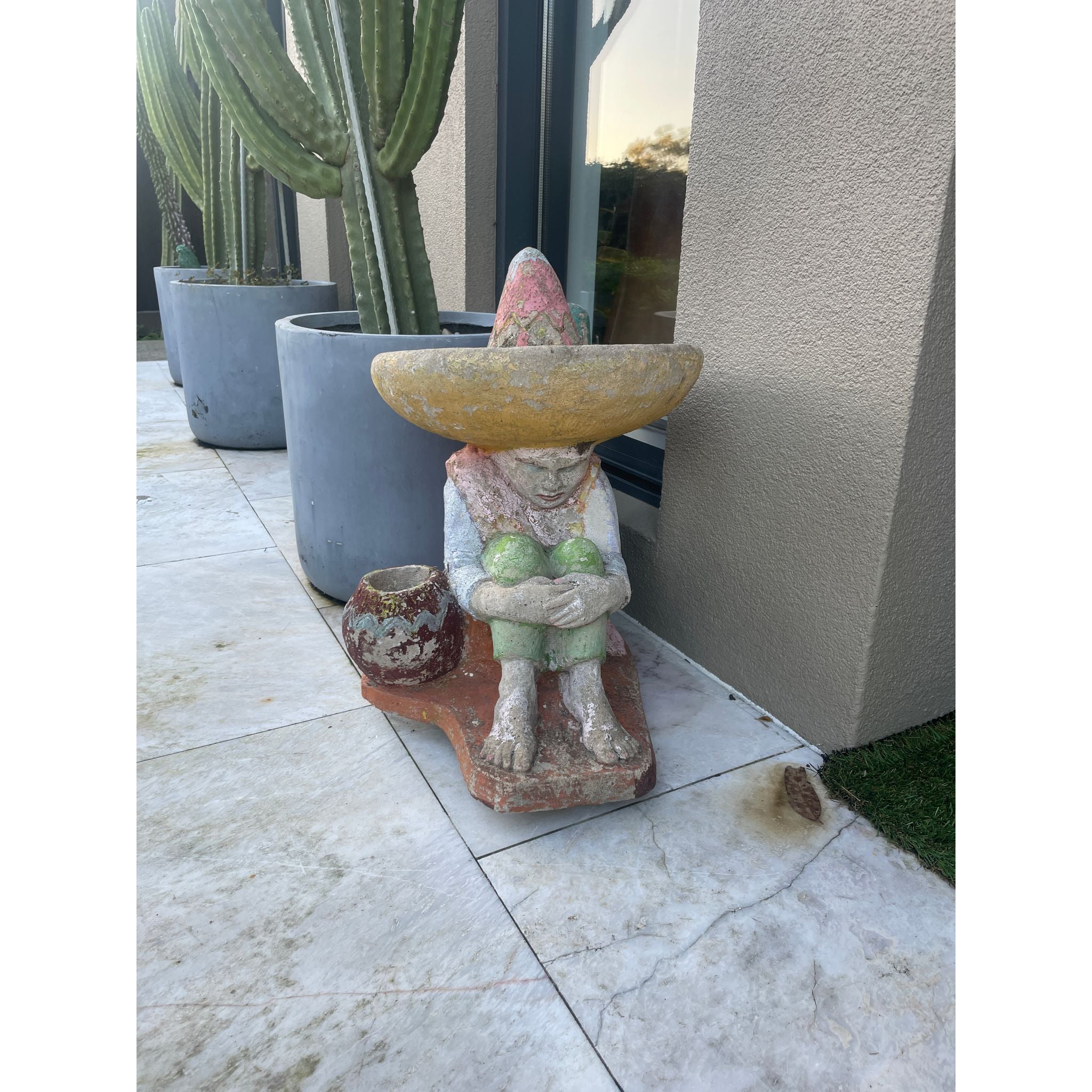 Bring a touch of mid-century Mexican charm to your garden or outdoor space with this striking 1950s garden sculpture. Handcrafted with exceptional attention to detail, this piece depicts a traditional Mexican man, capturing the character, culture and artisanal spirit of the era.