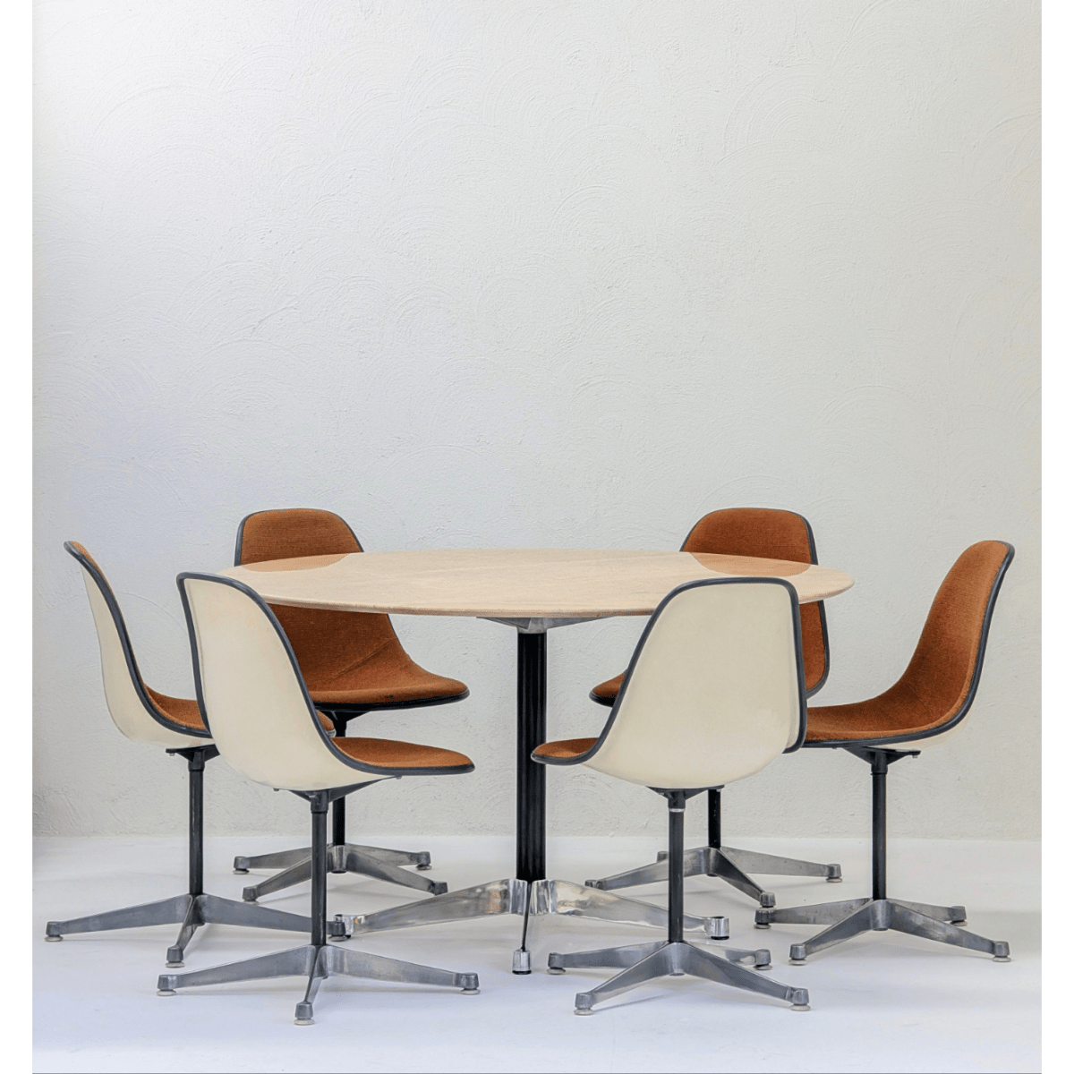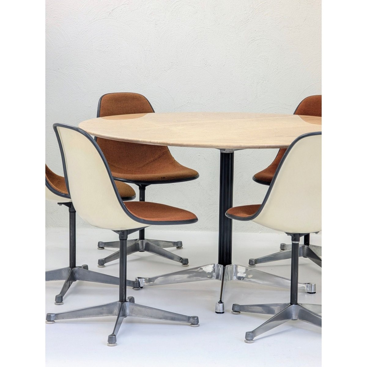 A Collector's Eames Dining Table with a Bespoke Platner-Edge Italian Travertine Top