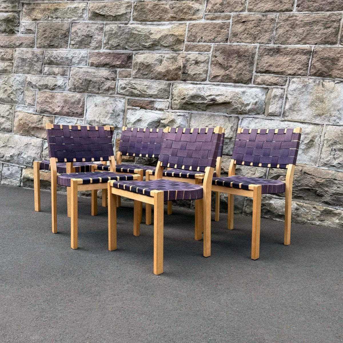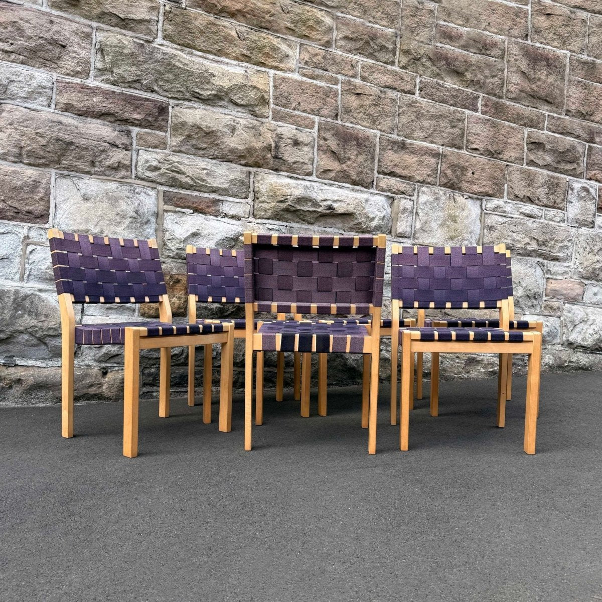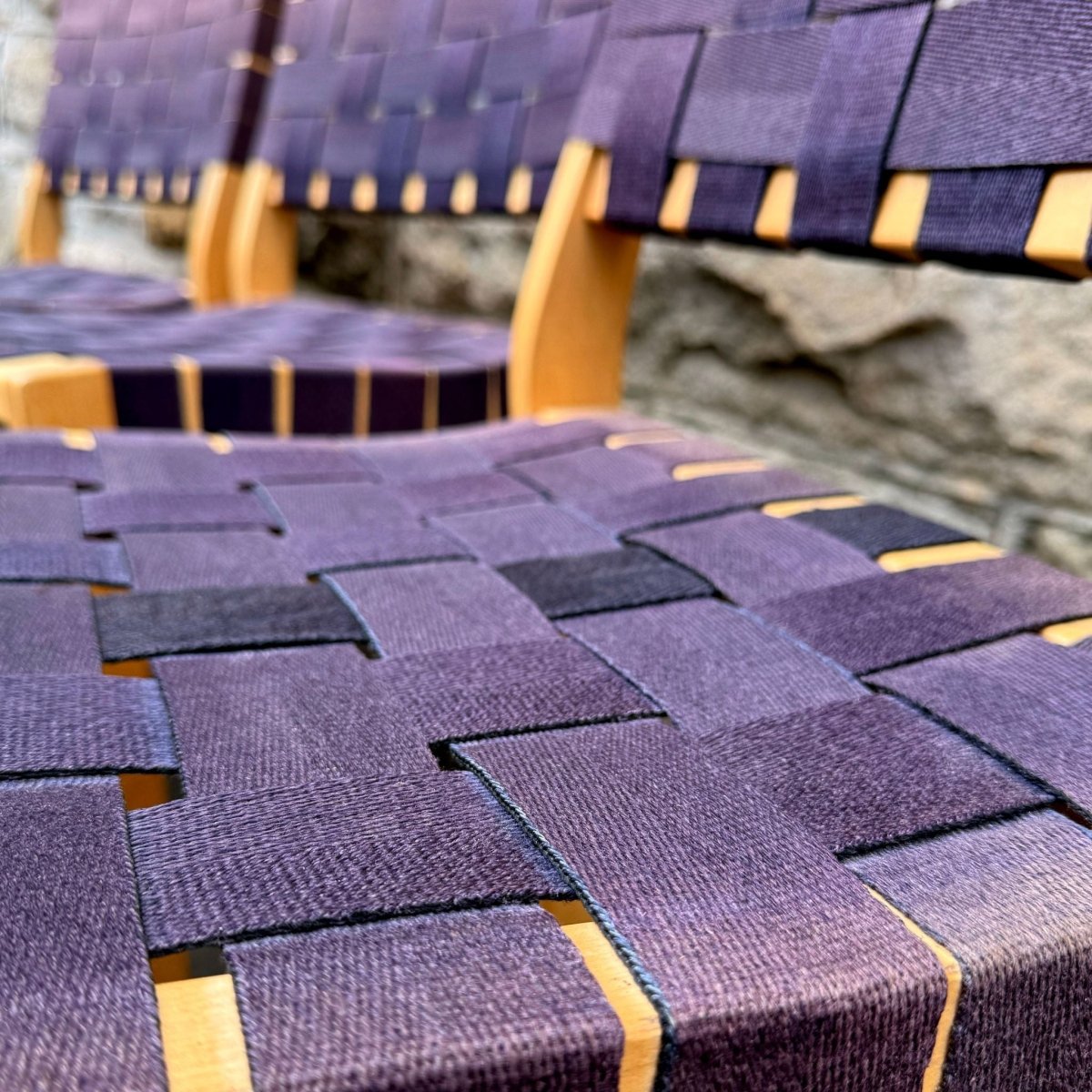 Chair 611 brings together a solid birch frame with a woven fabric seat and backrest. Designed to offer comfort and practicality, the fabric webbing yields to the sitter, making the chair exceptionally comfortable.
