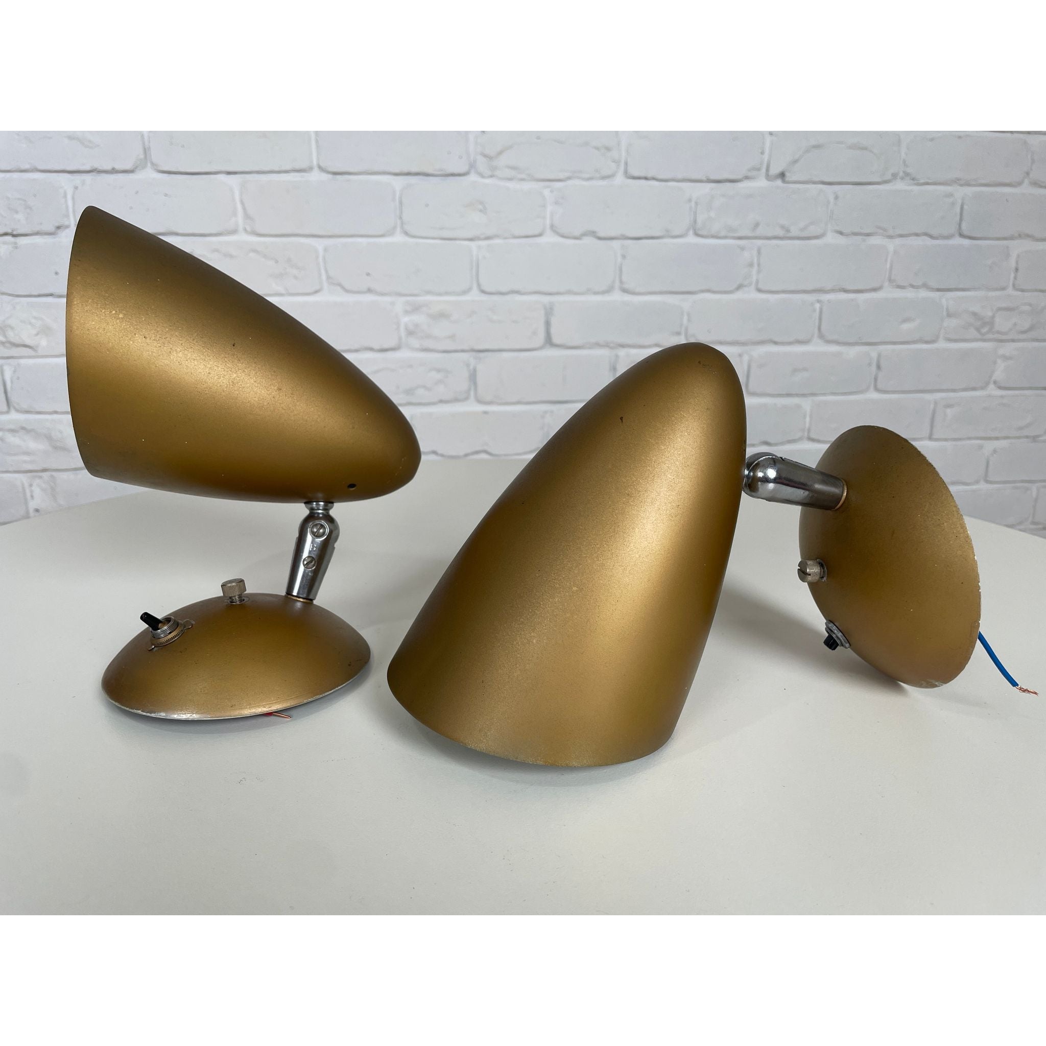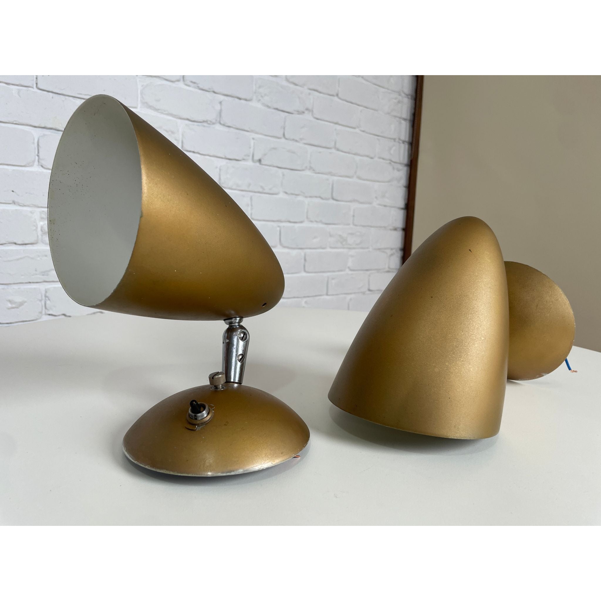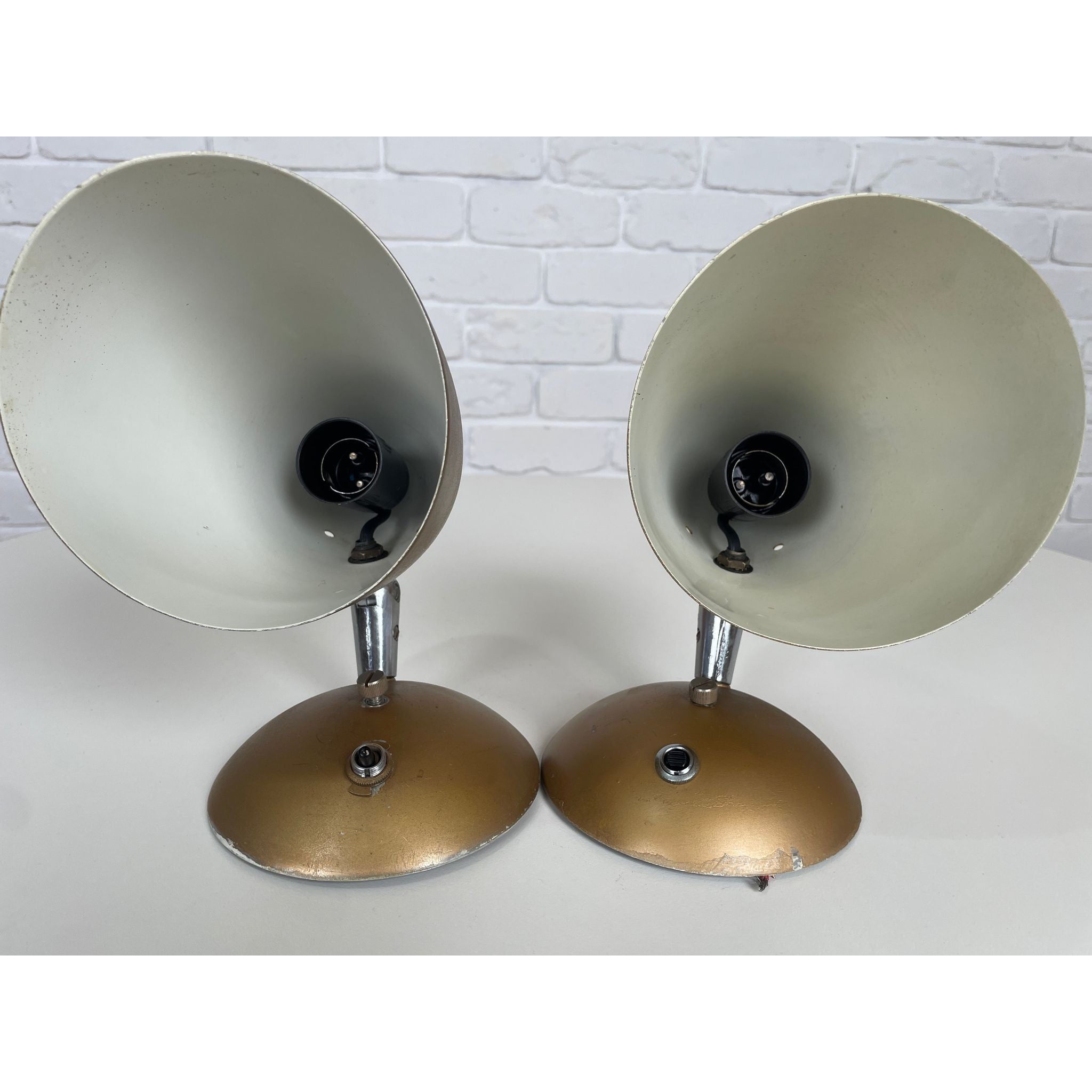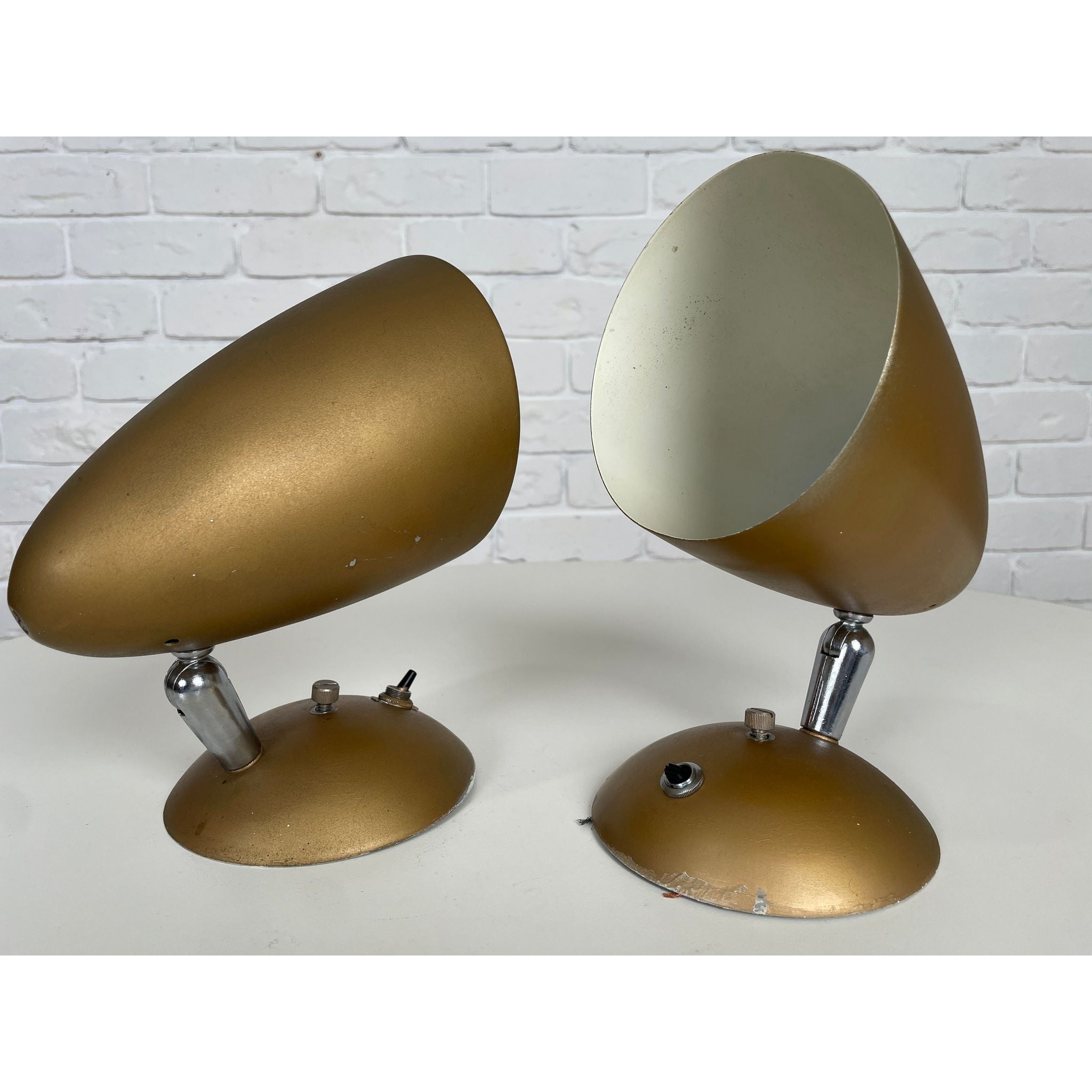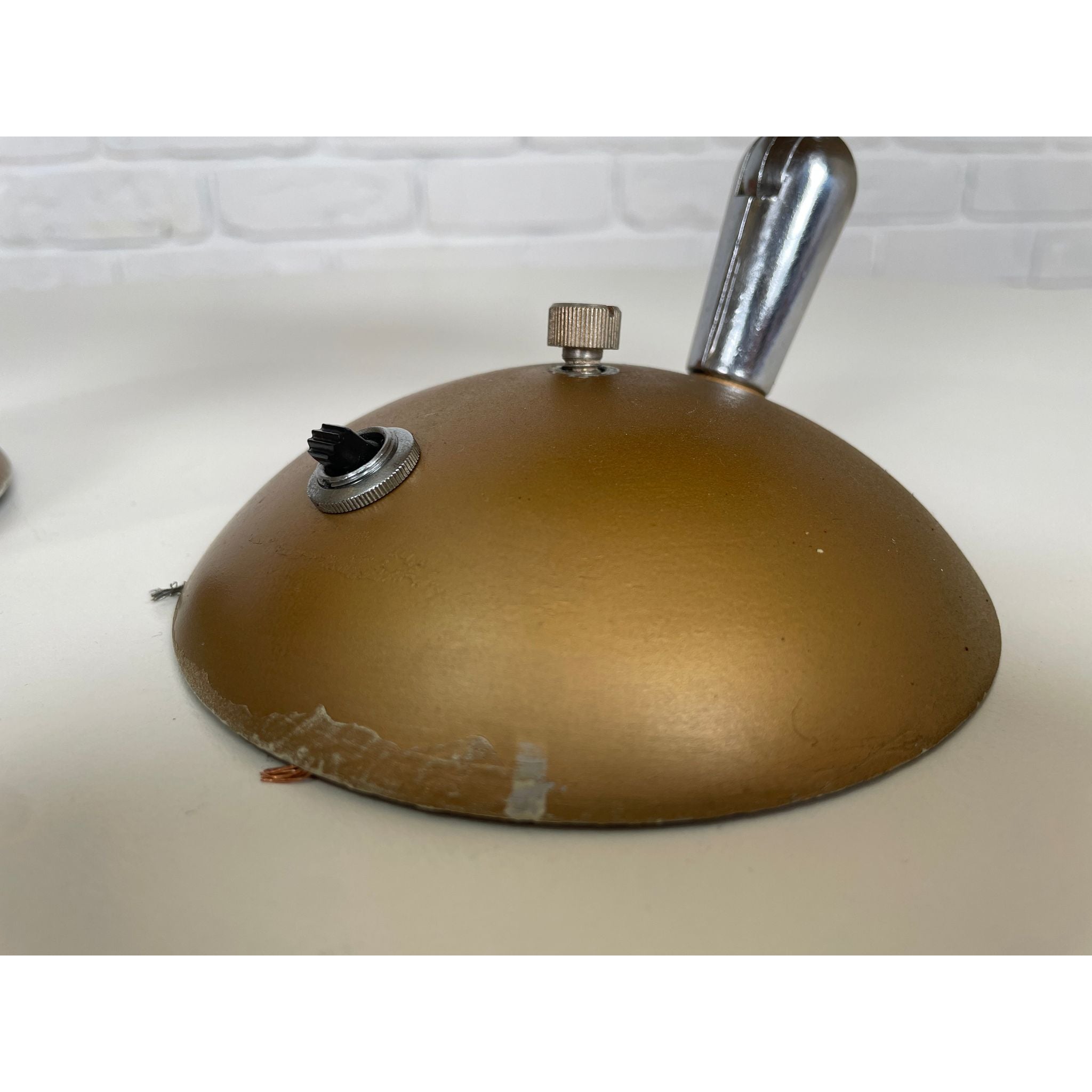 Great original condition. Aftermarket gold paint. Some surface imperfects. Polished chrome swivel brackets.