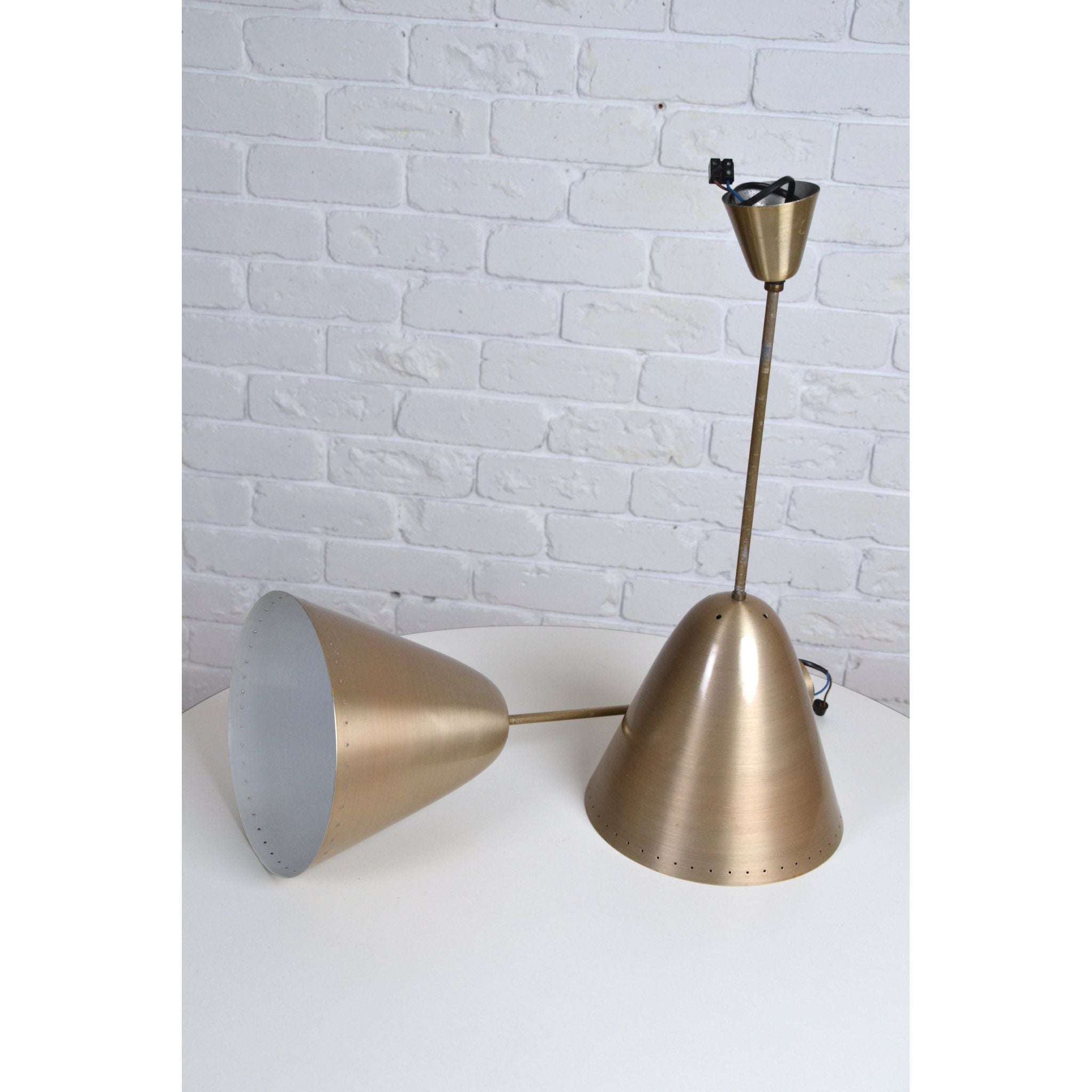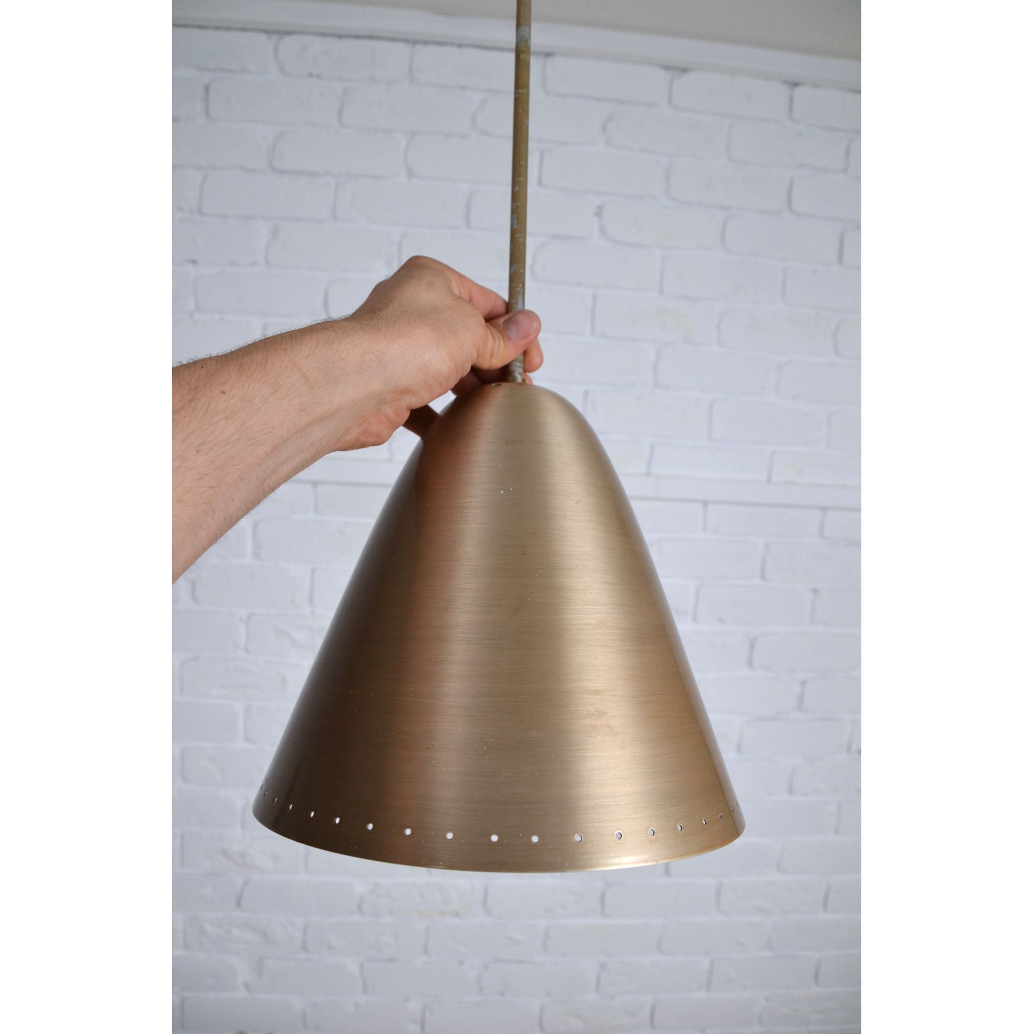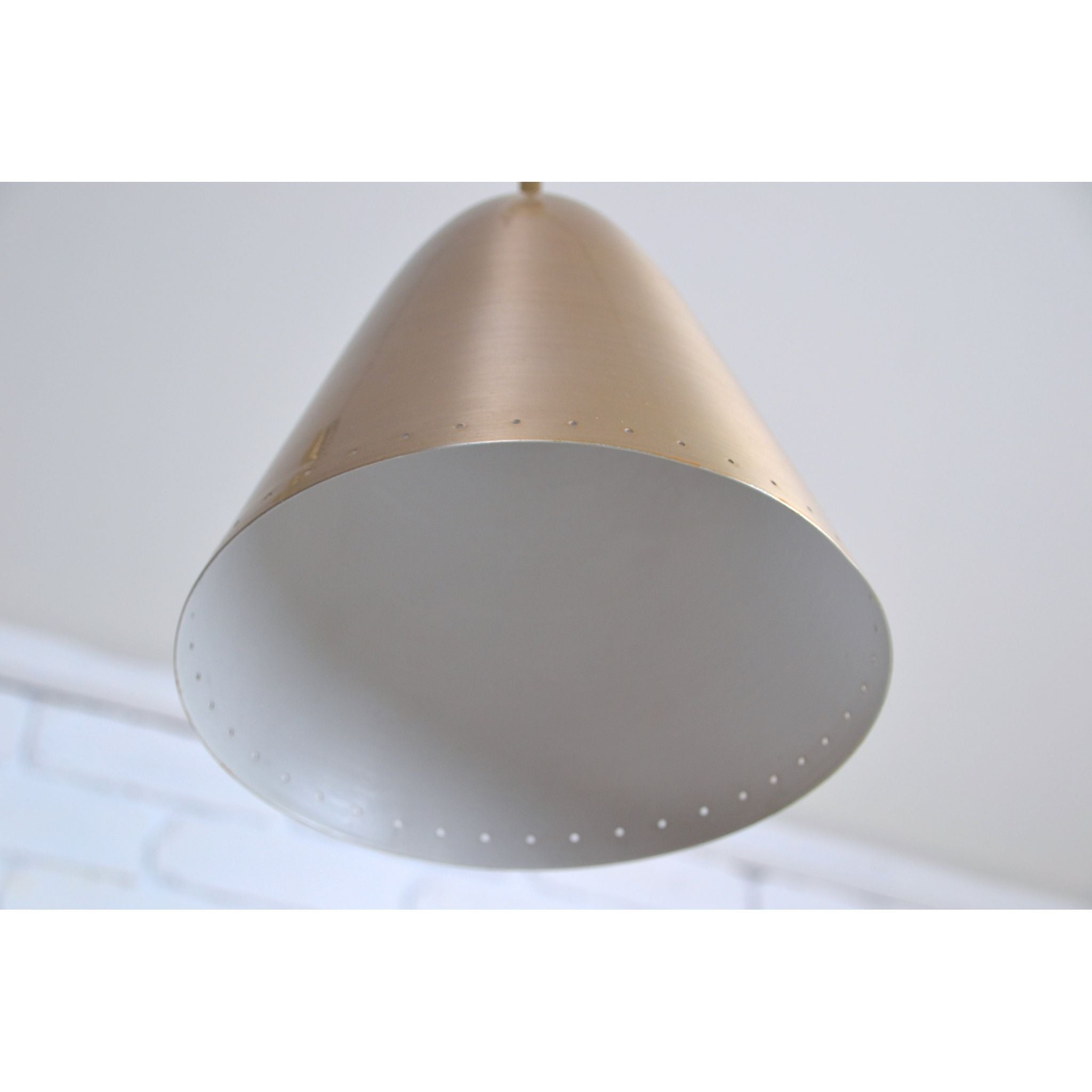 Single Mid century BECO pendant light model 14 - Direct type pendant. By Don Brown / Brown Evans & Co (BECO) Melbourne, Australia. 1950s-1960s. In original pale gold anodised painted finish. In good unrestored condition.