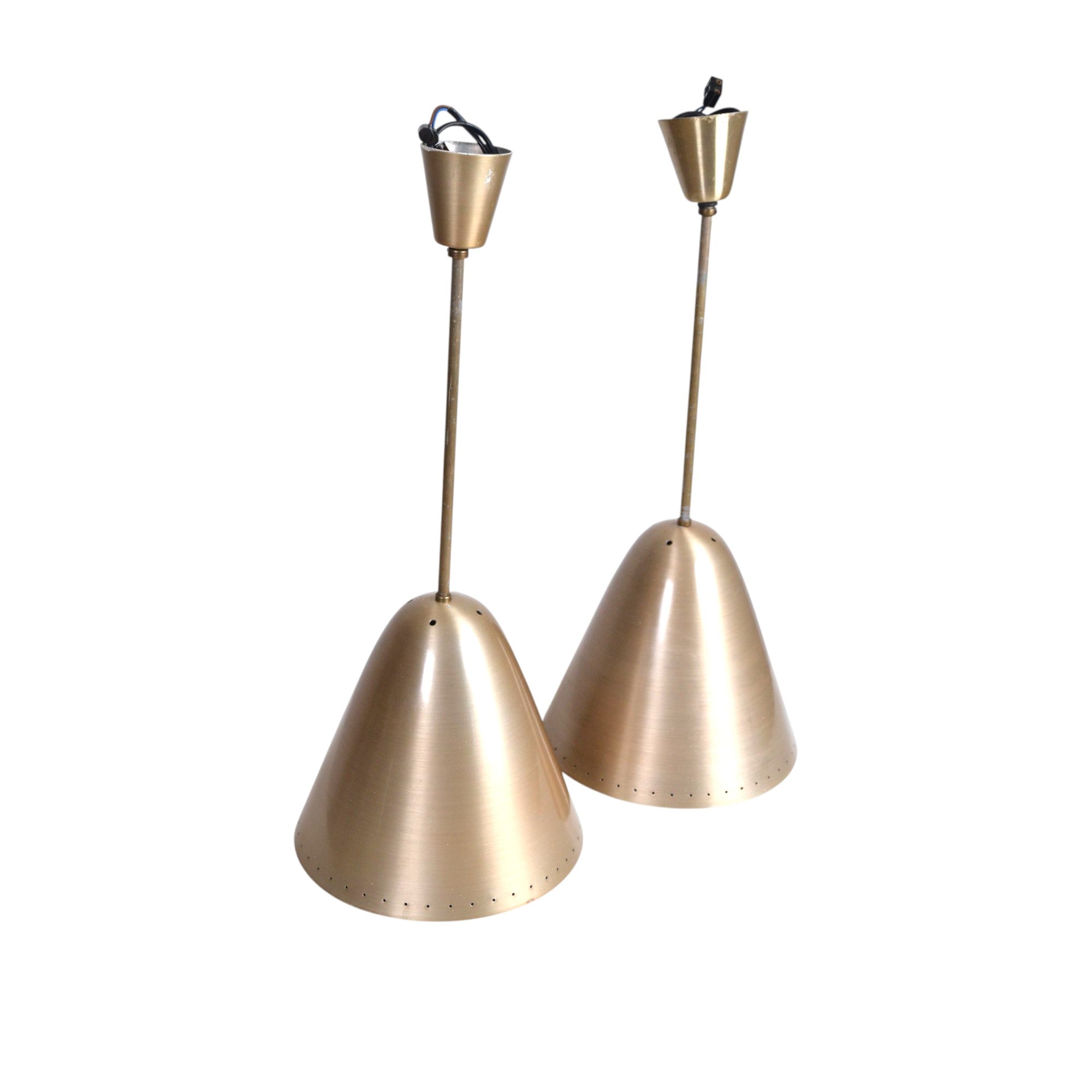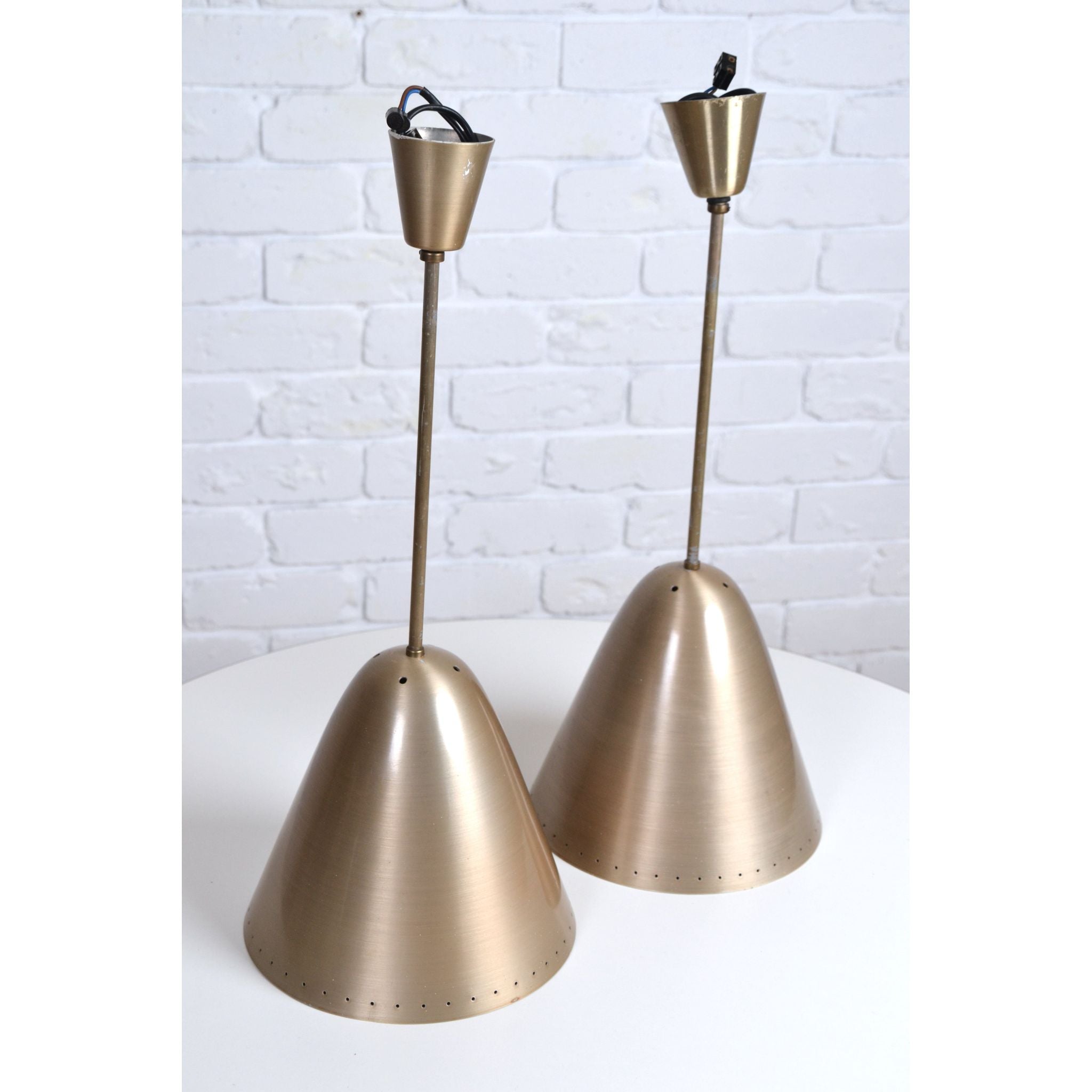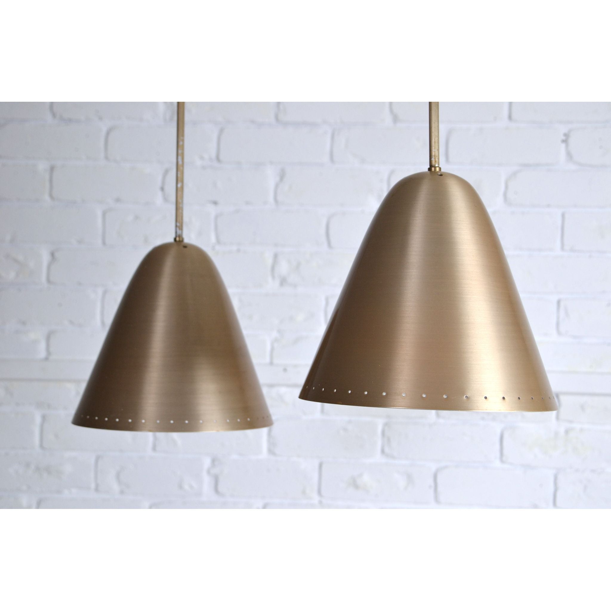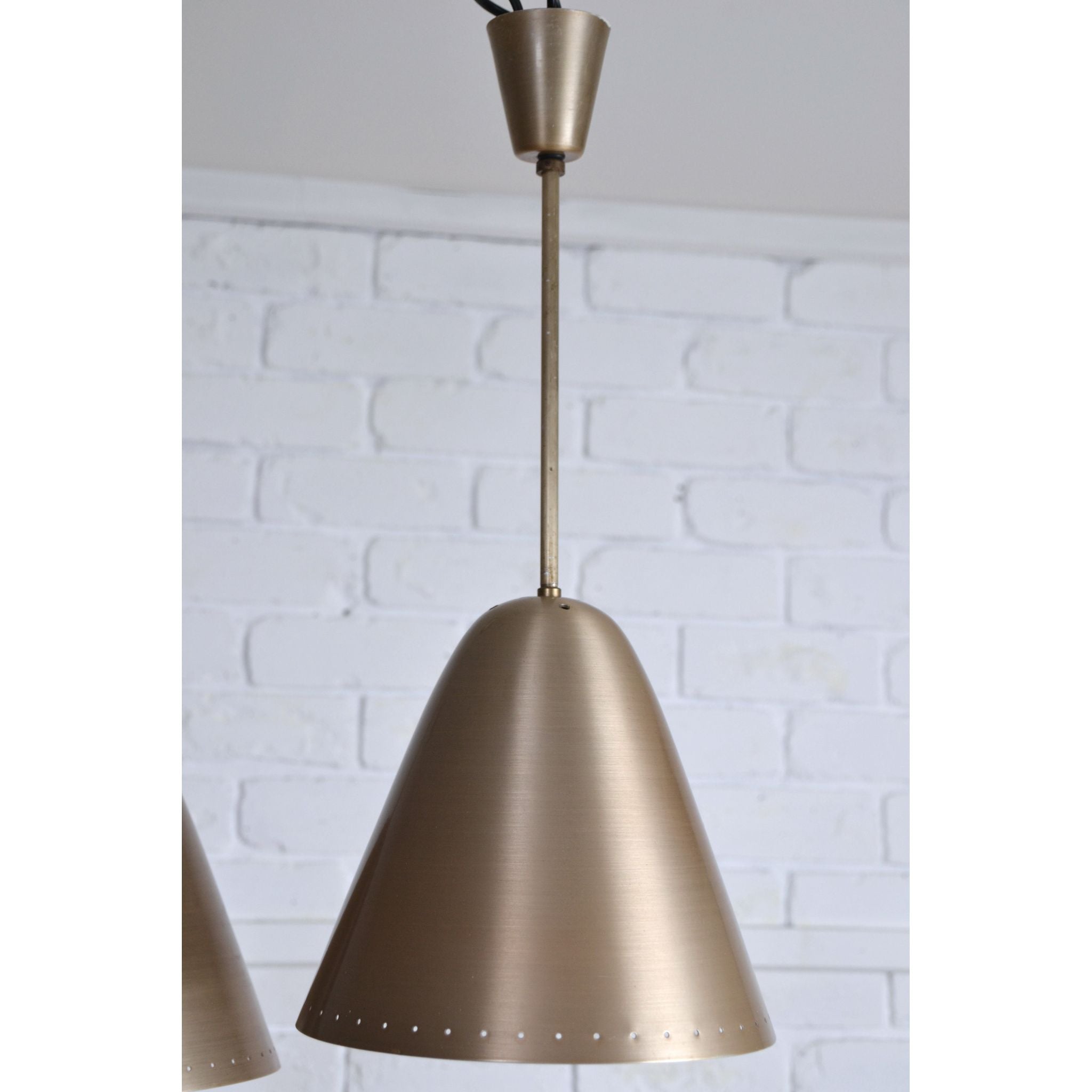 Single Mid century BECO pendant light model 14 - Direct type pendant. By Don Brown / Brown Evans & Co (BECO) Melbourne, Australia. 1950s-1960s. In original pale gold anodised painted finish. In good unrestored condition.