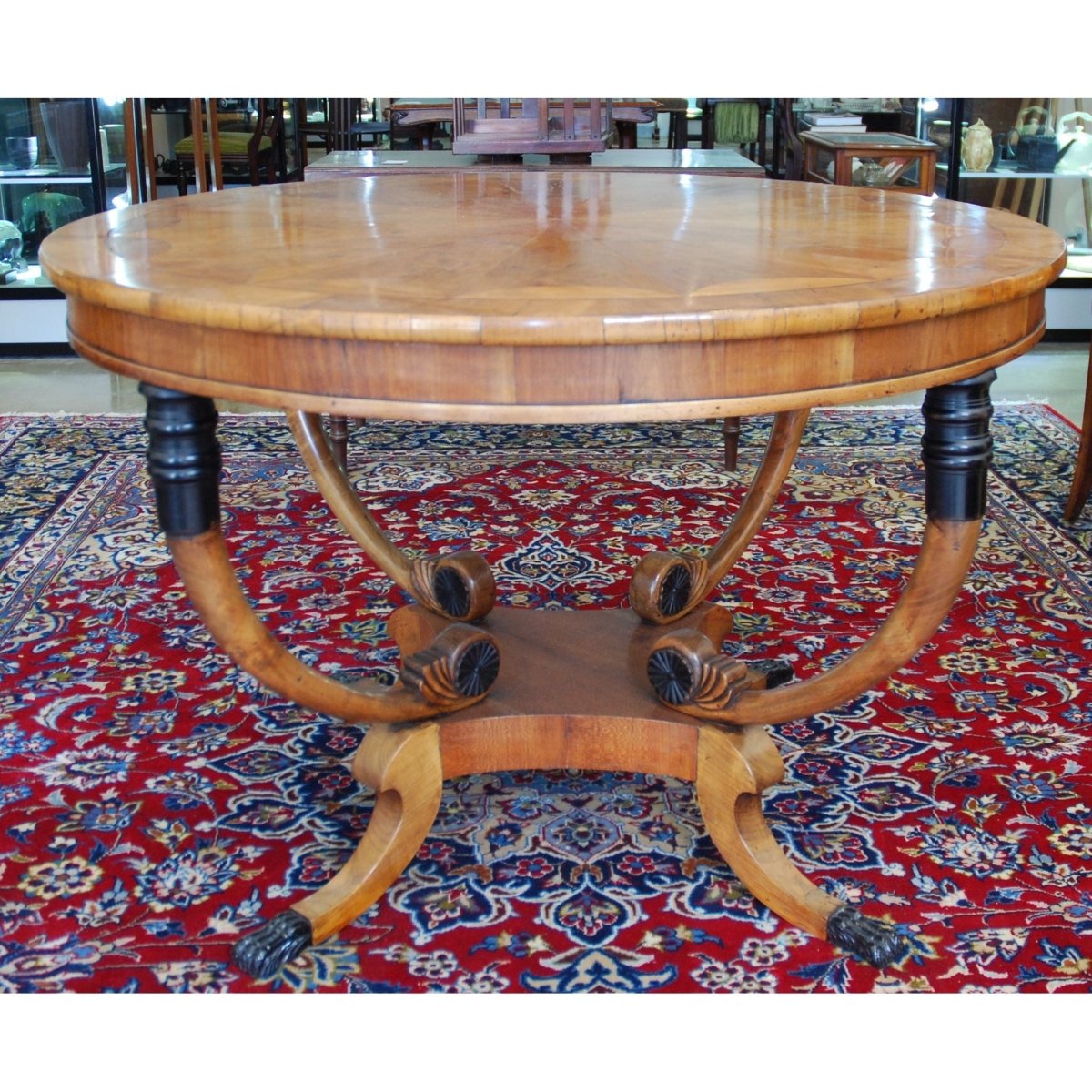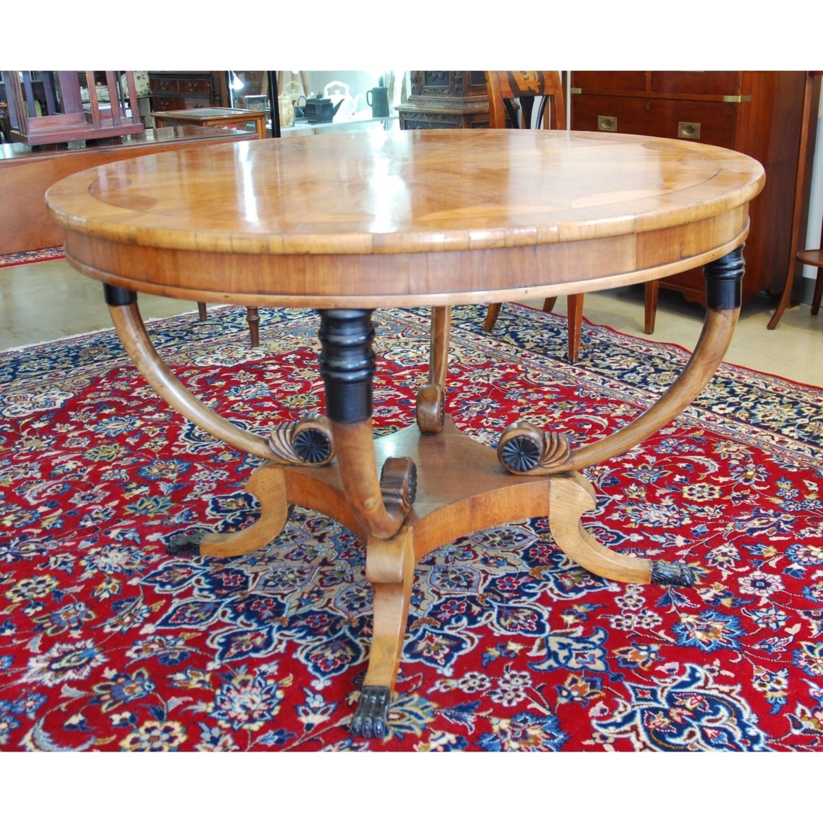Biedermeier revival table in cherry-wood veneer with ebonised details.
