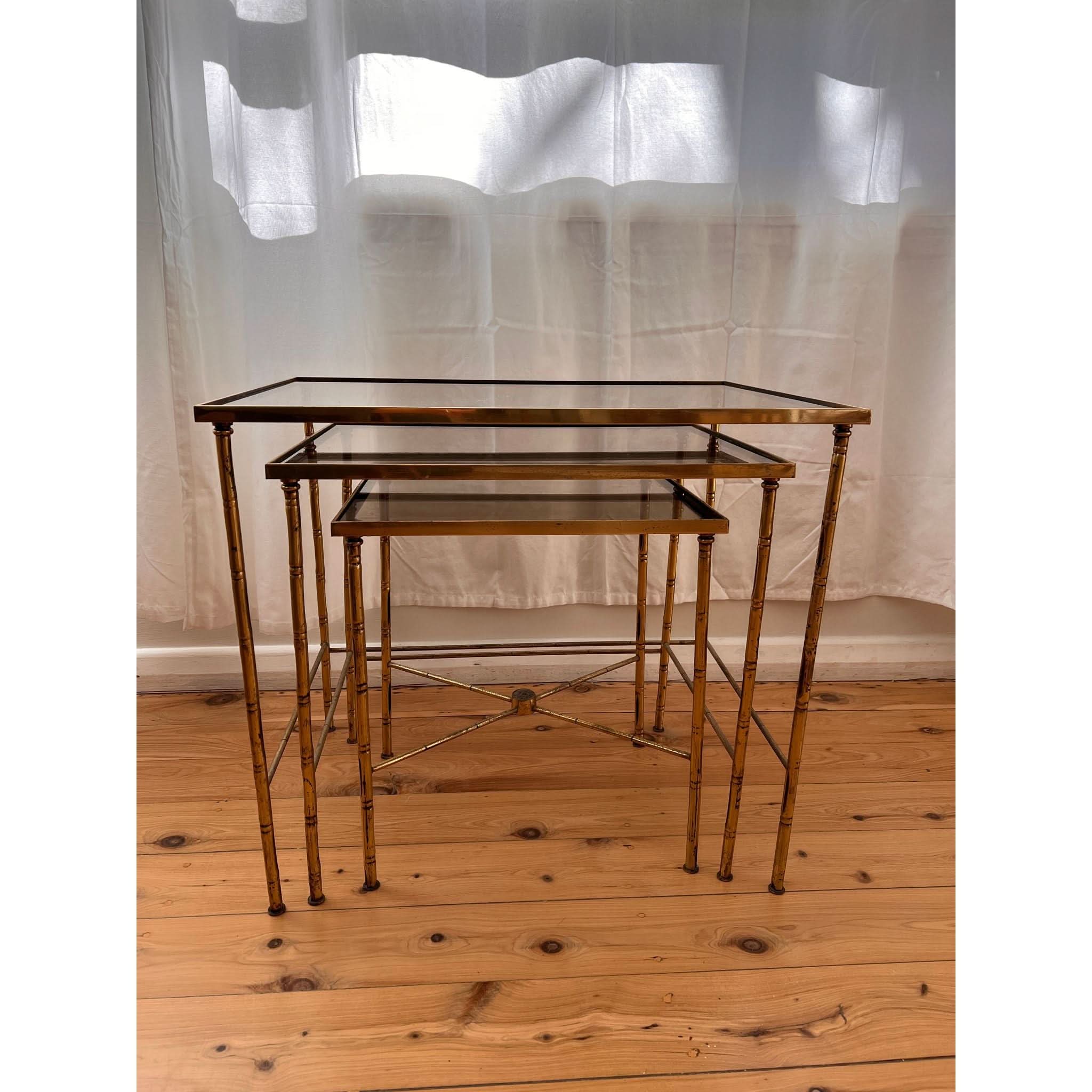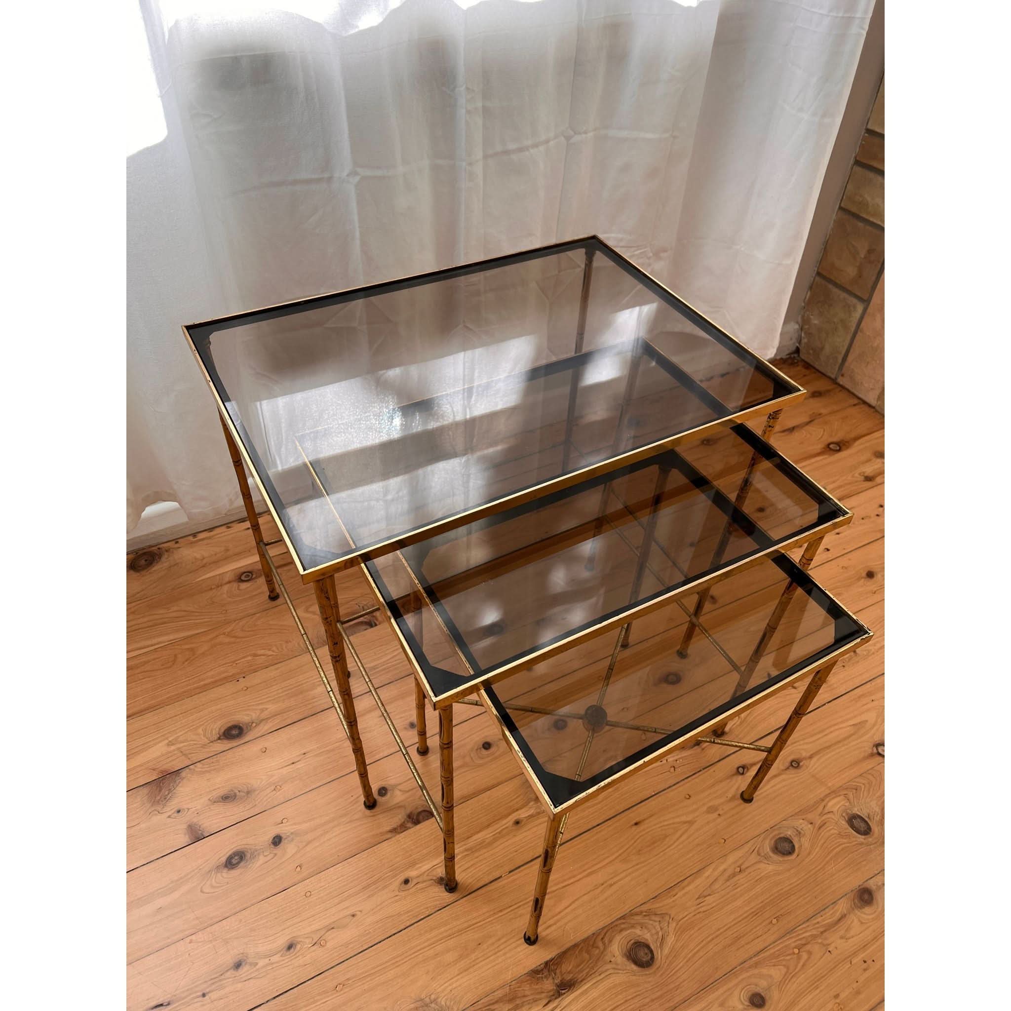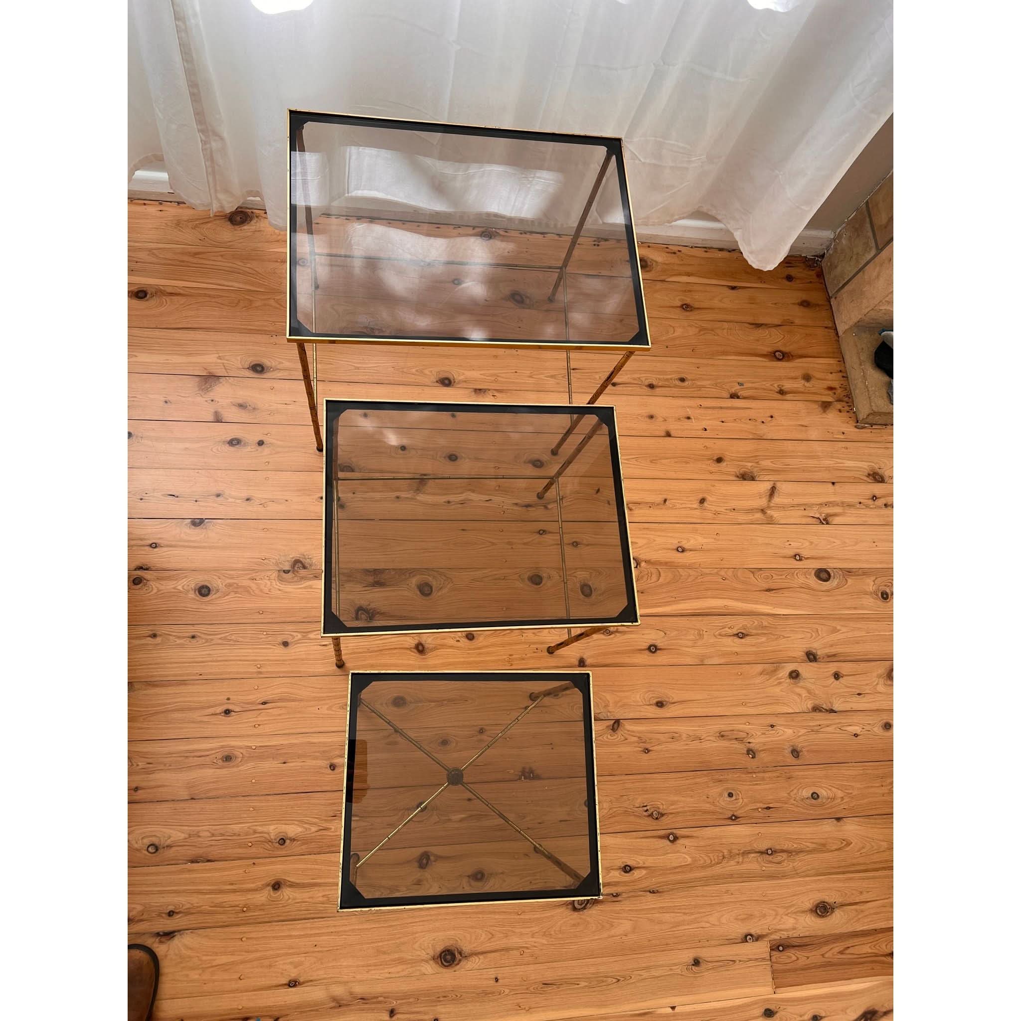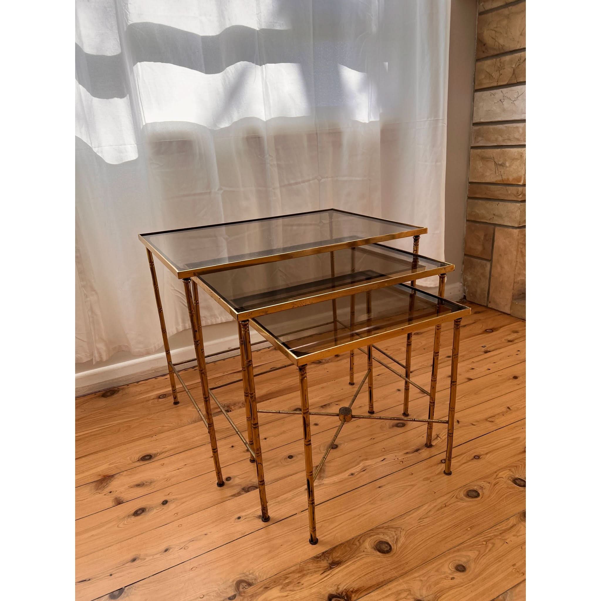 Vintage MCM Brass Faux Bamaboo & Smoked Glass Tables