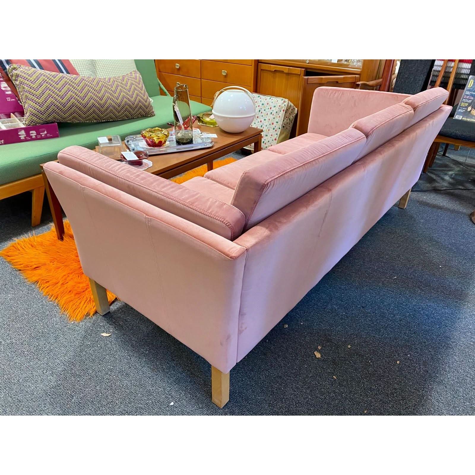 ALL NEW foams/cushions, base/webbing, fabric. This is a soft pink velvet fabric (which was hard to show in photos) has been pattern matched and sewn exactly identical to the original Danish 🇩🇰 pre leather style.