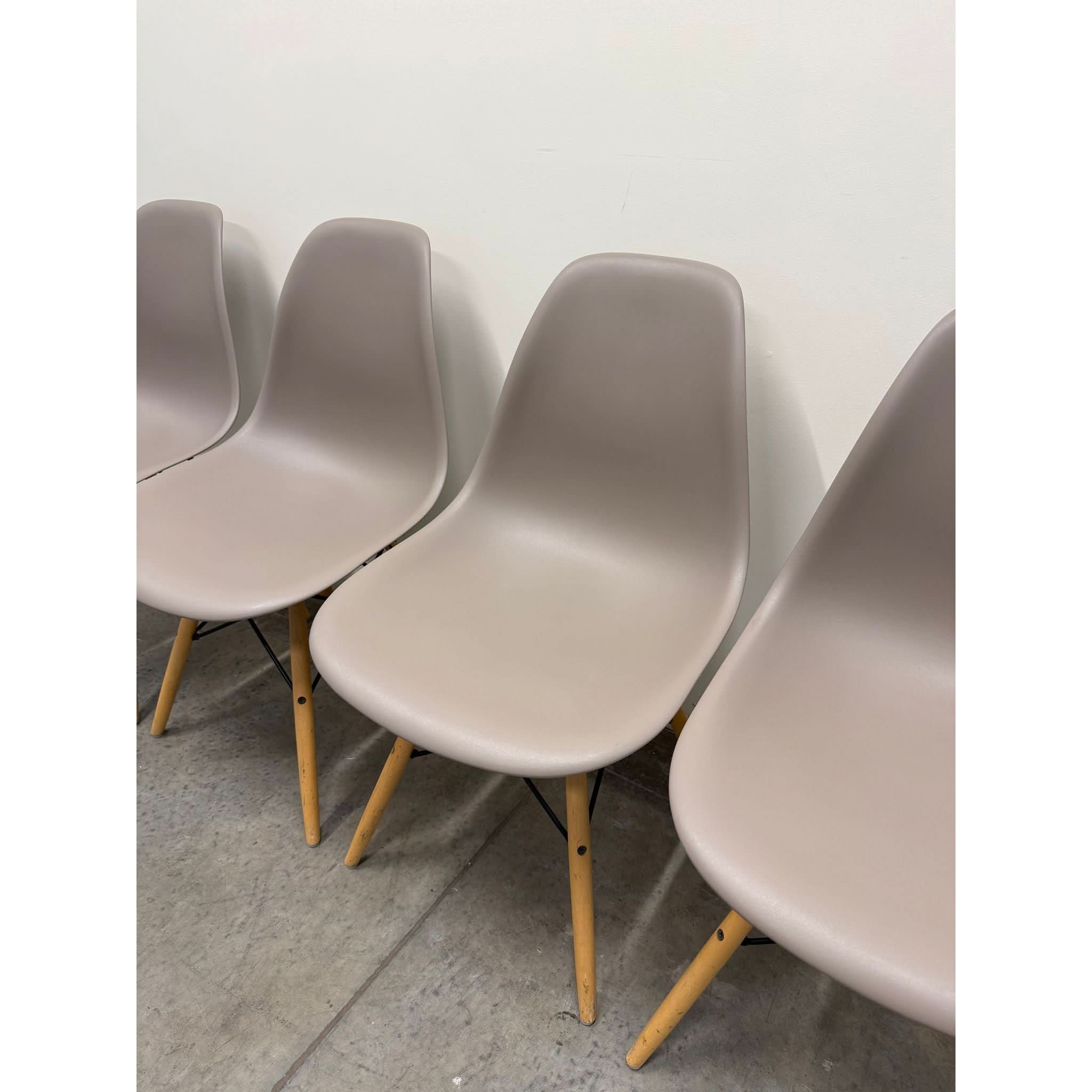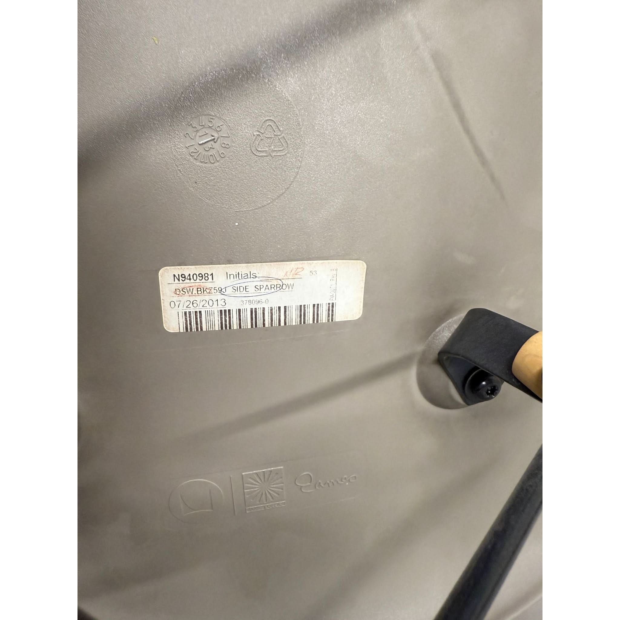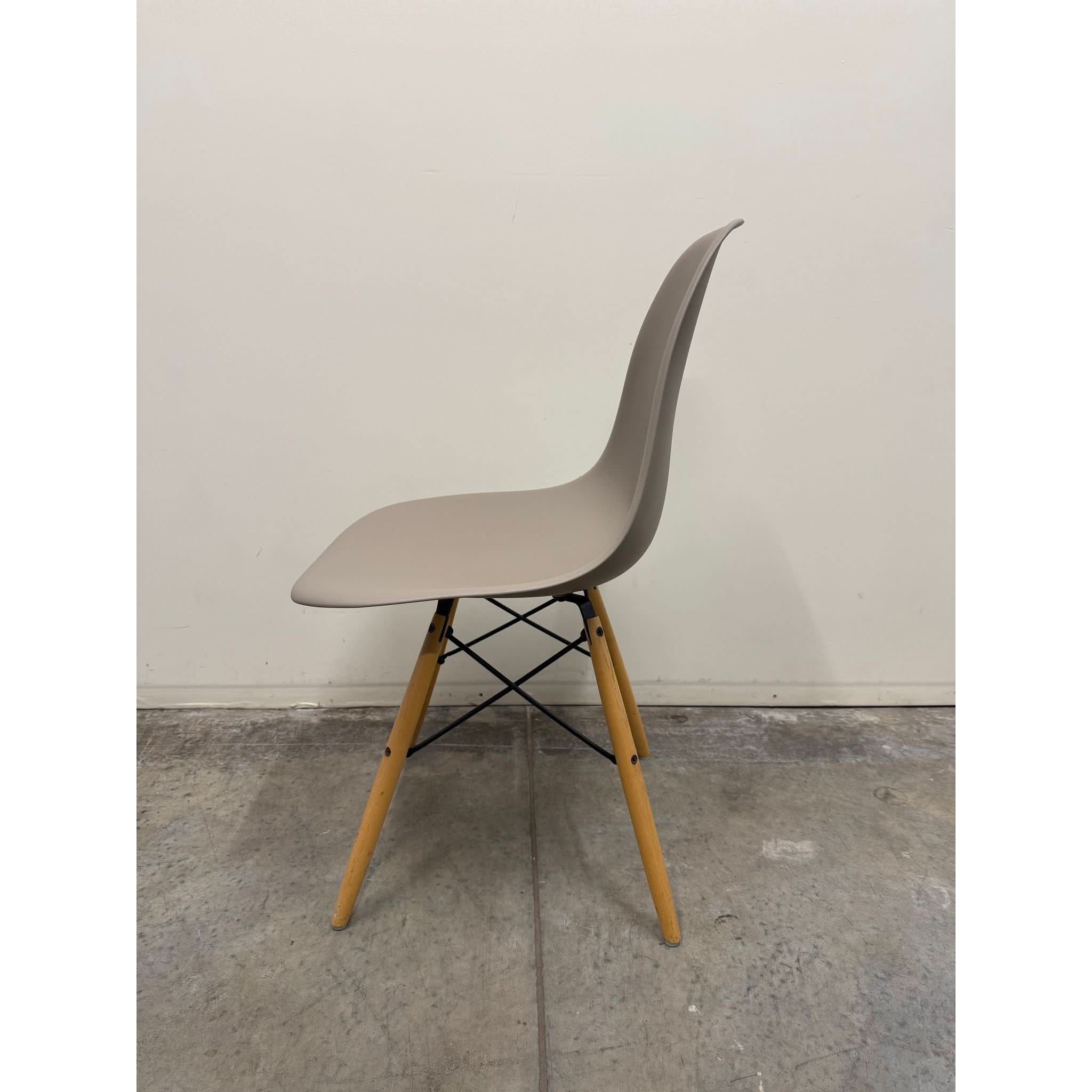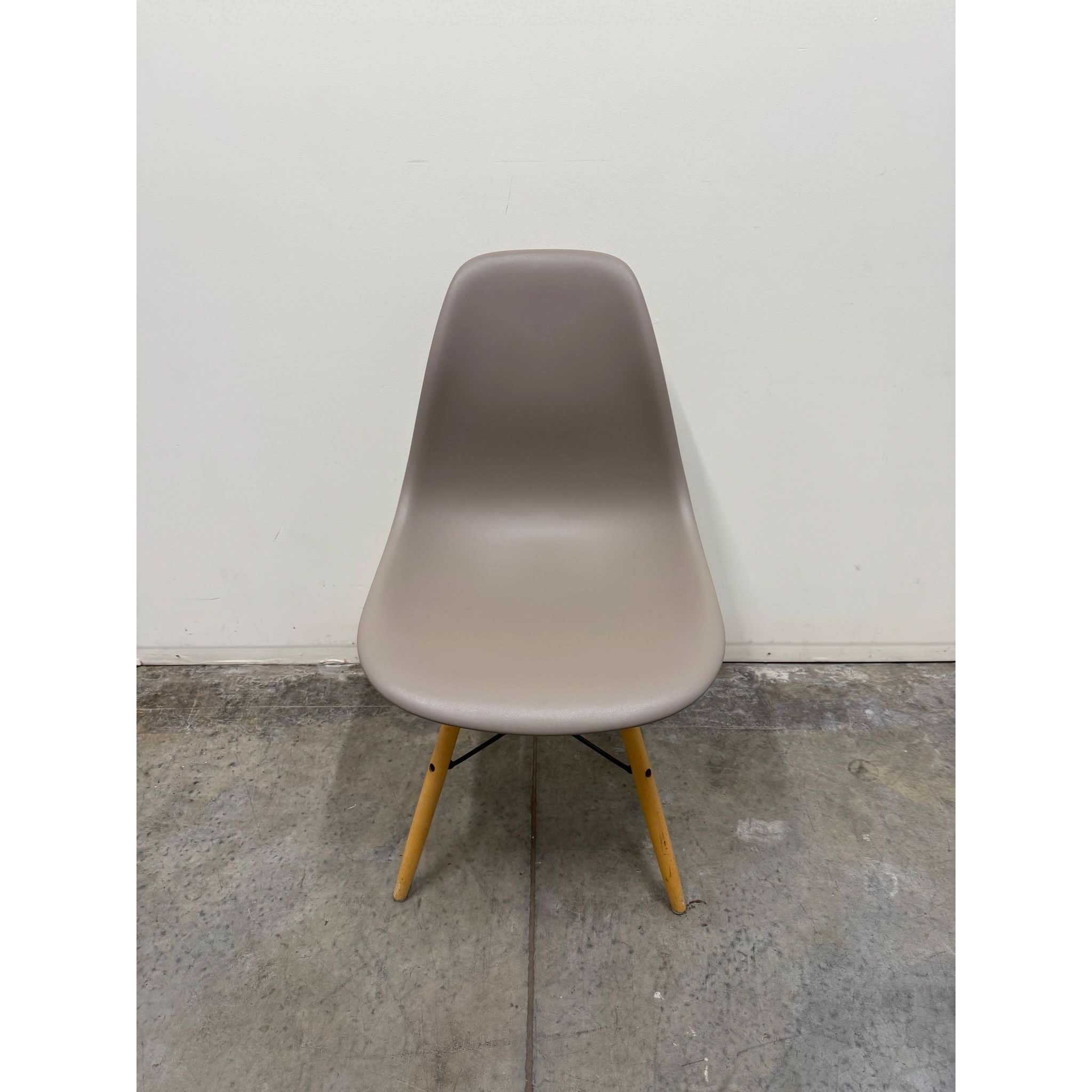 A modern design icon from Herman Miller, the Eames Molded Plastic Side Chair in Sparrow grey embodies the timeless form created by Charles and Ray Eames. Featuring a gently curved polypropylene seat and signature wooden dowel base with black metal cross struts, this chair offers a stylish blend of comfort and mid-century elegance.