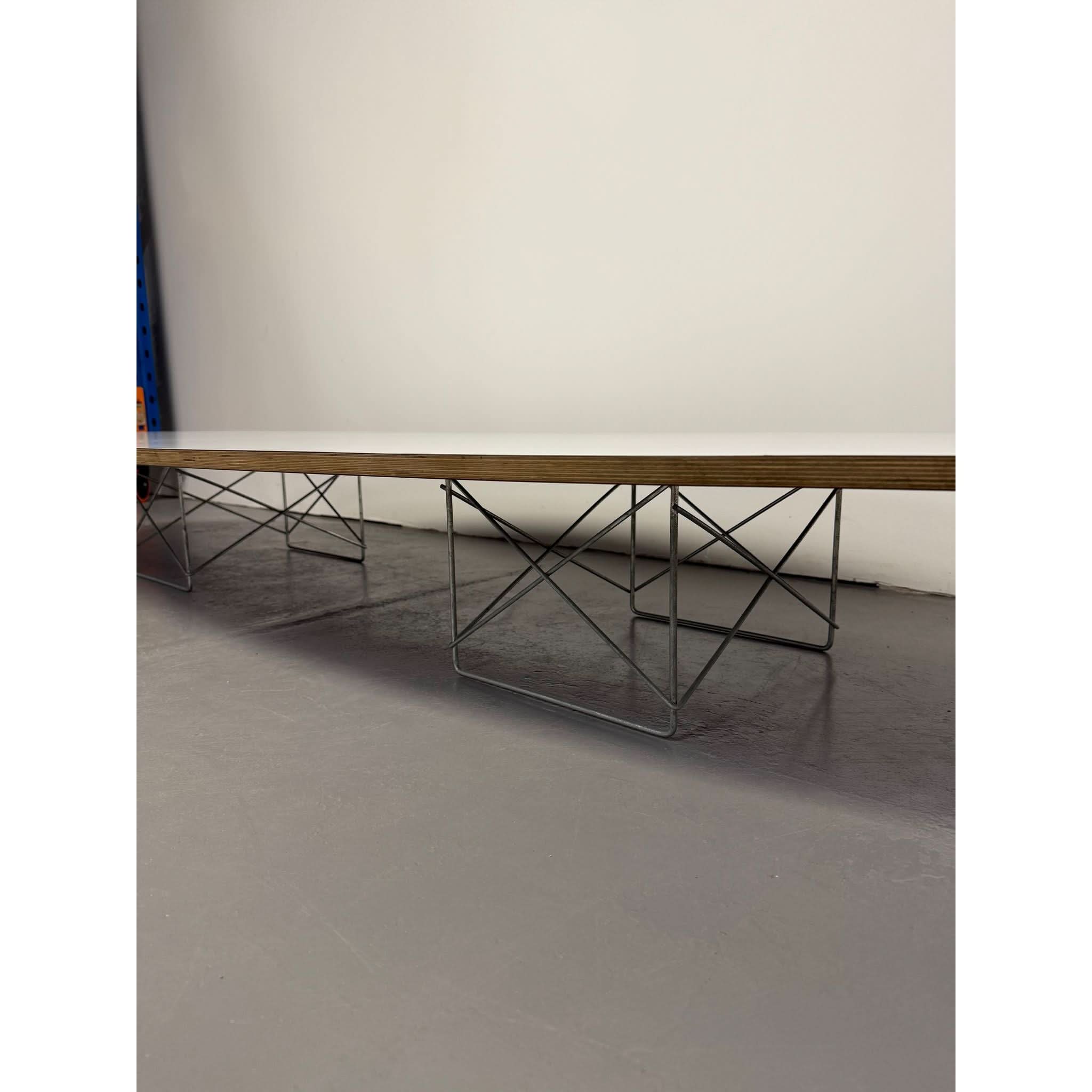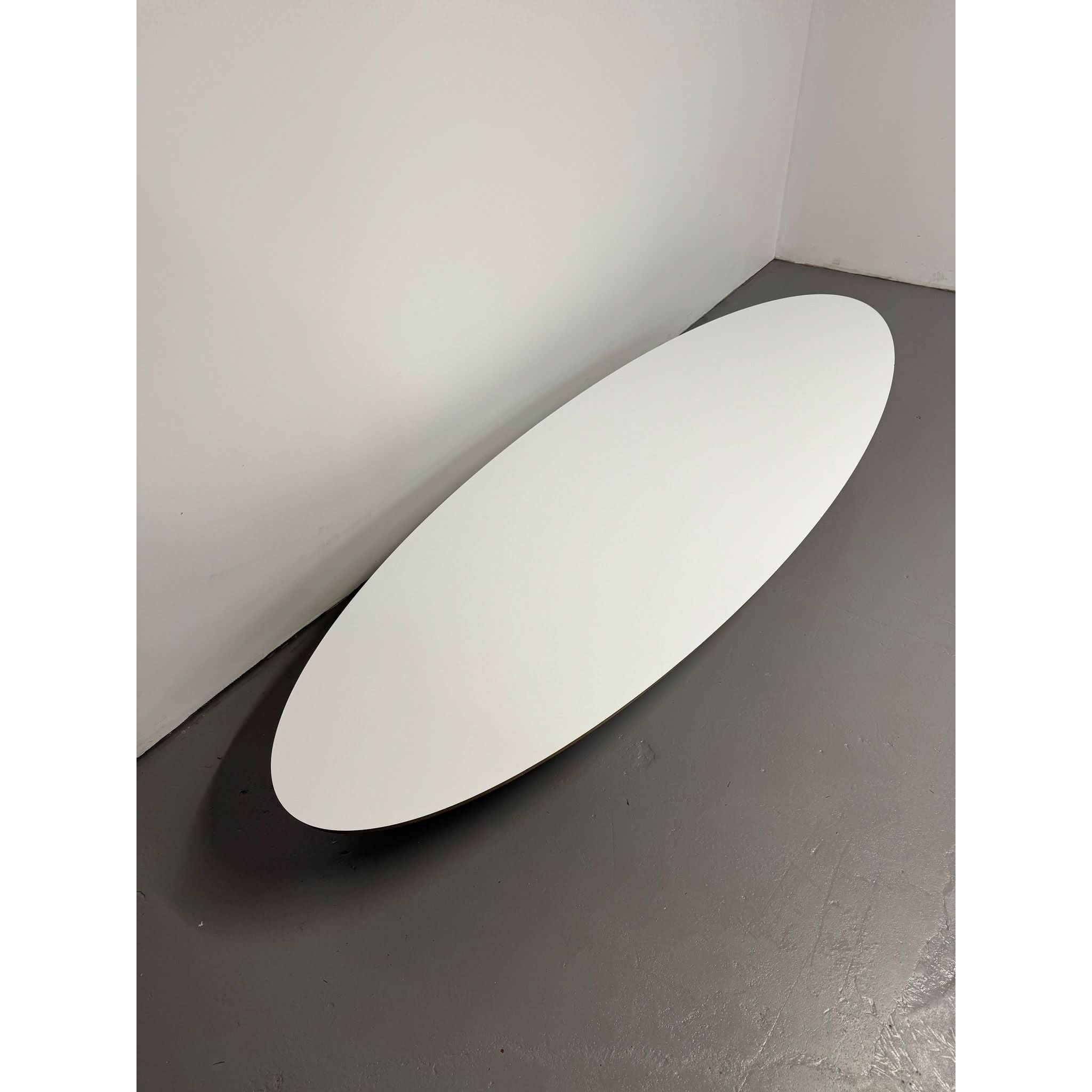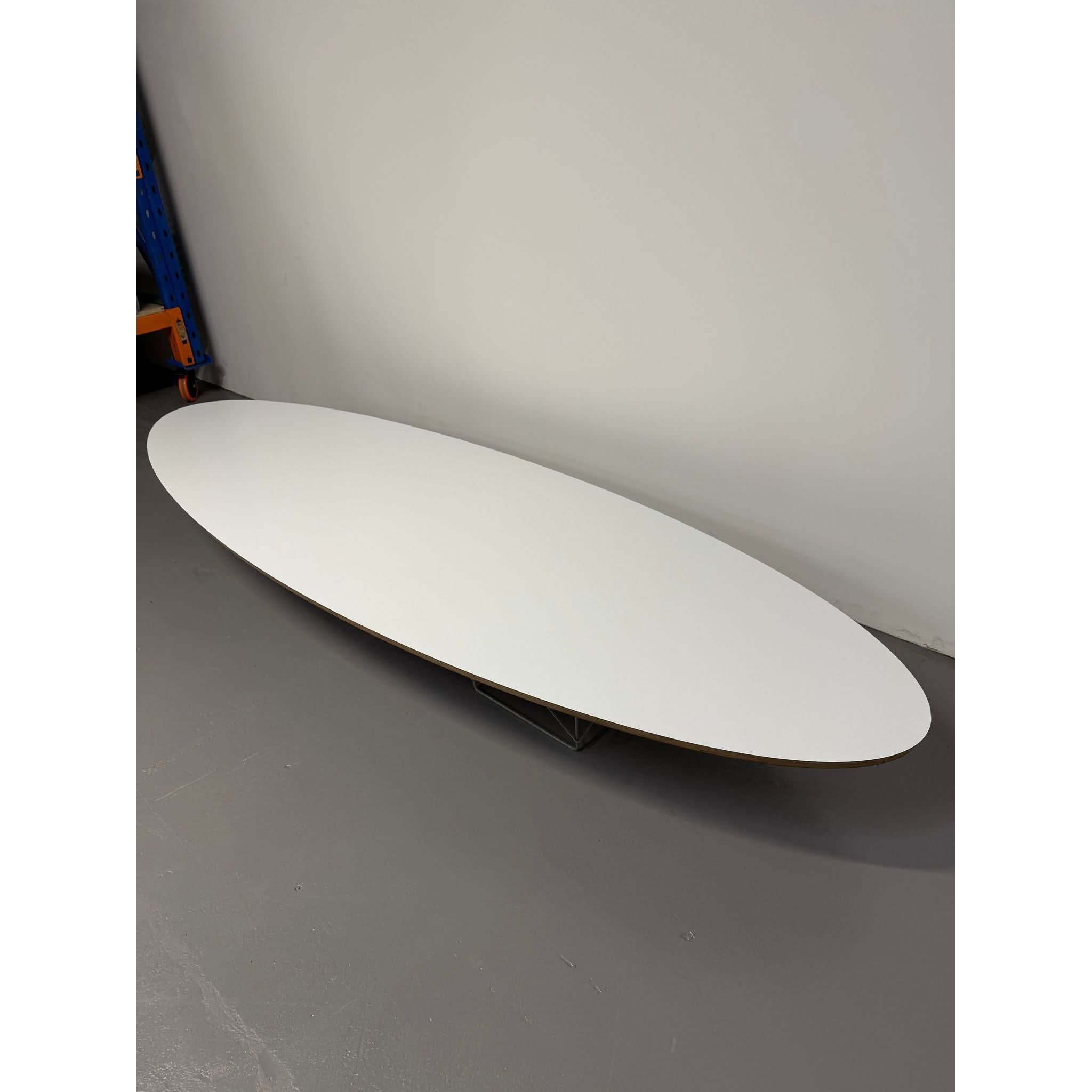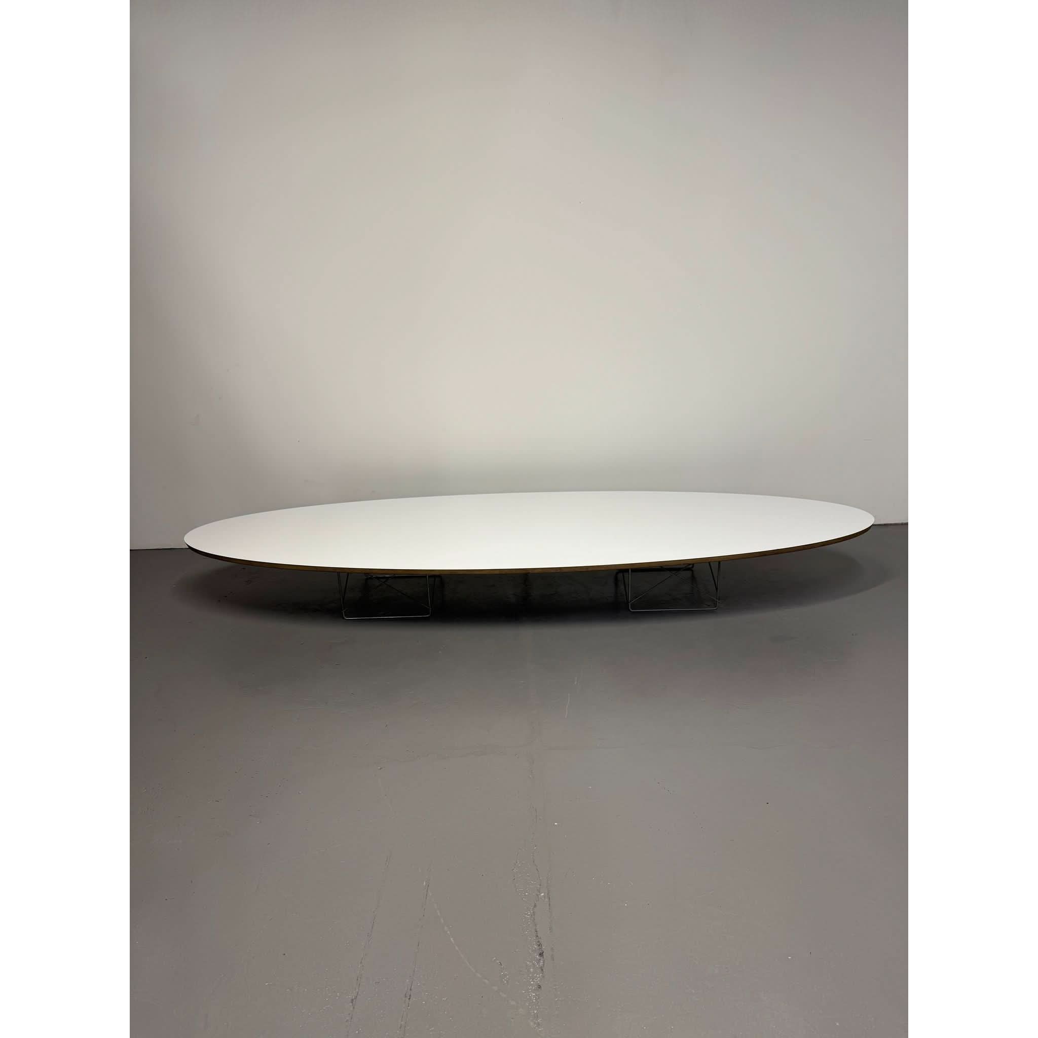 The Eames Wire Base Elliptical Table, often referred to as the “Surfboard Table,” is a rare and well-known mid-century piece designed by Charles and Ray Eames for Herman Miller. With its long, low profile and clean white laminate top, the elliptical shape takes direct inspiration from surfboard design, making it one of the most recognisable coffee tables of its era.