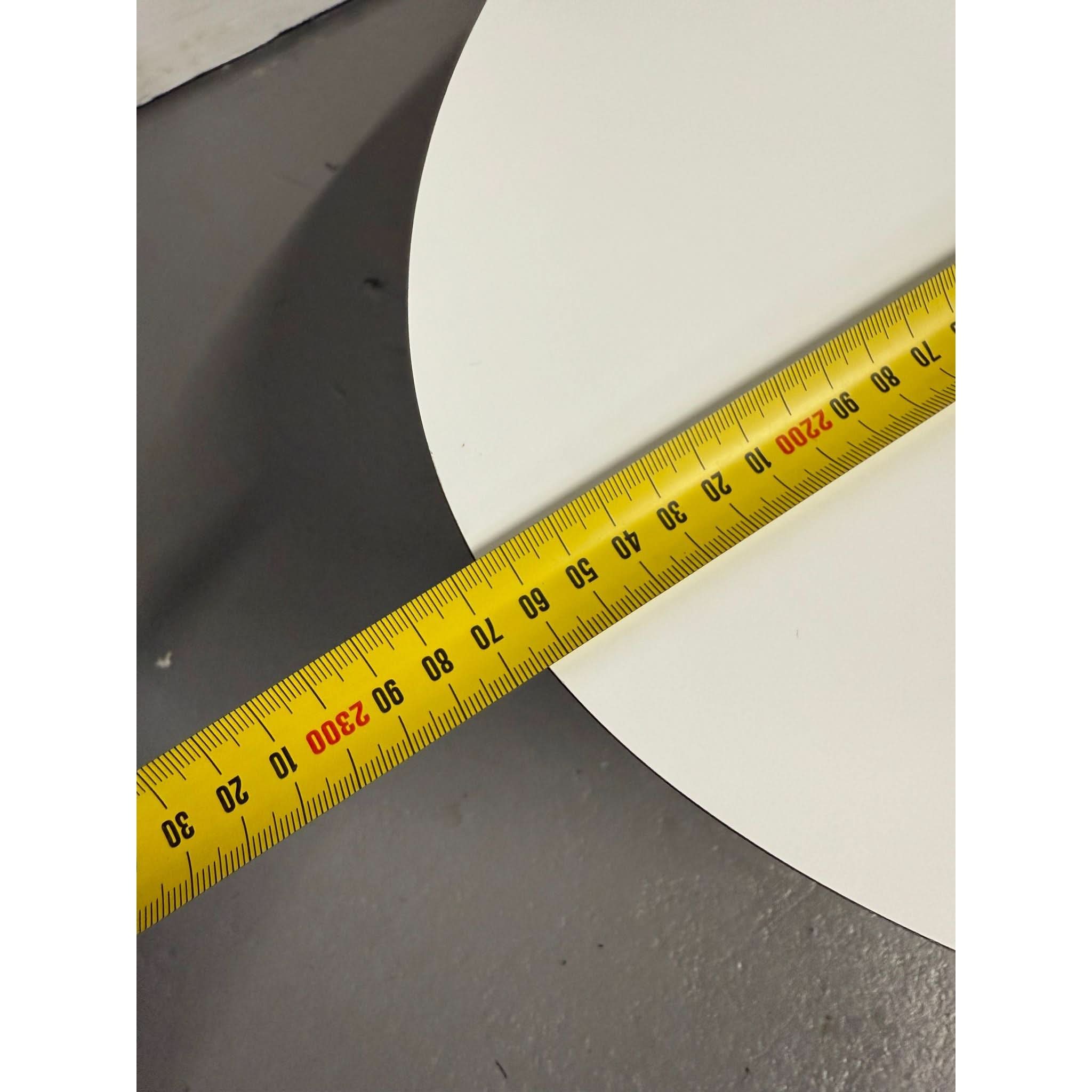 This piece features a white laminate finish with exposed edge detailing, supported by two steel wire bases that create a light, floating appearance. Ideal for modern interiors, offices, or gallery spaces, this table adds design credibility and timeless character to any setting.