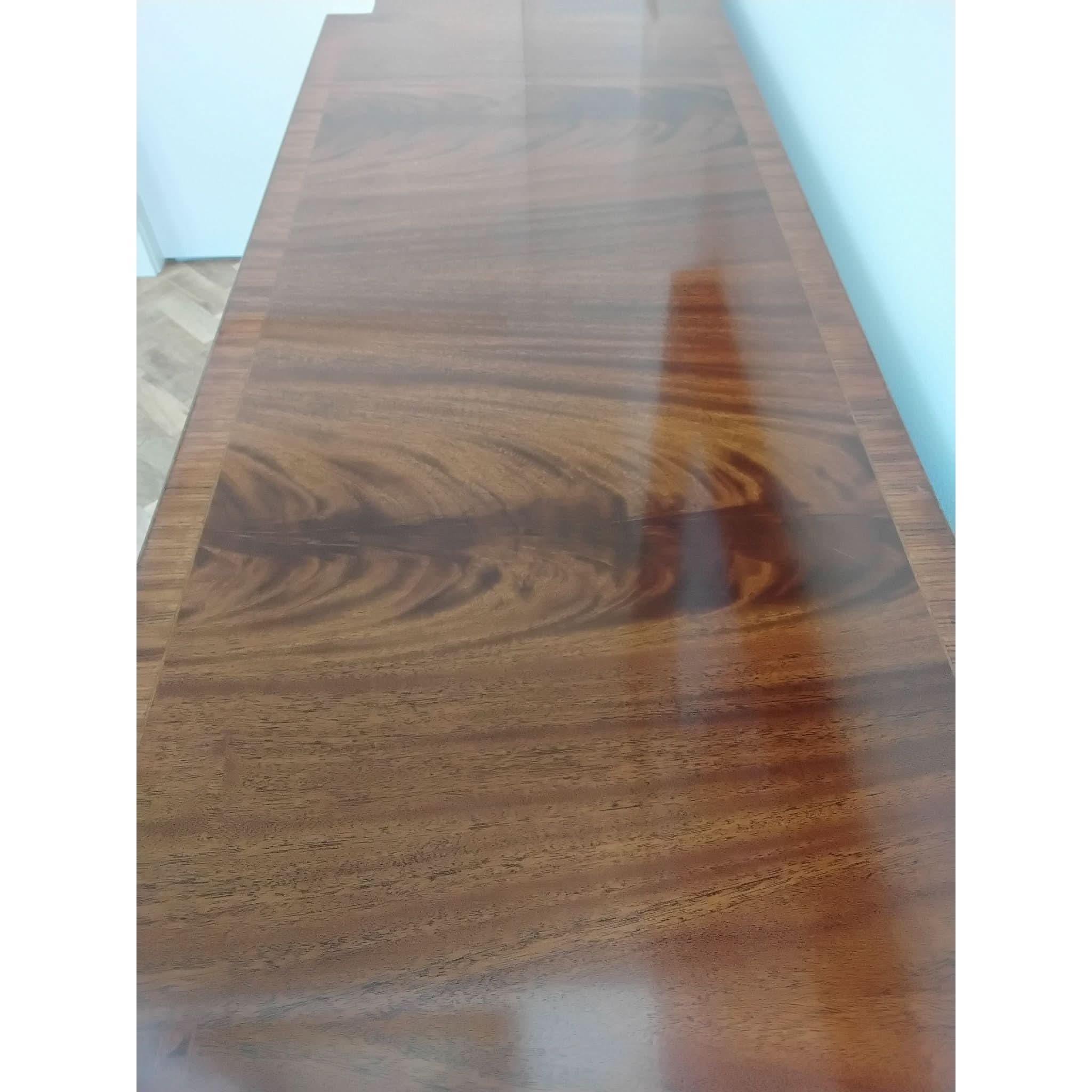 Beautiful inlaid paneling and serpentine-shaped skirt