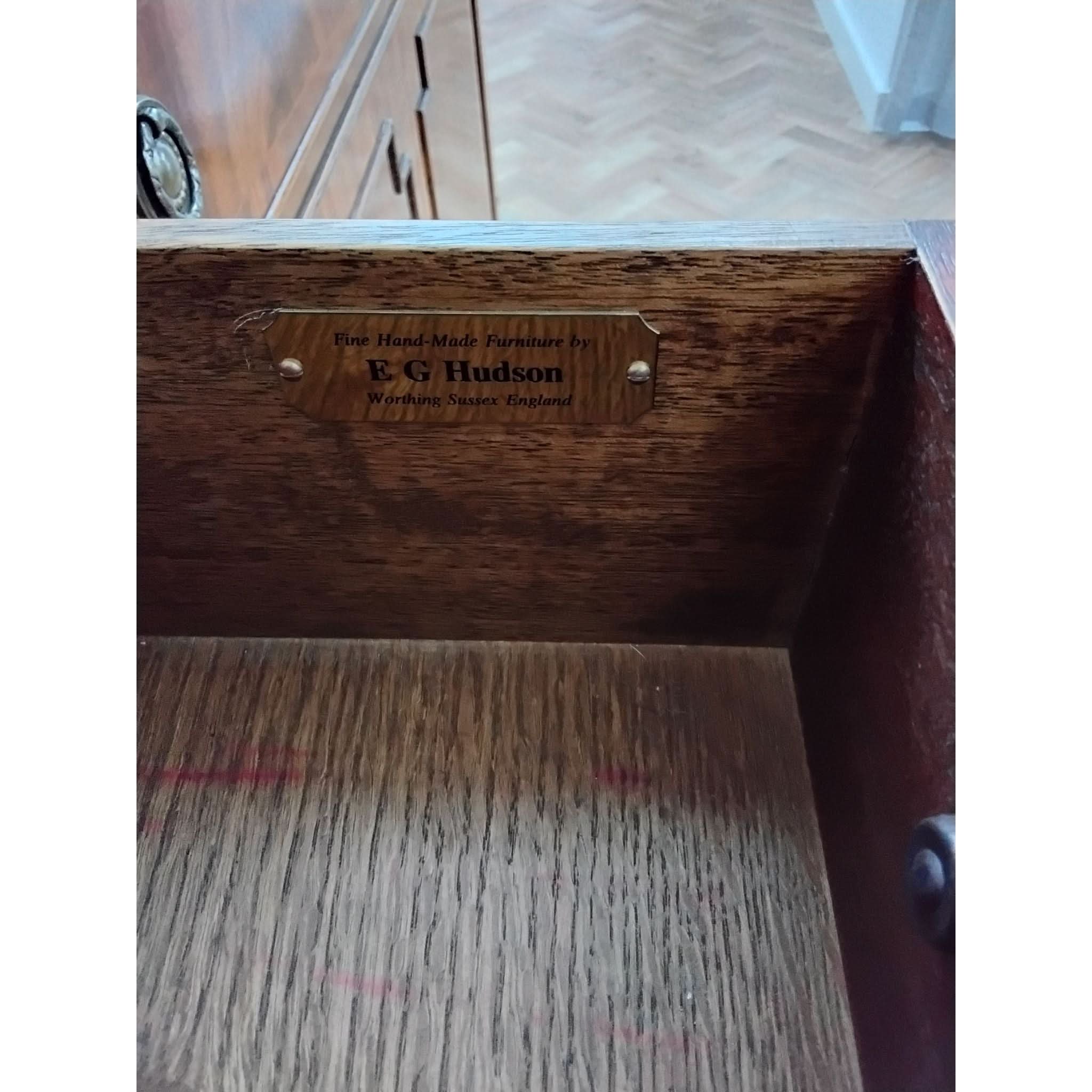 Add timeless elegance and storage to your home with this exquisite vintage walnut veneer buffet by E.G. Hudson Ltd, a respected English furniture maker based in Surrey.