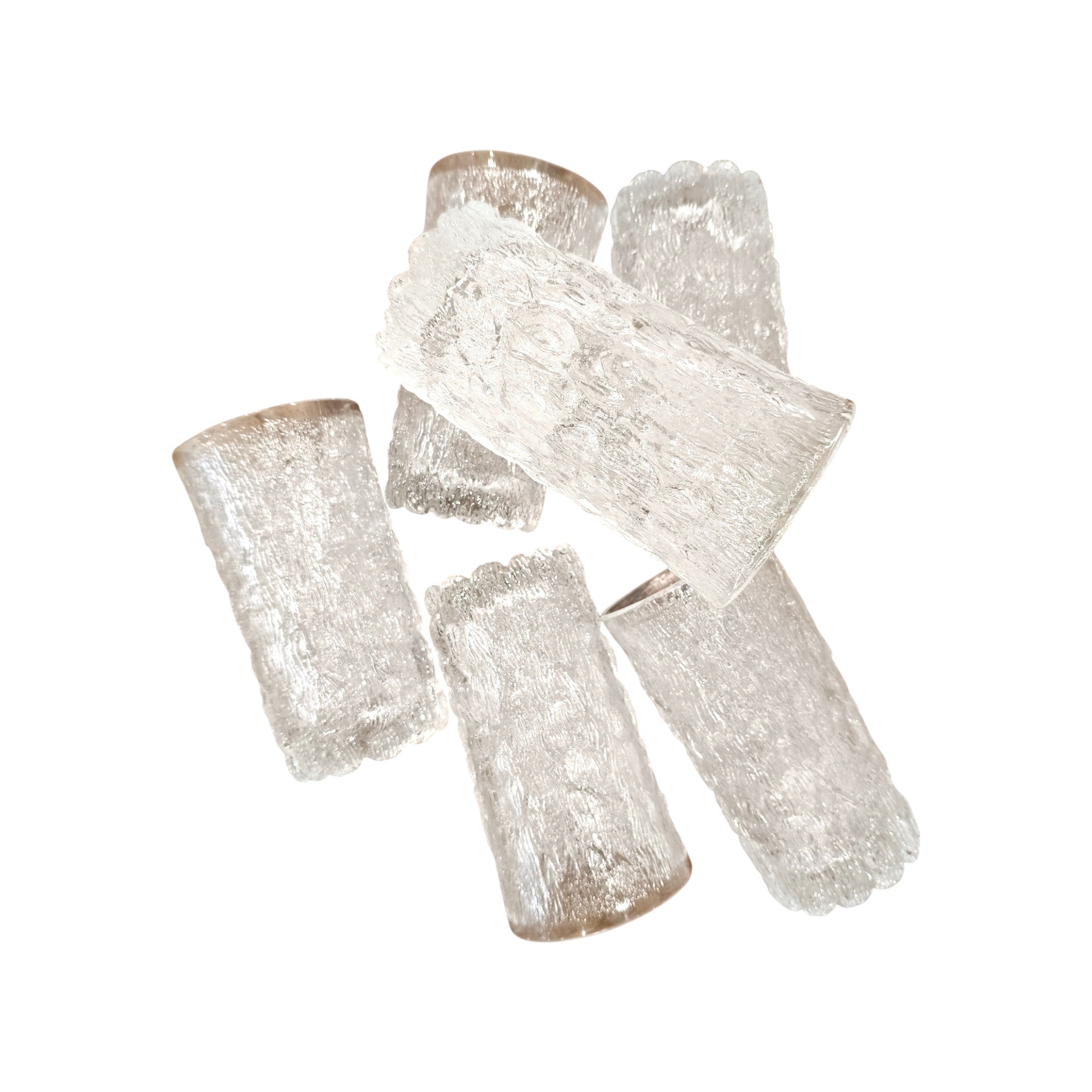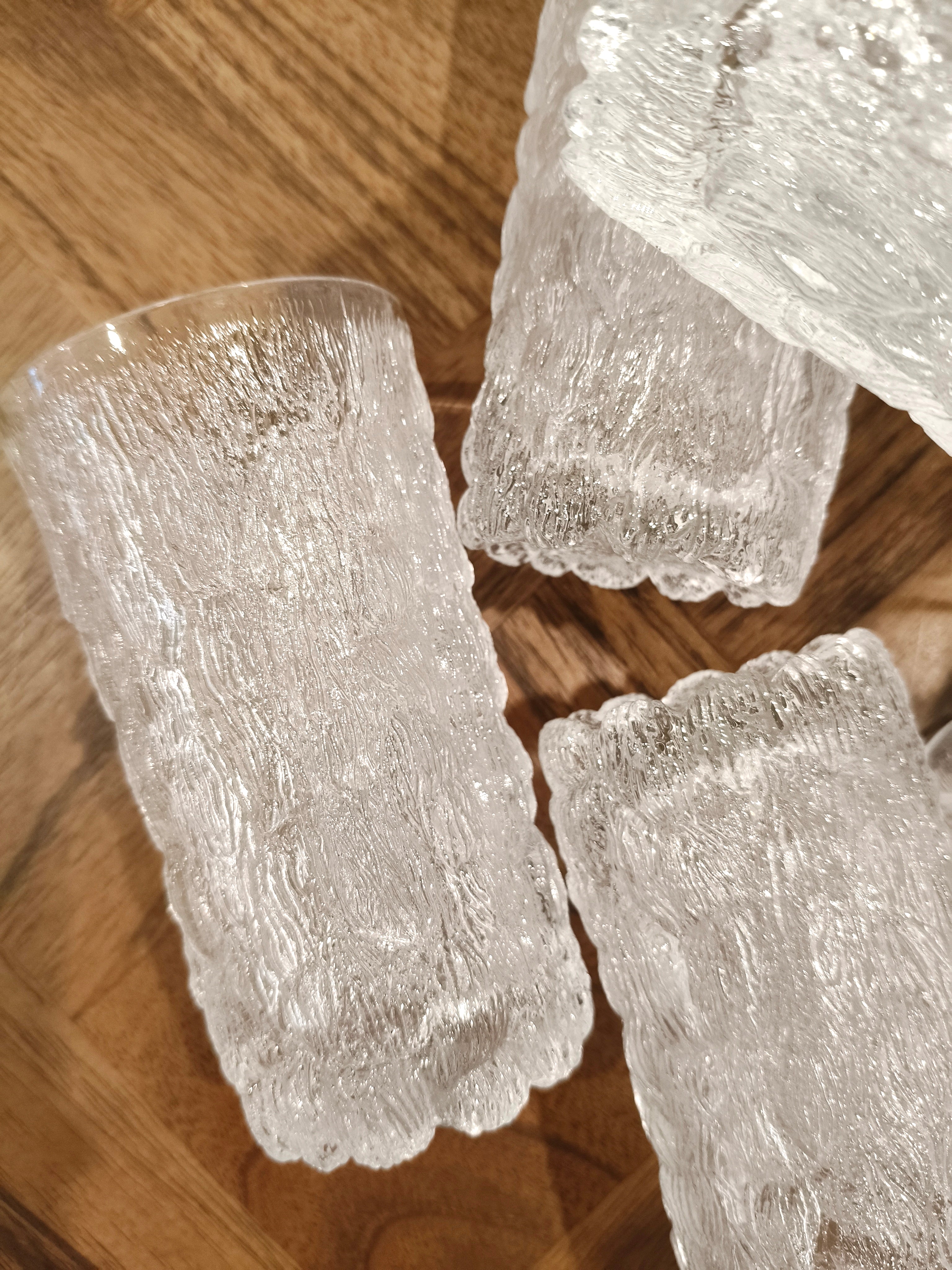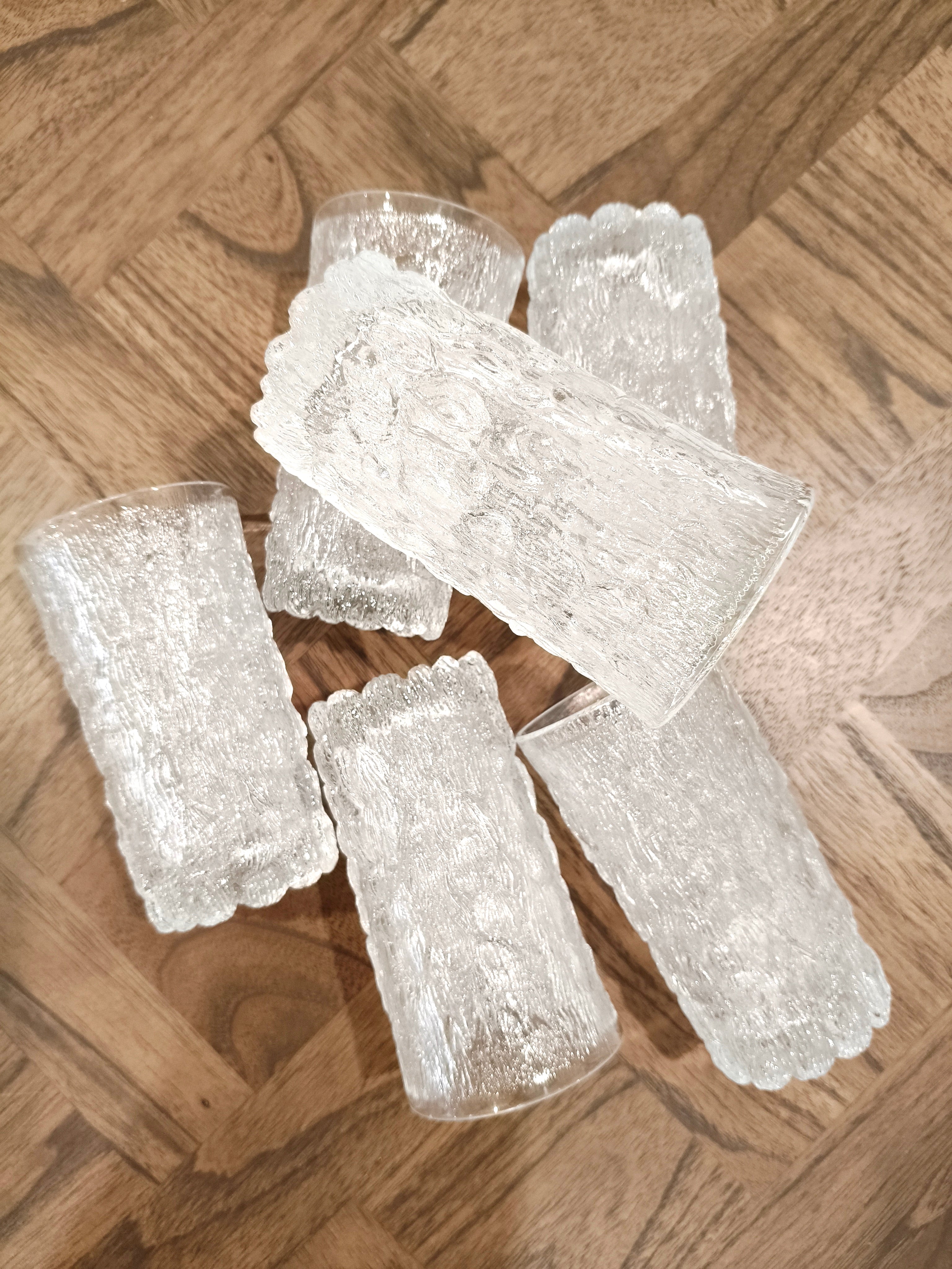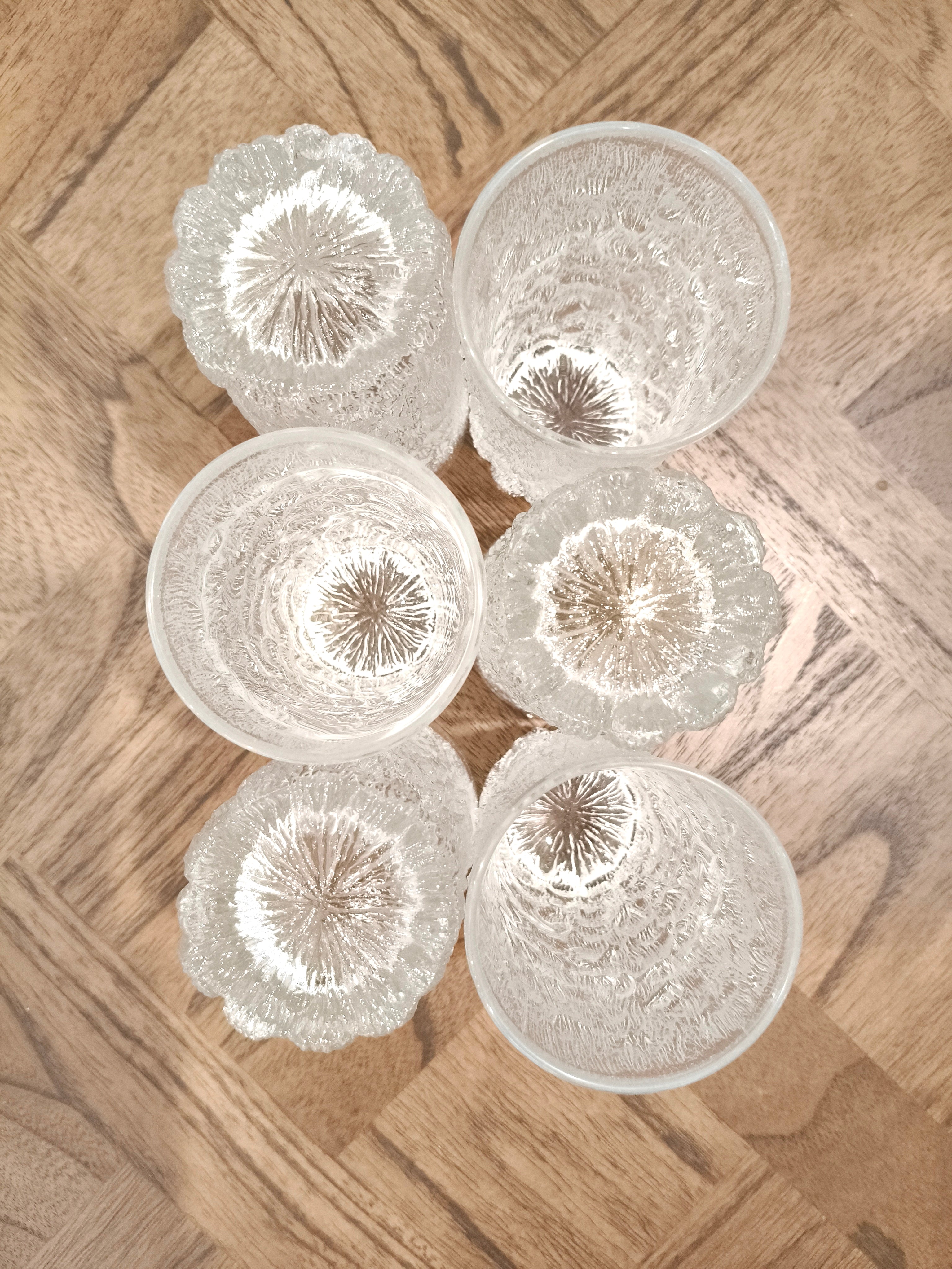 Set of 6 tumblers in a bark glass textured style, an ice pattern similar to the Scandinavian designs at the time.