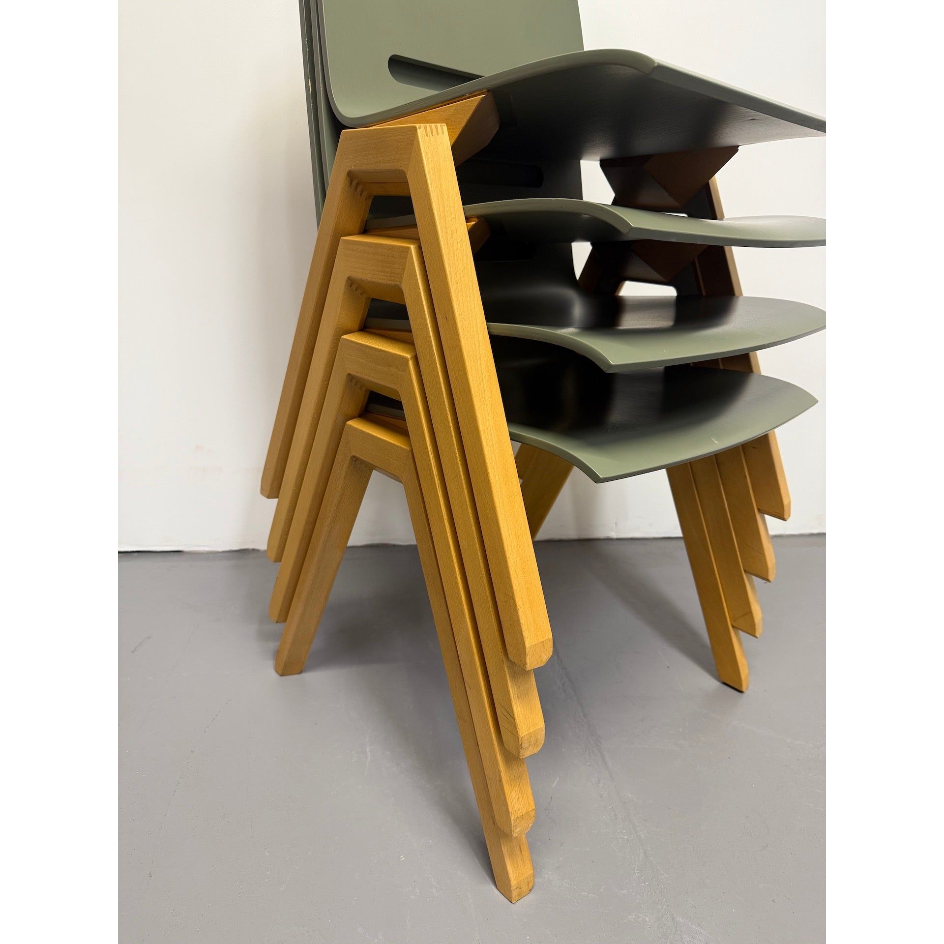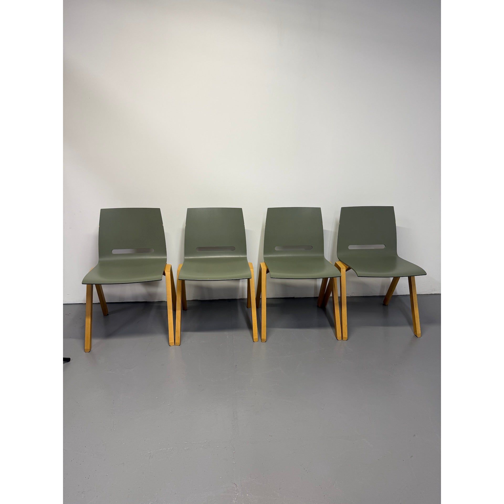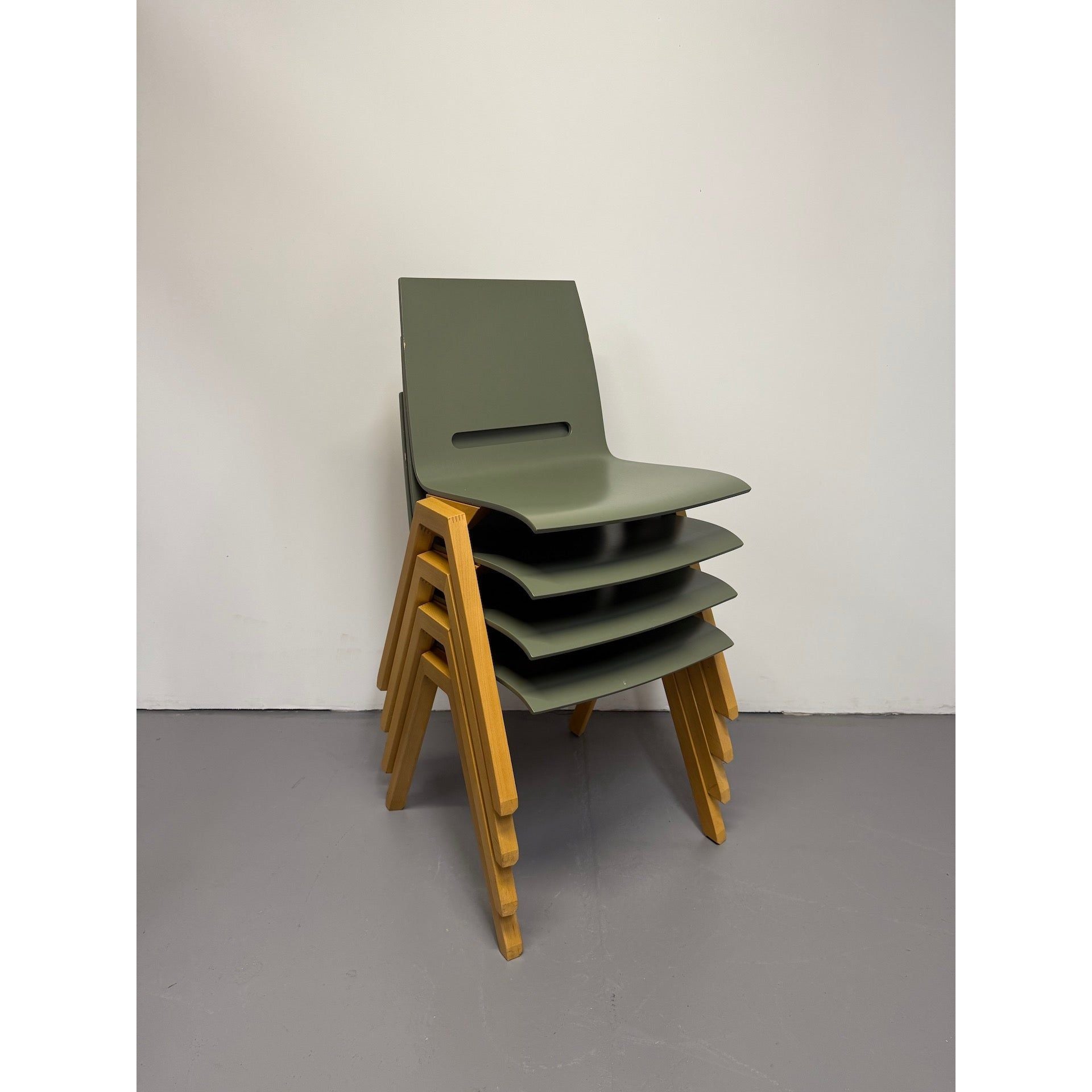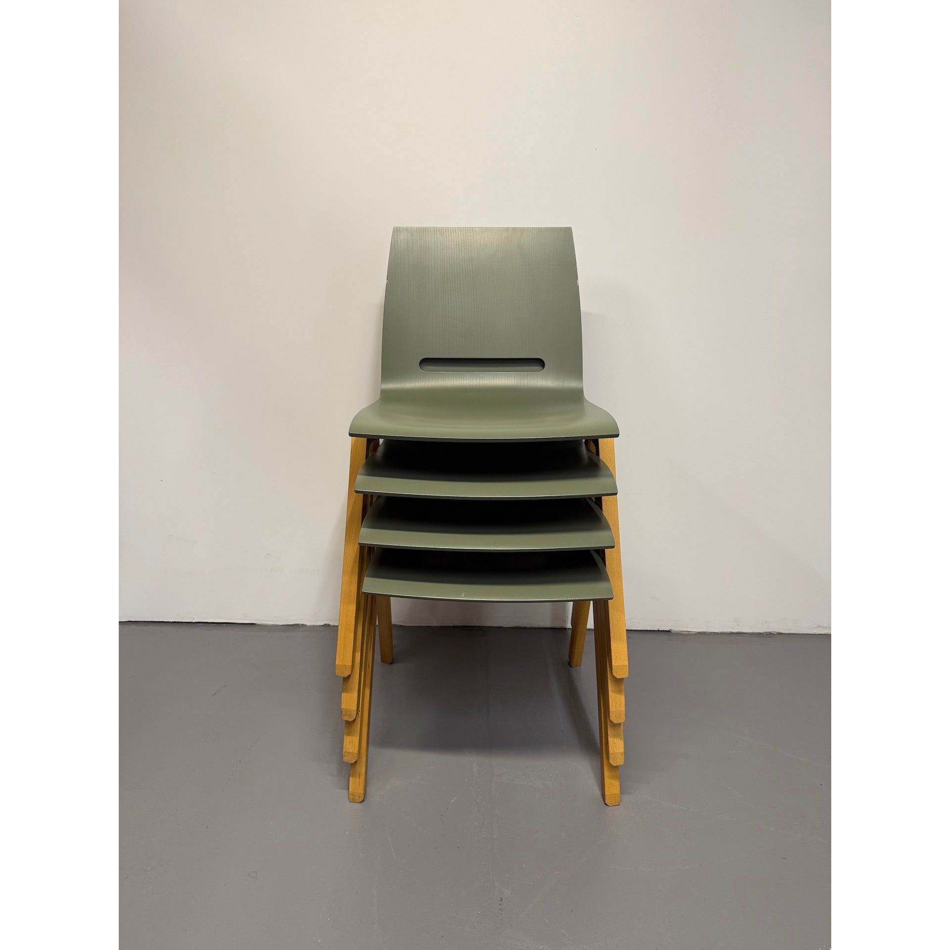 The green bentwood seat and backrest provide a stylish contrast to the natural timber legs, giving the Forum 2S a modern yet warm aesthetic. Stackable and durable, these chairs are designed for both commercial and residential spaces.