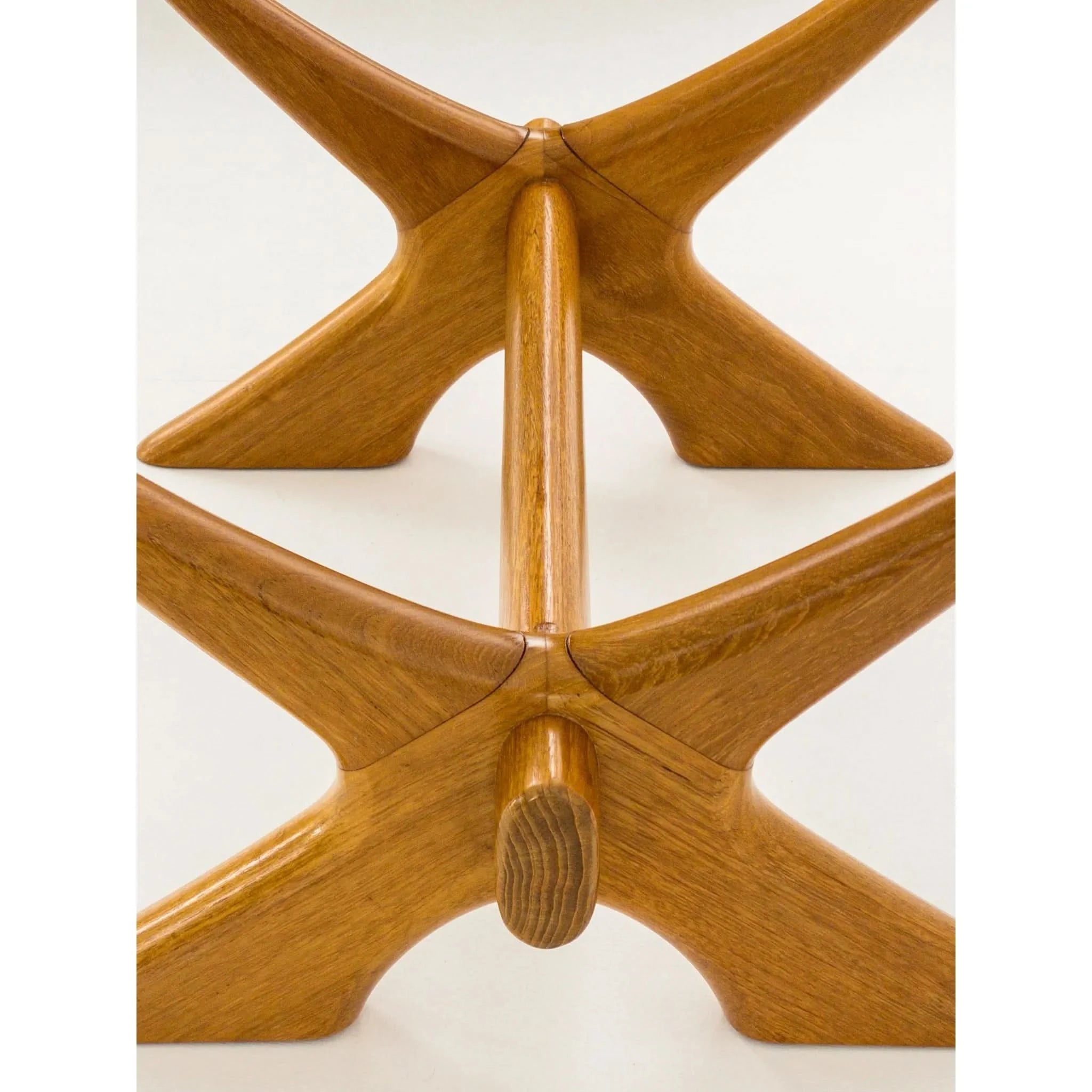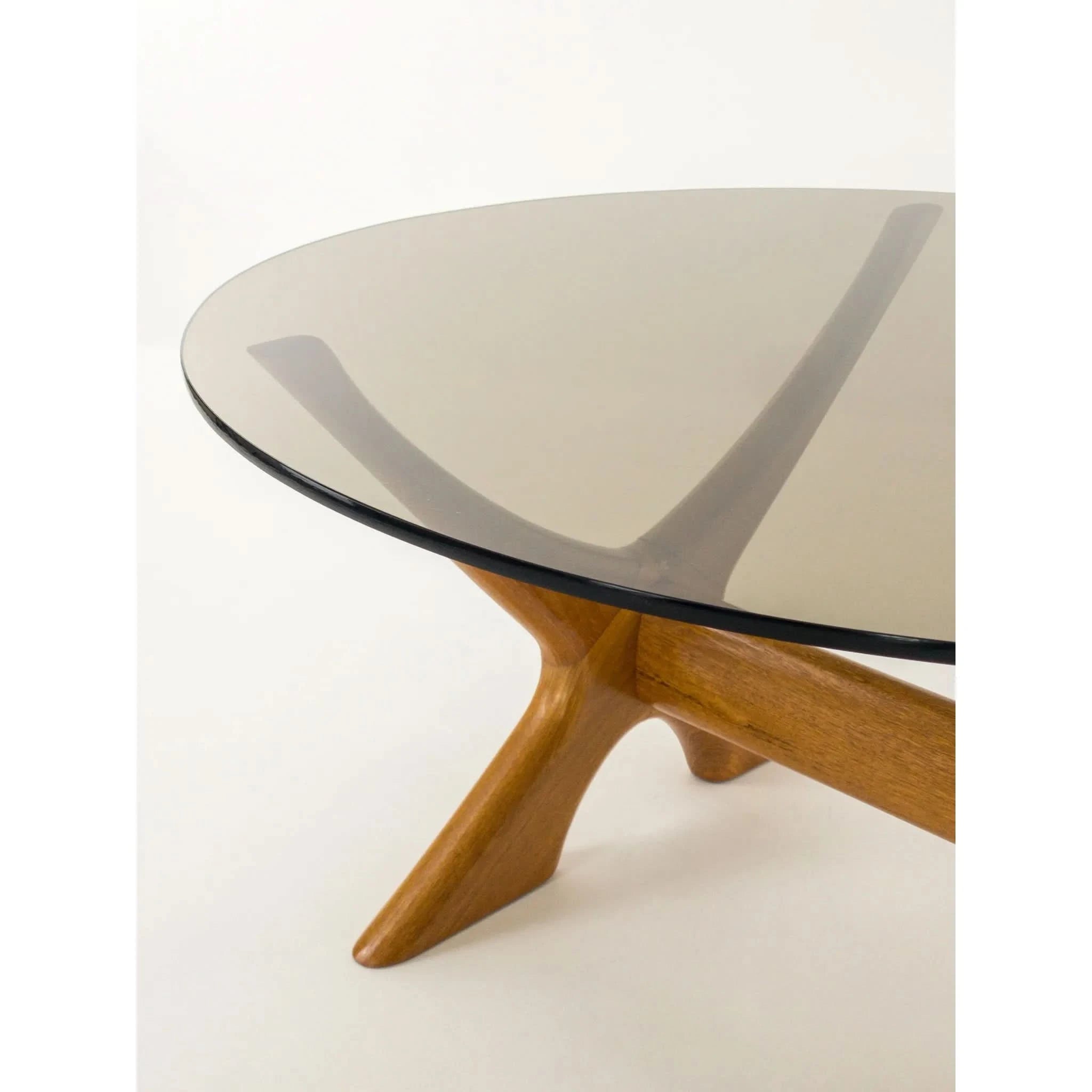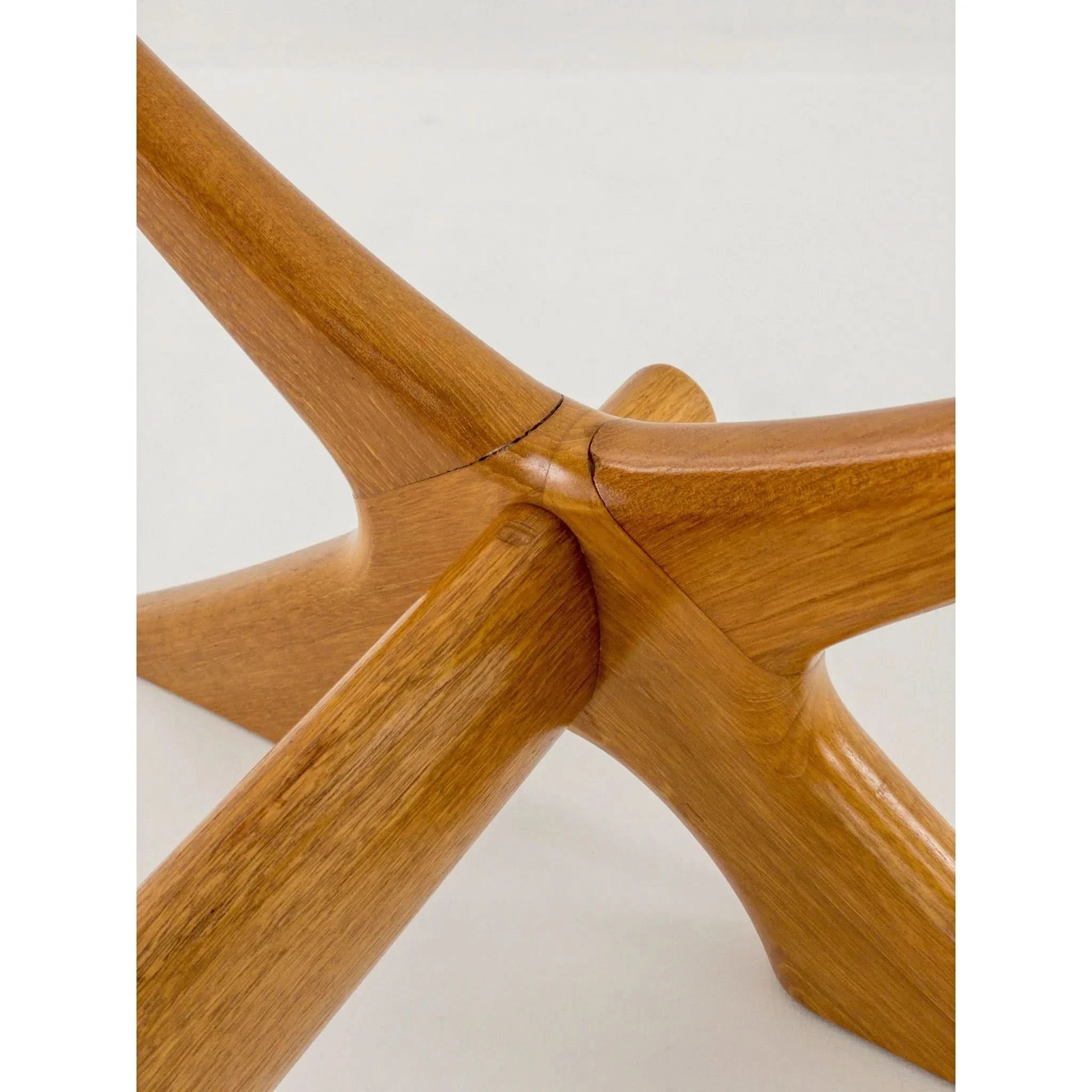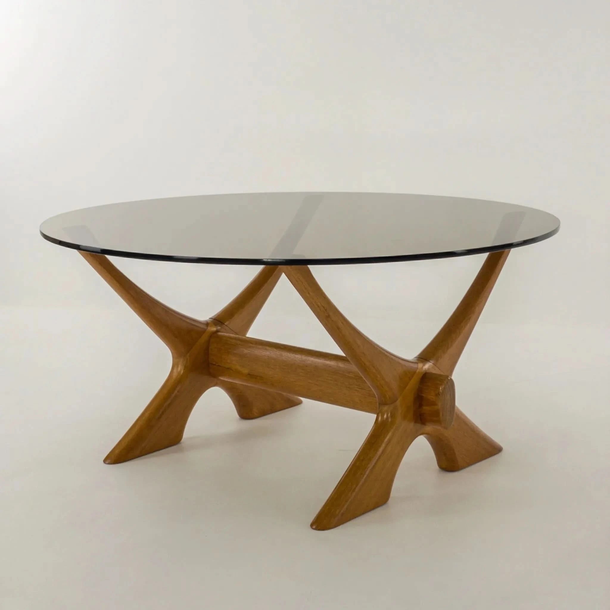 Illem Wikellso coffee table made by T.H. Brown Furniture a few decades back. Some signs of it’s journey through time but presents beautifully overall and is a hard to find piece. As is always with glass top coffee tables it really about the base, glass can be sourced cheaply either made to order on the second hand market so if you wanted a larger or different shaped top this sturdy, solid timber art piece will easily accommodate it.