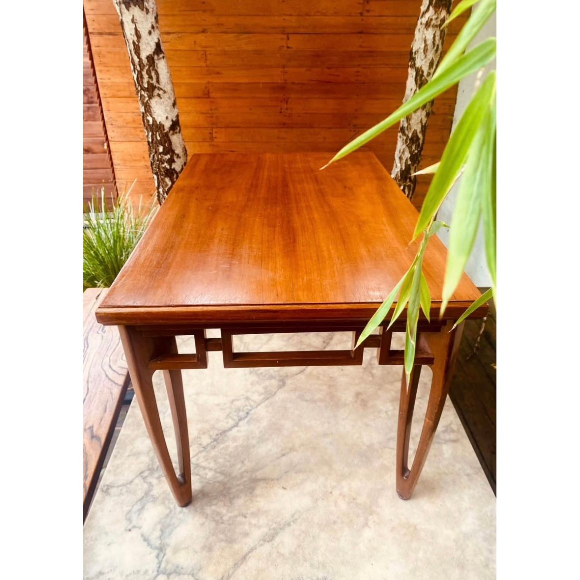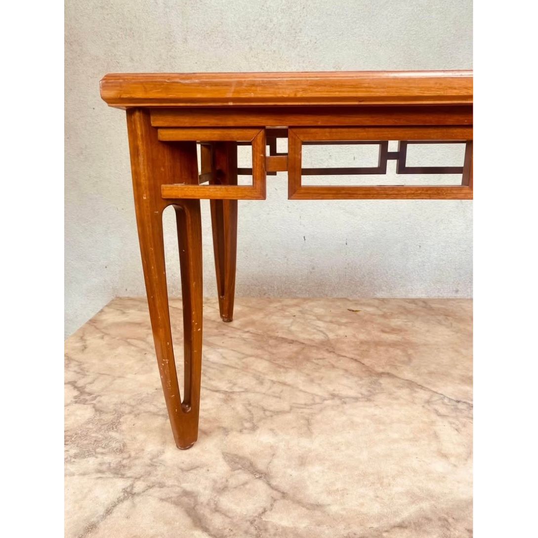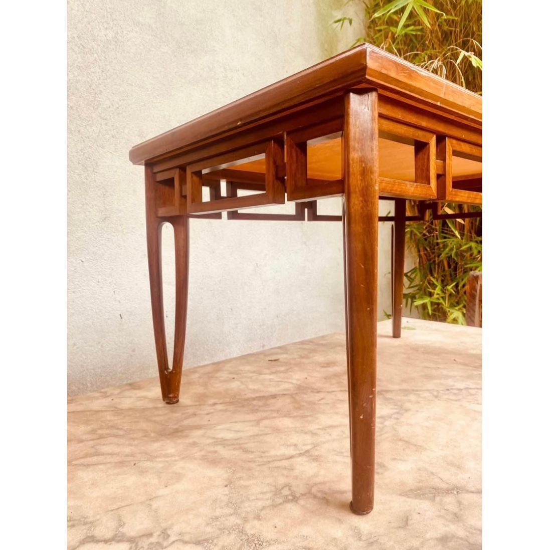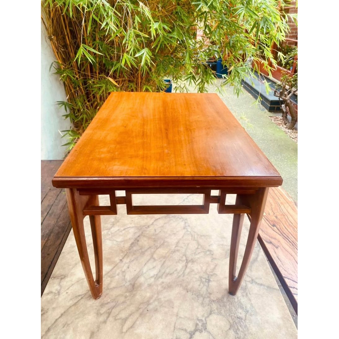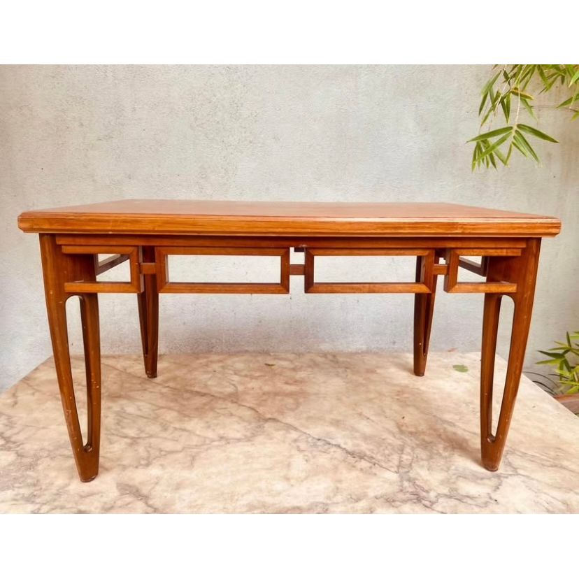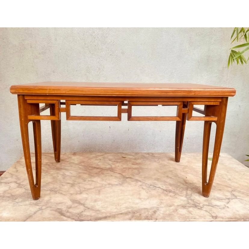 This piece features his unmistakable artisanship and design acumen, best displayed in the intricate and elegant trimming and the shapely legs. He employs a combination of both straight and curved lines - from the linked rectangular boxes on which the tabletop is perched, to the beautifully rounded wishbone legs.