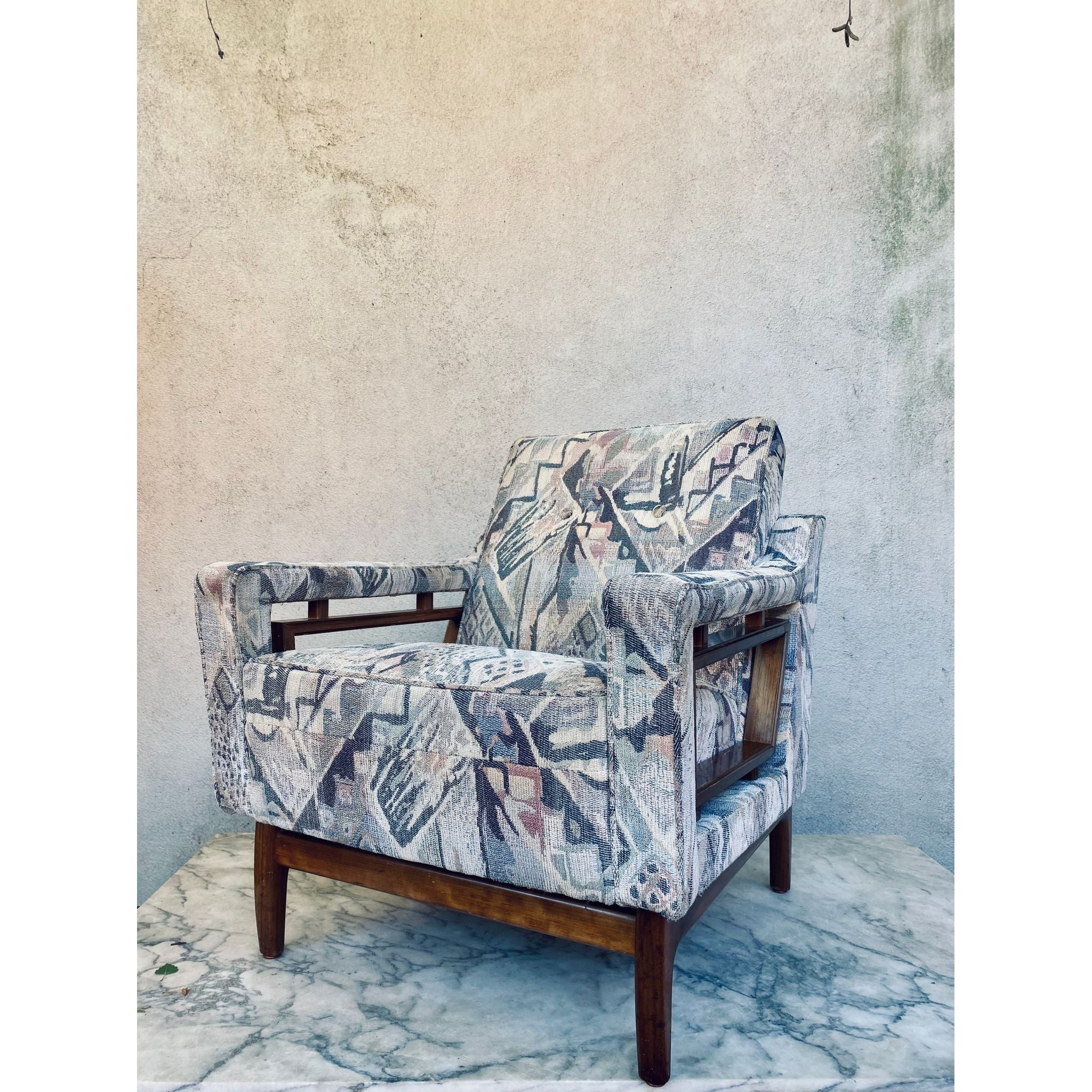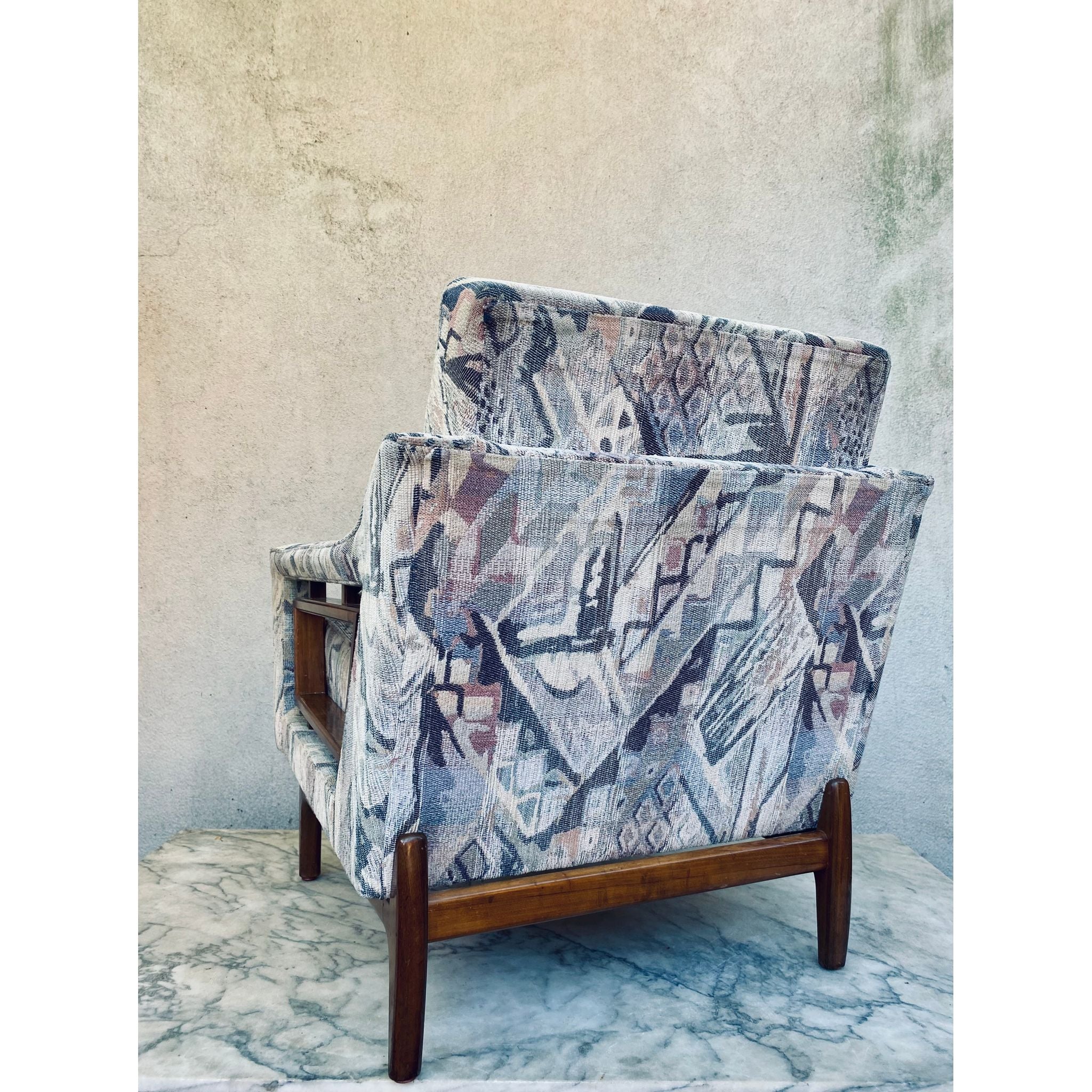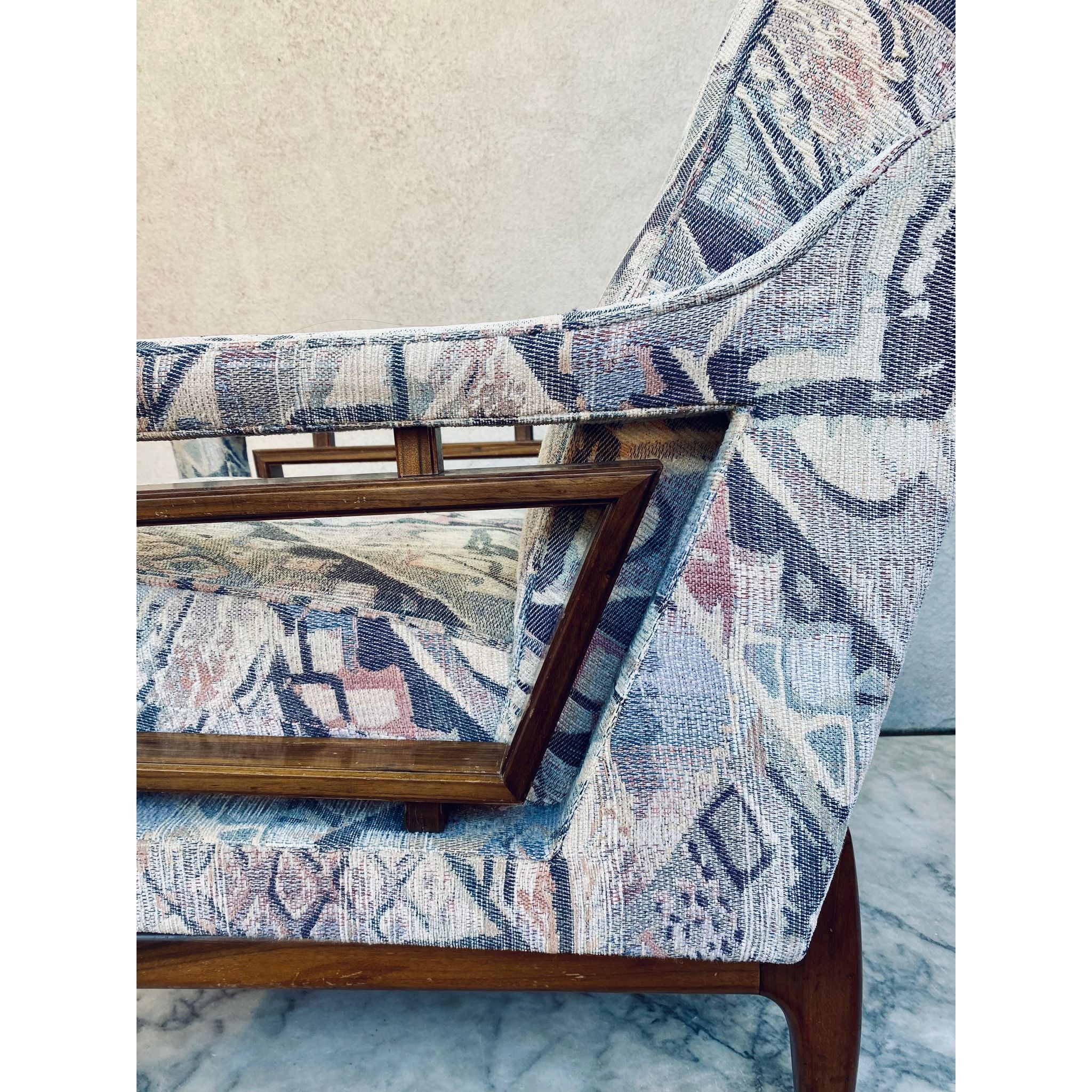 This piece exemplifies Rudowski’s design panache and fine craftsmanship. The architectural form and lines are unmistakable and idiosyncratic to Rudowski. Meanwhile, the pastel tones and geometric silhouettes in the fabric impart a modernist aura.